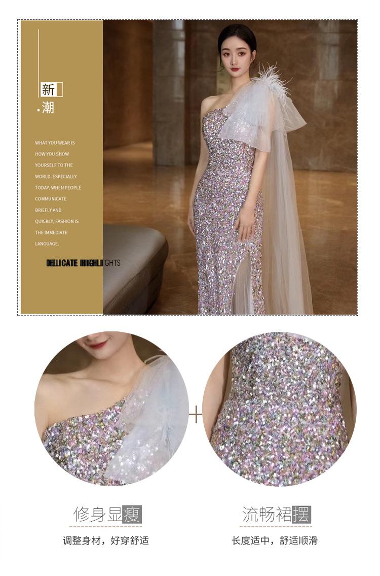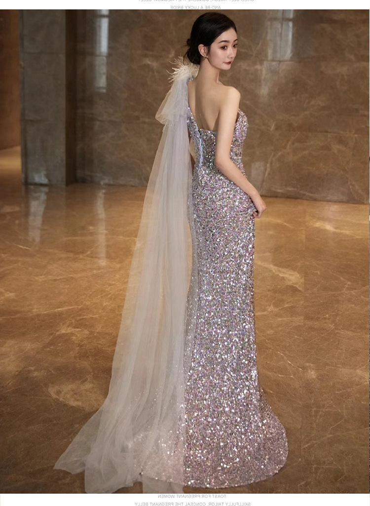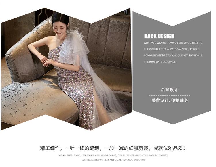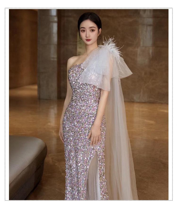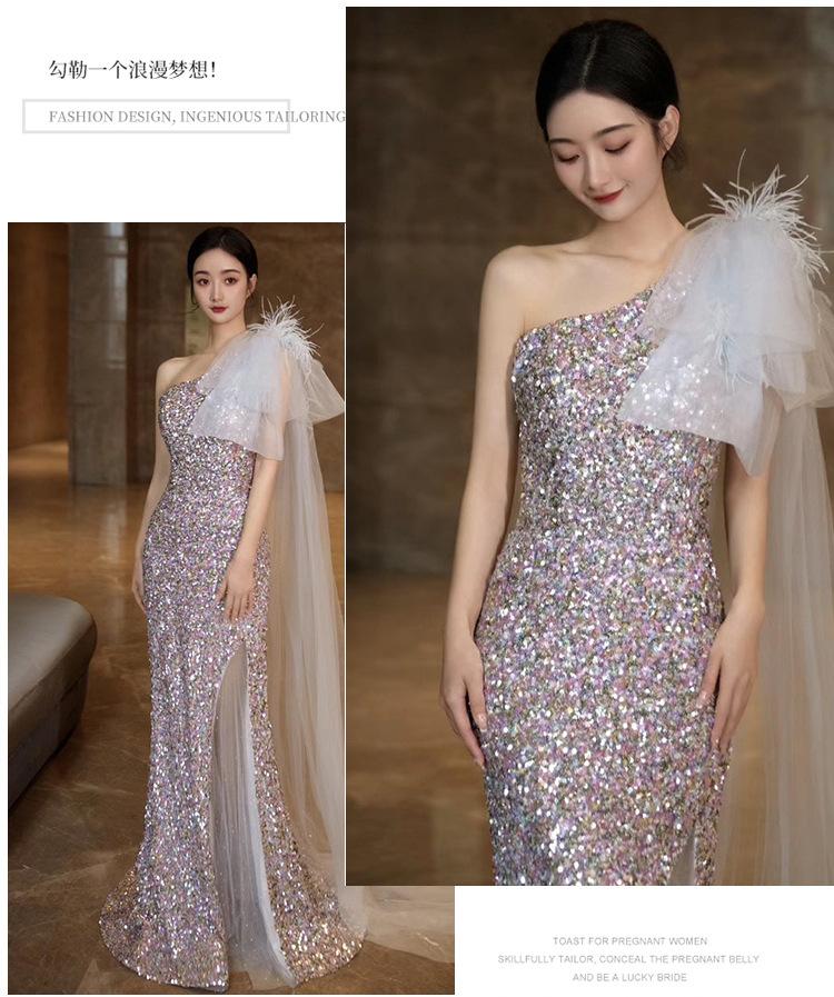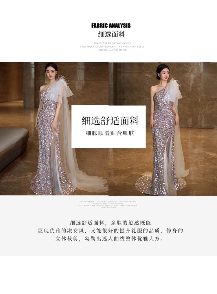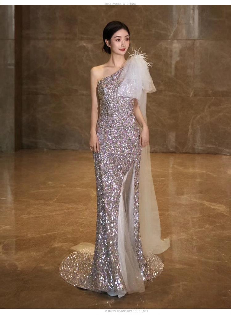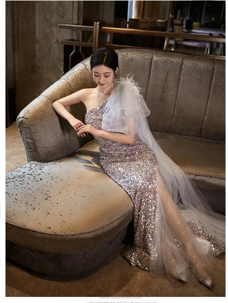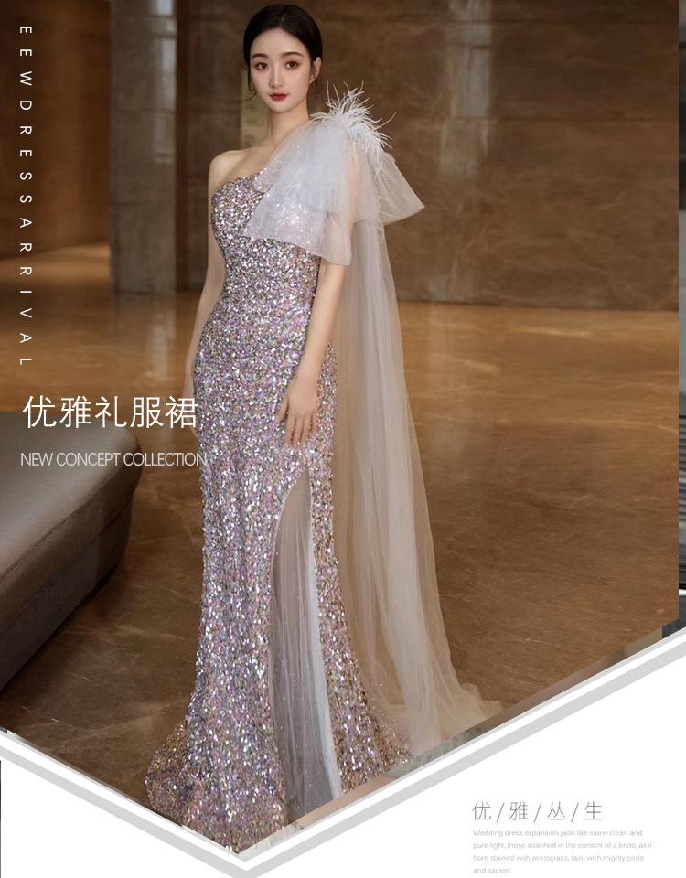Vestido de Noche de Banquete 2025 Nuevo Estilo Otoño Elegante Un Hombro Cola de Pez Estilo Compromiso Vestido de Anfitriona