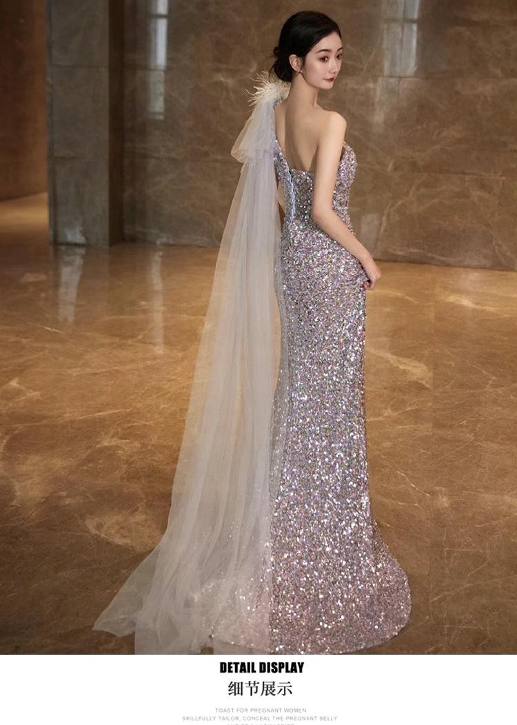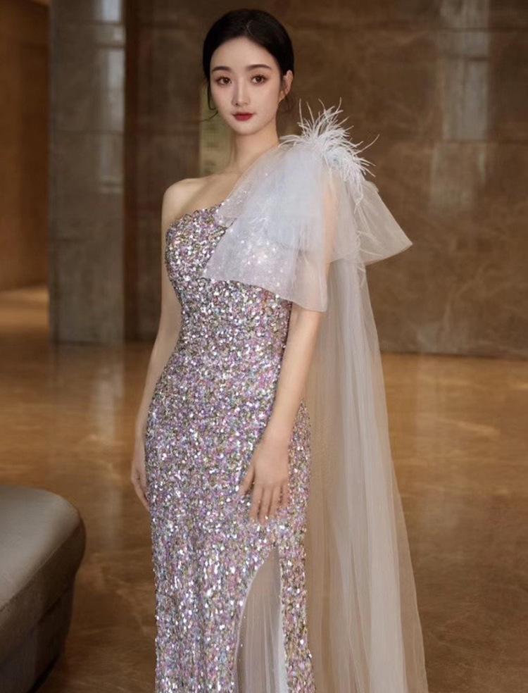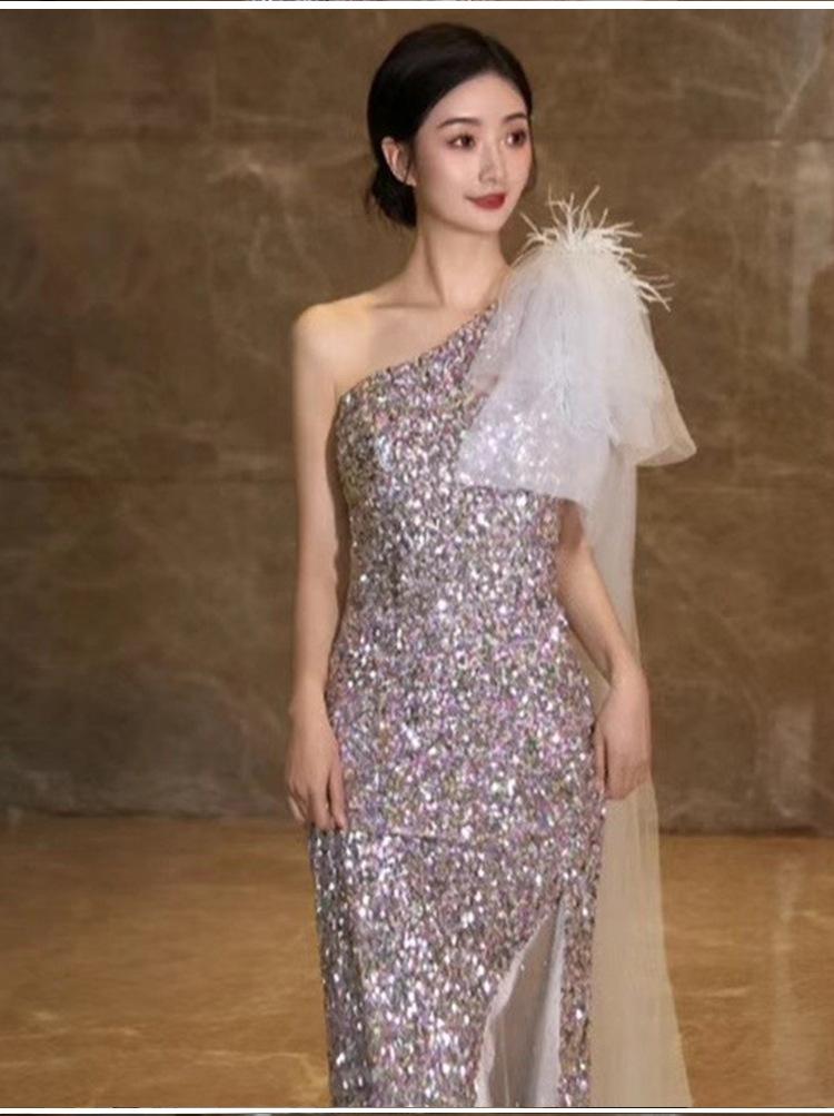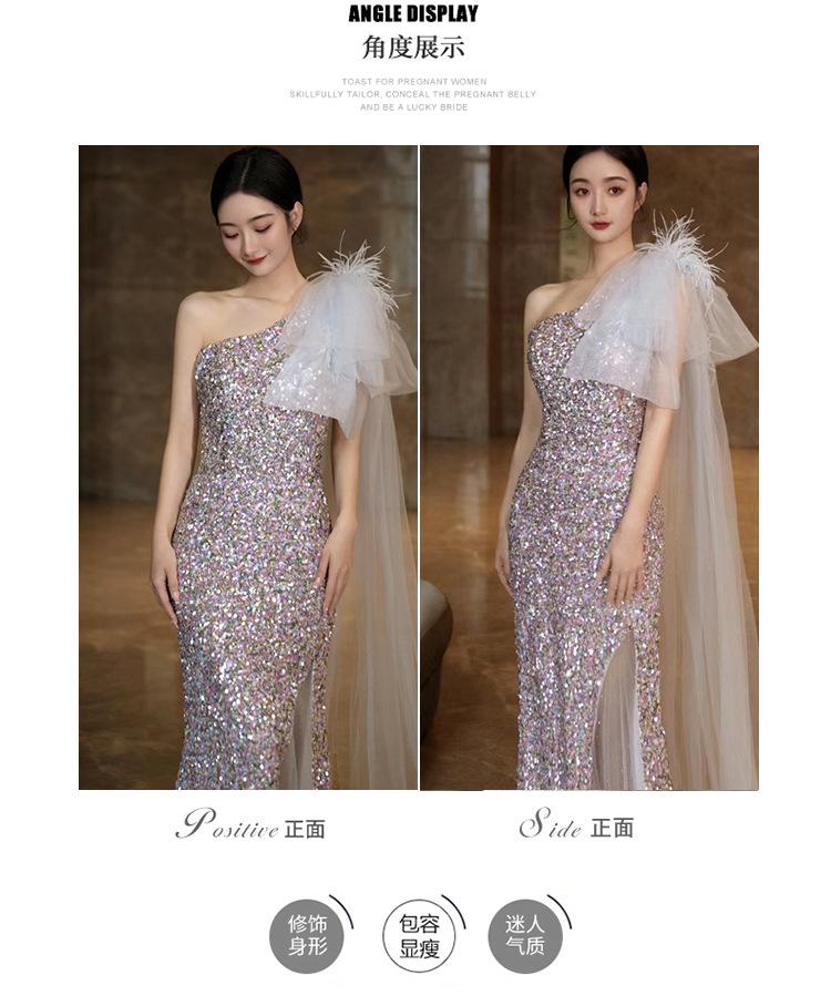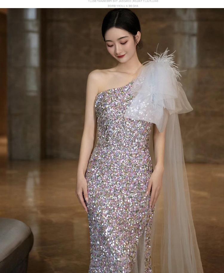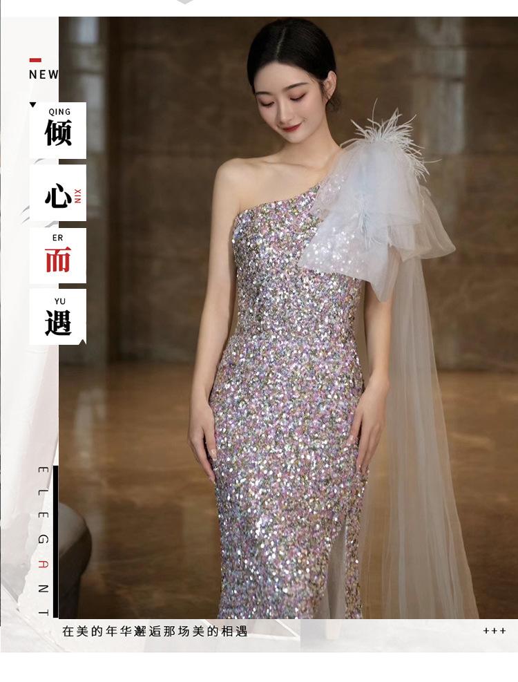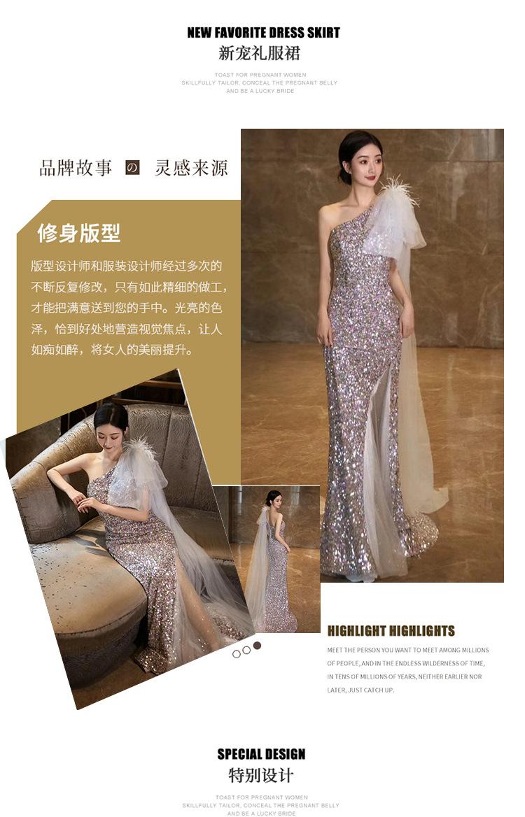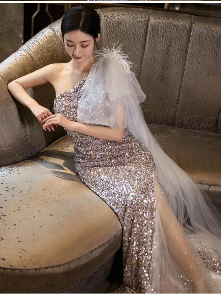Vestido de Noche de Banquete 2025 Nuevo Estilo Otoño Elegante Un Hombro Cola de Pez Estilo Compromiso Vestido de Anfitriona