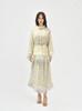 Traje de moda de otoño 2023, estilo festivo, cuello redondo, manga larga, puños, falda, traje con costuras de plumas