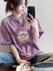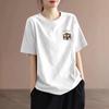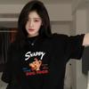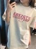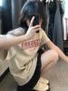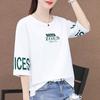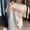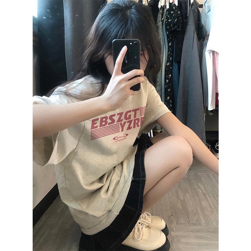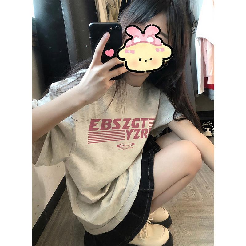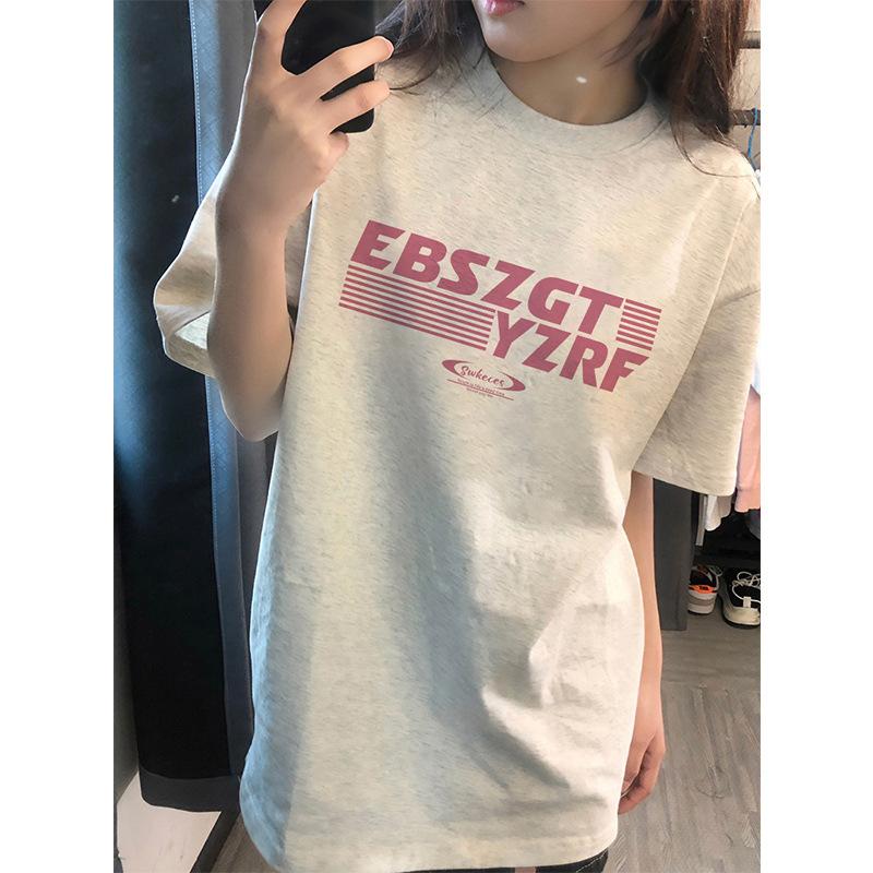Camiseta de algodón de estilo coreano con cuello redondo y estampado de talla grande, manga corta, para mujer, estilo americano, popular, holgada, de media manga, para verano