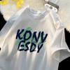 Camiseta de Manga Corta Estilo Chic Hong Kong con Estampado de Letras Leet para Mujer Verano 2025 Nueva Casual Versátil Holgada