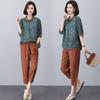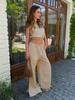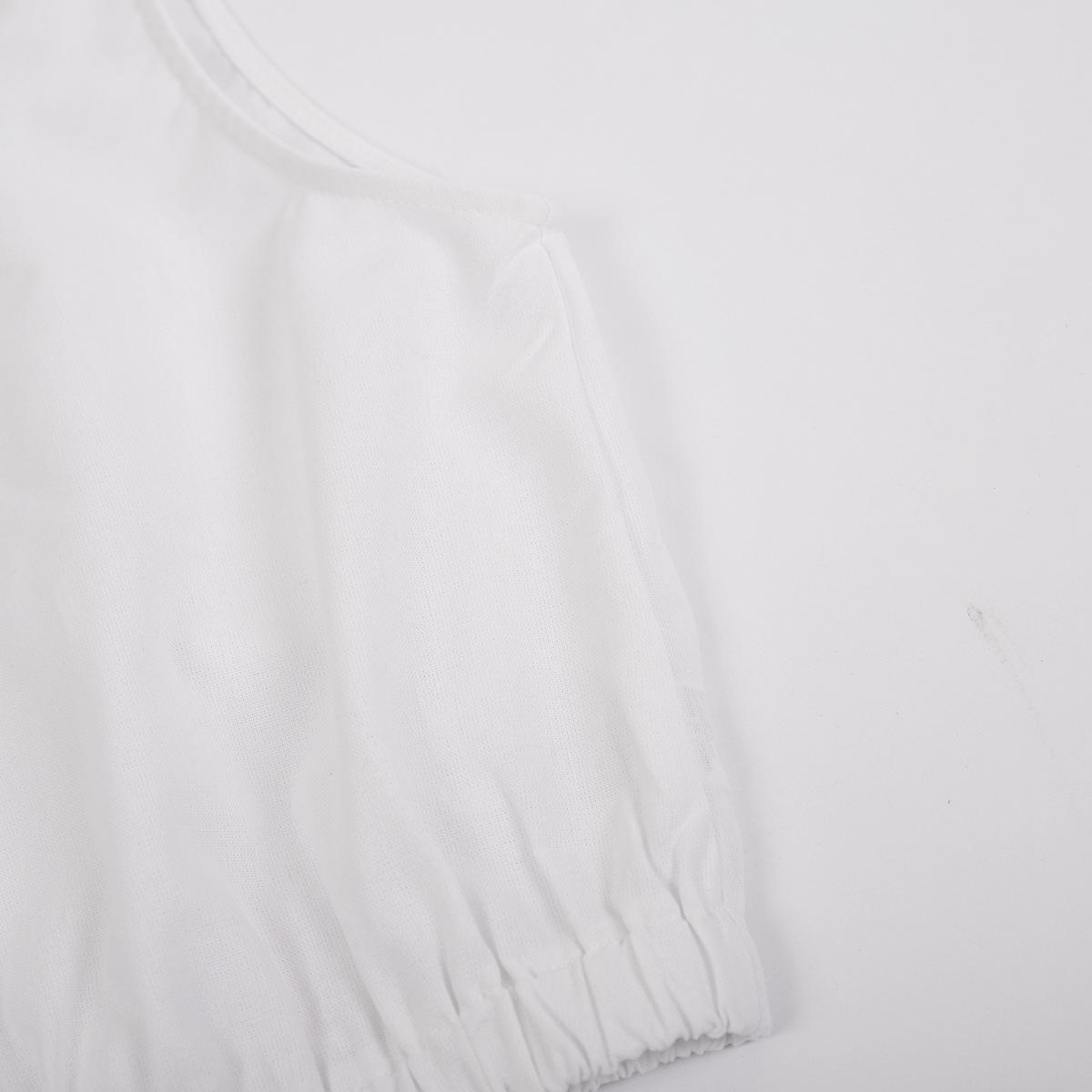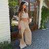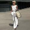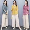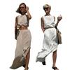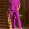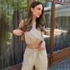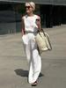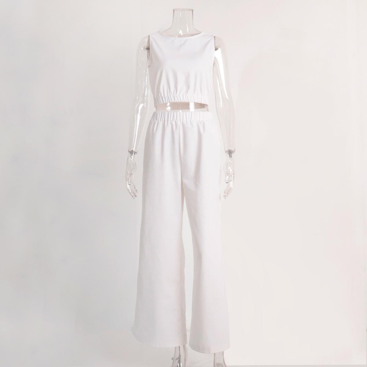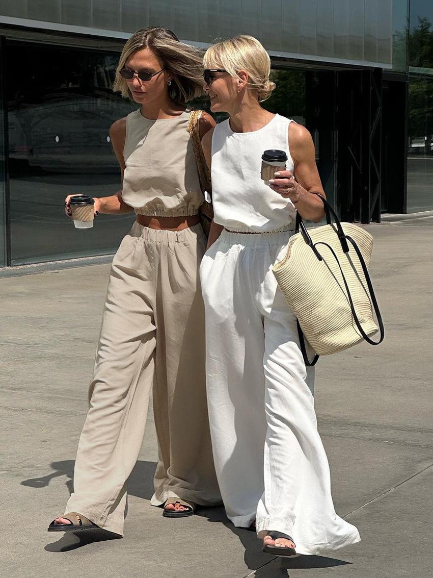 Traje de Algodón y Lino 2025 Verano Top Corto sin Mangas con Cintura Elástica + Pantalón Largo con Aberturas Traje de Dos Piezas Color Sólido