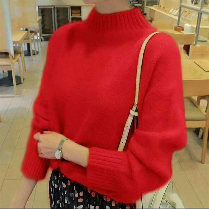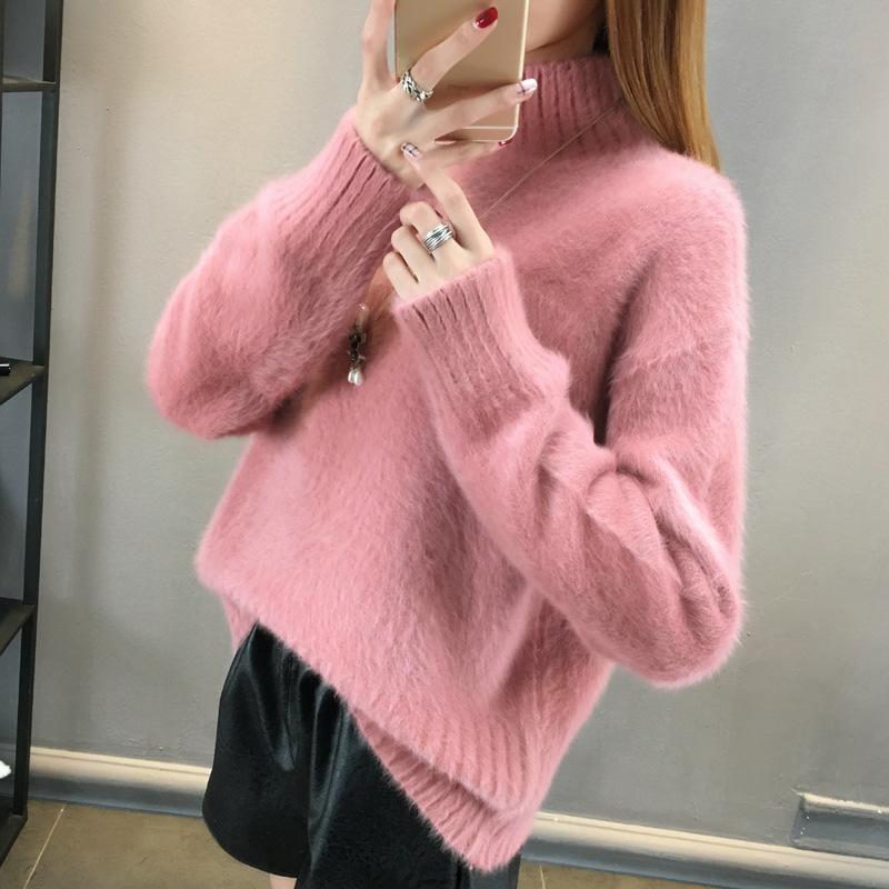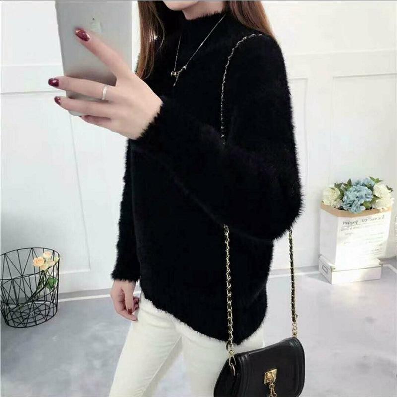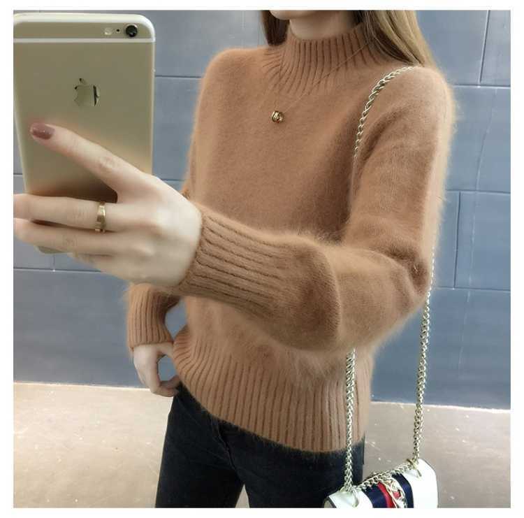 Suéter Pulóver de Terciopelo de Visón Imitación que no Suelta Pelo para Mujer 2024 Otoño e Invierno Nuevo Versátil Cuello Medio Alto Corto Tejido para Llevar Debajo
