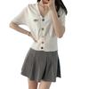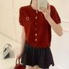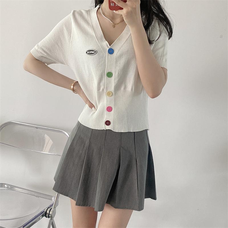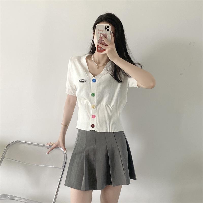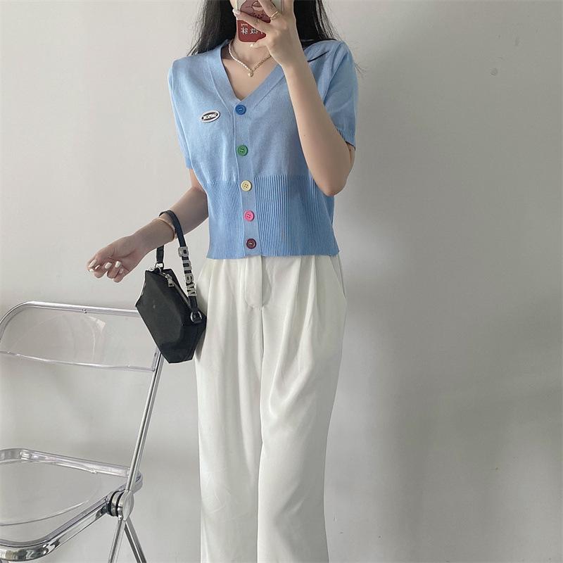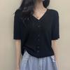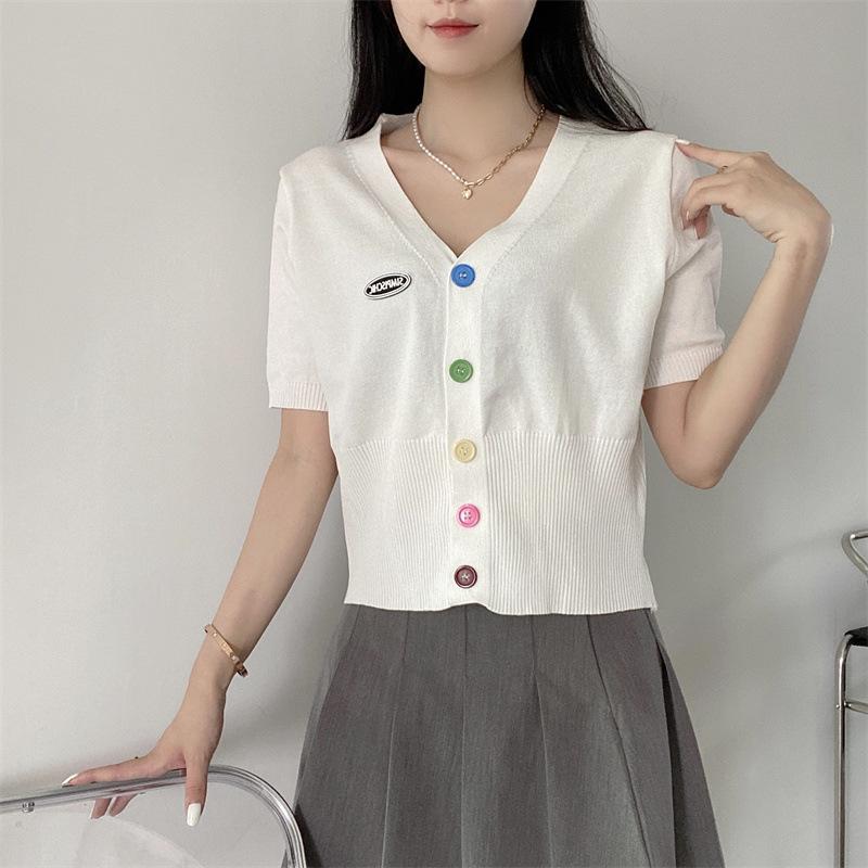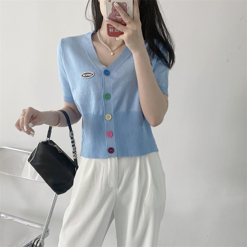 Cárdigan de Punto de Seda de Hielo Camiseta de Manga Corta para Mujer Verano 2022 Nuevo Sentido del Diseño Nicho Estilo Occidental Top Corto con Cuello en V