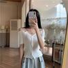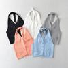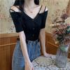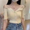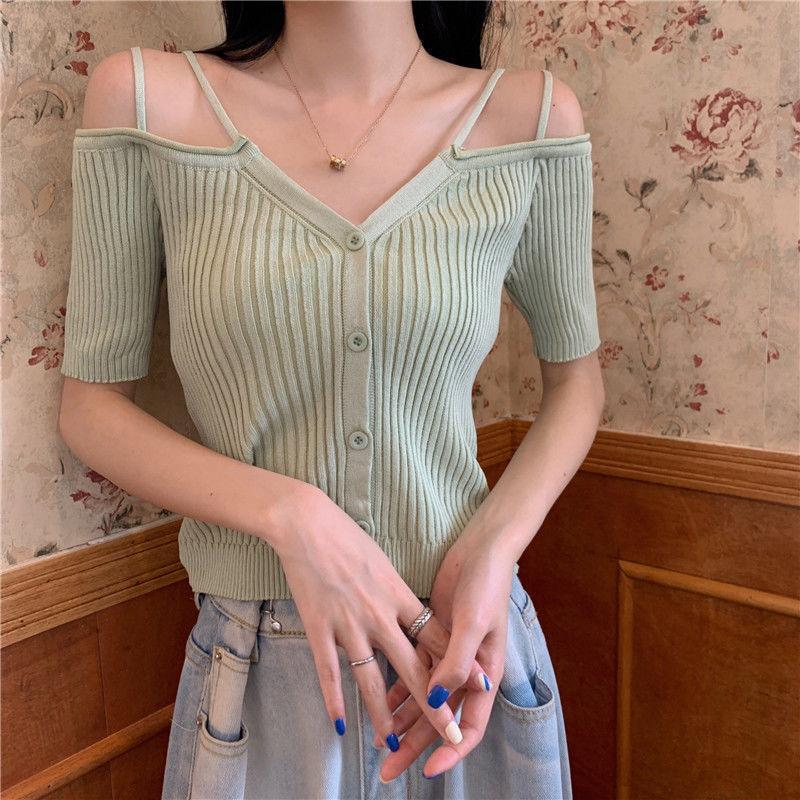 Suéter de Verano Nuevo Estilo Base Ajustada Pura para Mujer Cuello en V Tirantes Cárdigan Camiseta Popular en Internet Sexy Picante Top