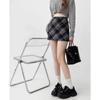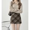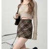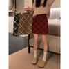 Falda a cuadros de lana de corte A para mujer, otoño e invierno, talla grande, para chica gordita, falda a la cadera, falda marrón adelgazante estilo vintage americano.