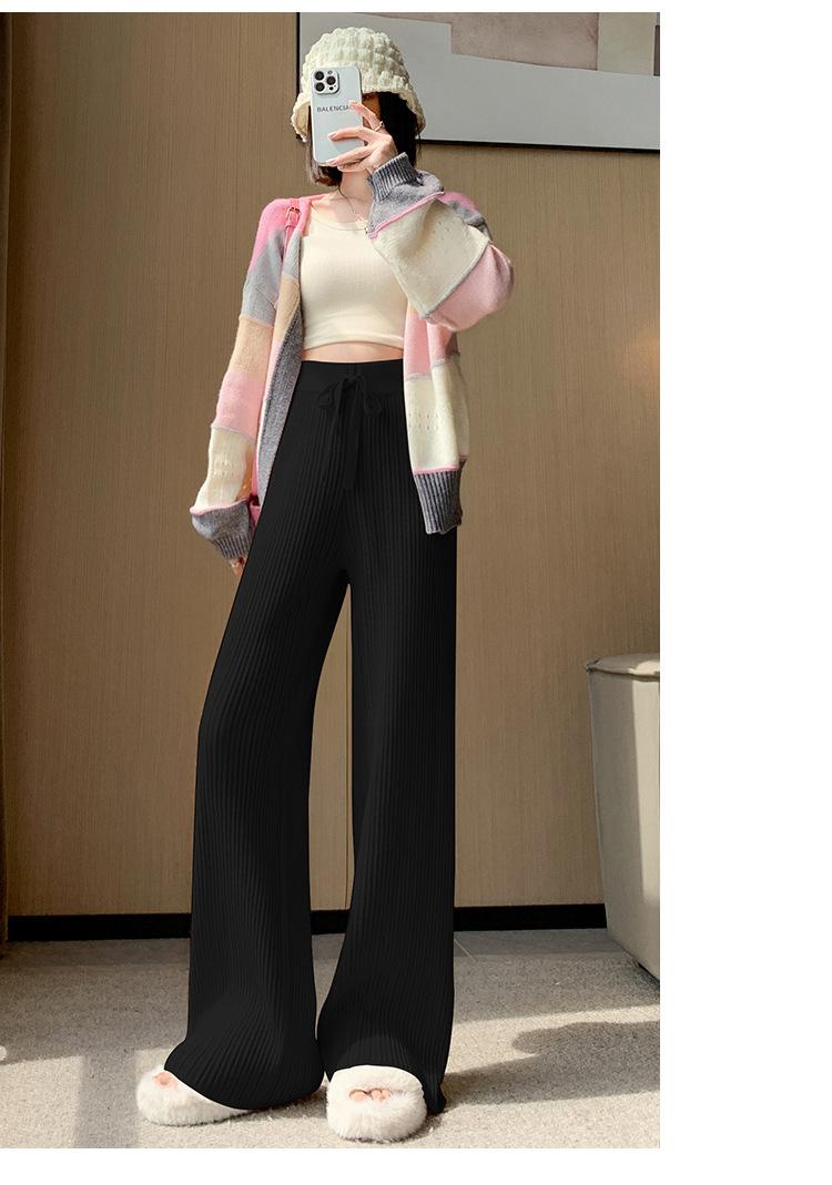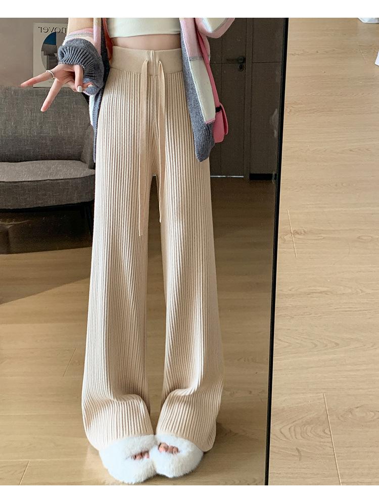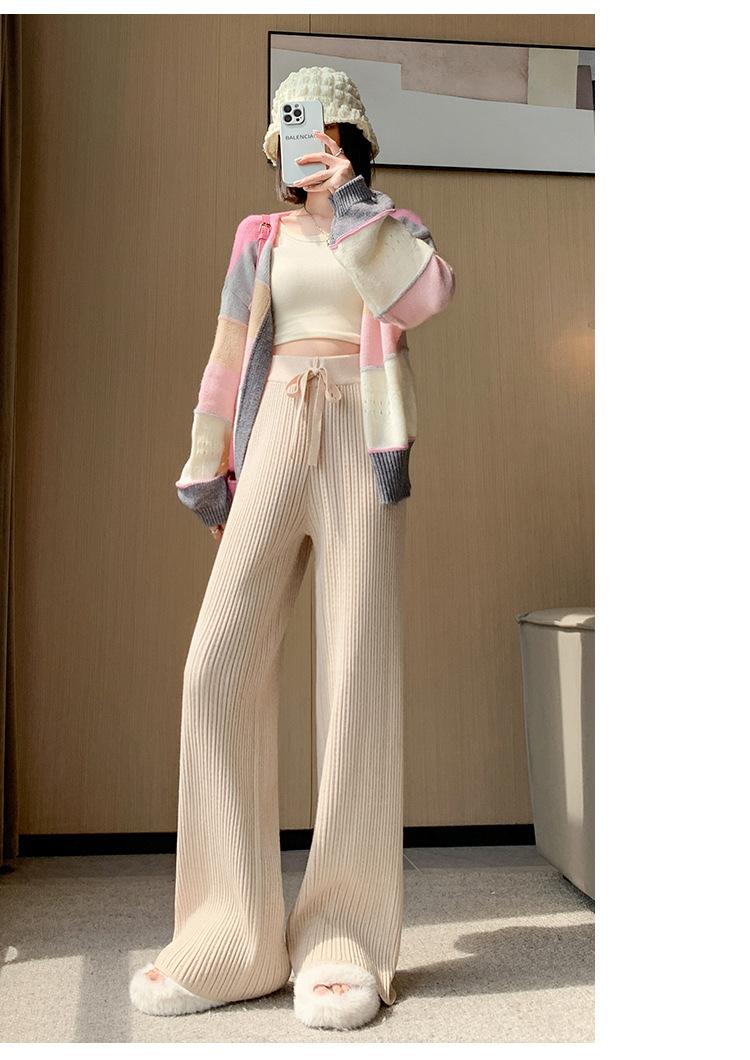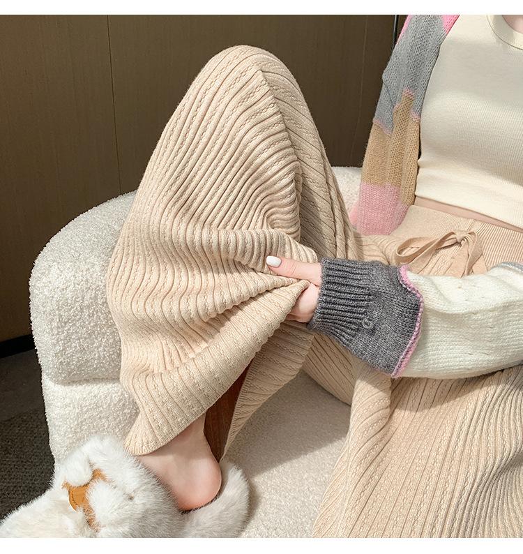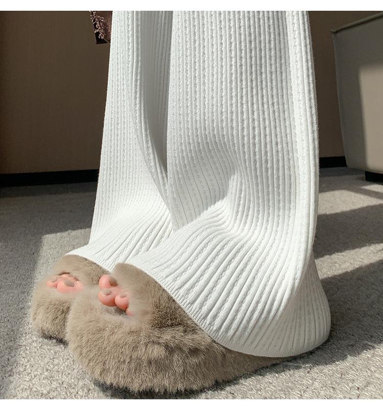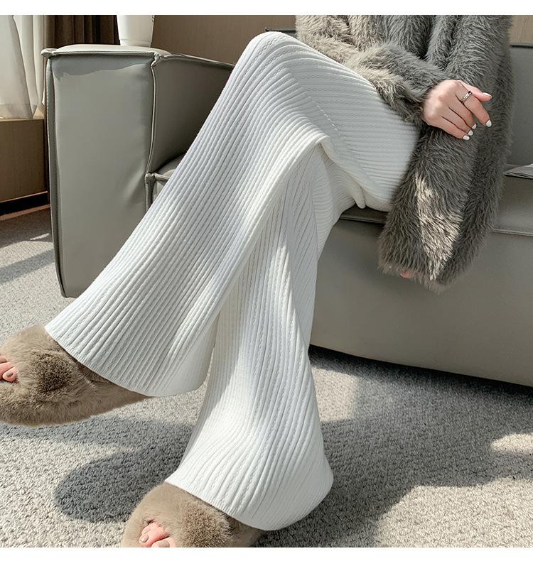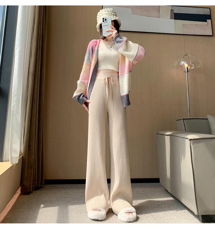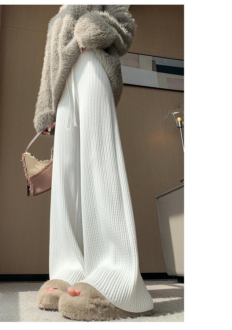 Pantalones de punto de pierna ancha para mujer, otoño e invierno 2024, nuevos pantalones de cintura alta, rectos, sueltos, informales, gruesos, de punto, largos y rectos.