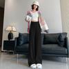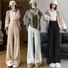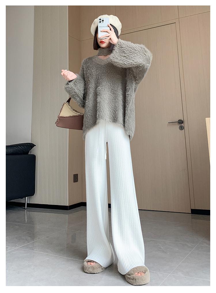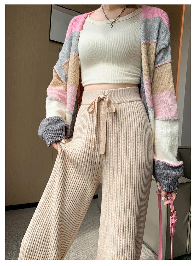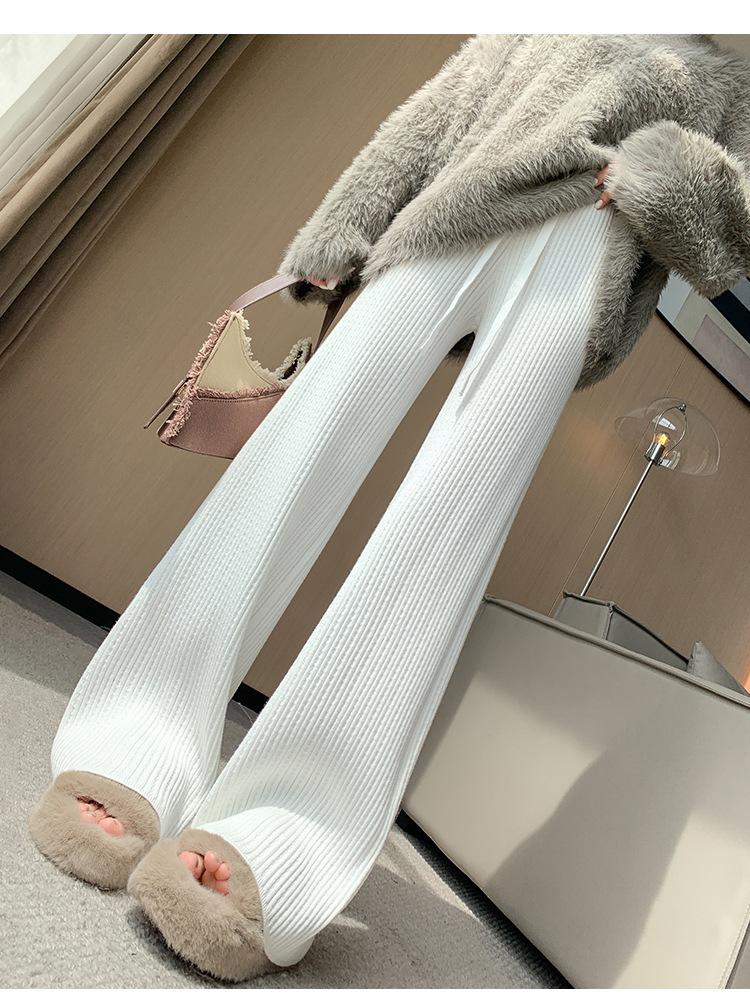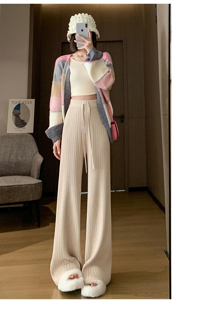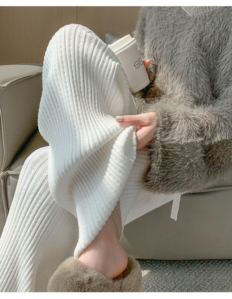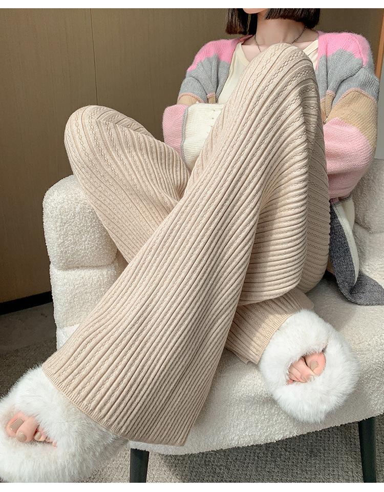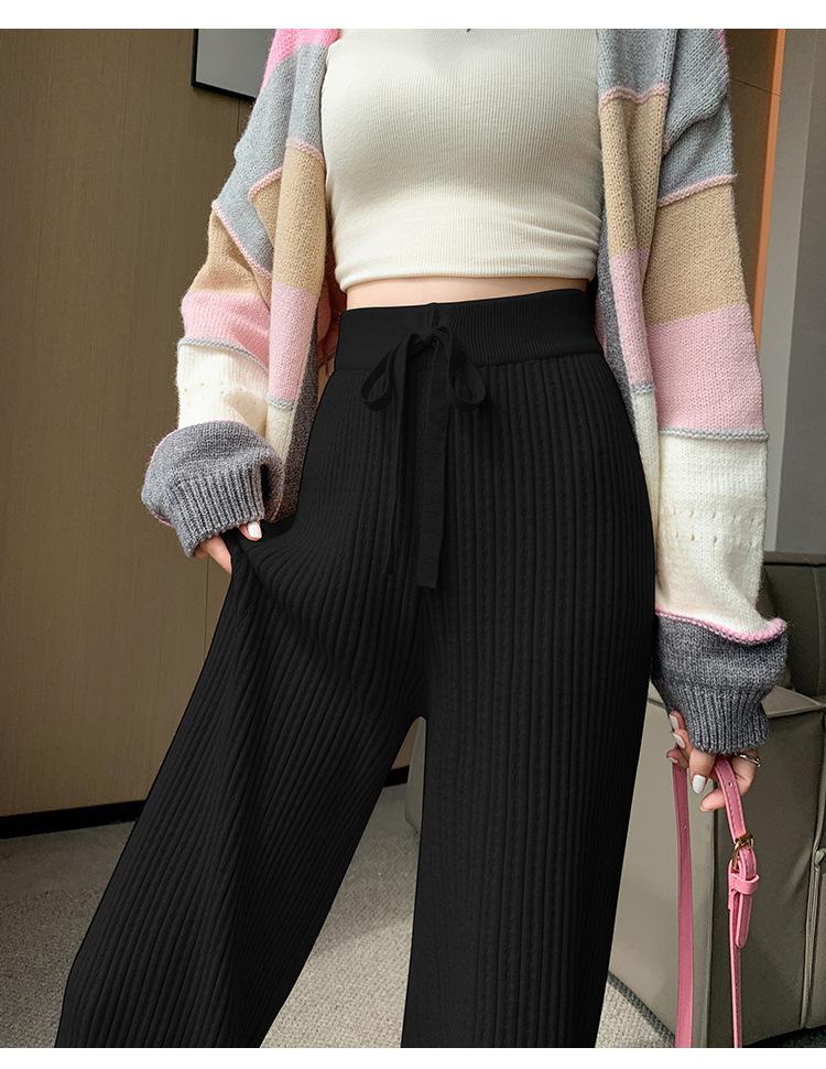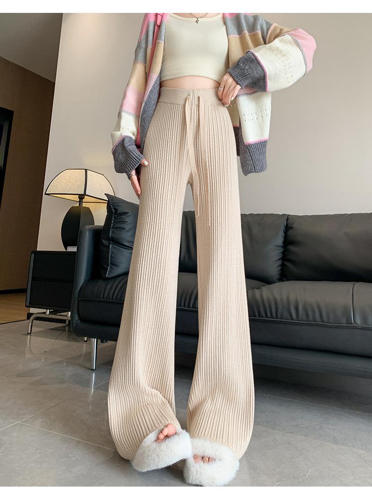 Pantalones de punto de pierna ancha para mujer, otoño e invierno 2024, nuevos pantalones de cintura alta, rectos, sueltos, informales, gruesos, de punto, largos y rectos.