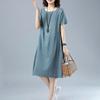 Vestido suelto PXT para mujer, estilo coreano, largo por encima de la rodilla, de algodón y lino, falda de vacaciones, corte A, falda informal de lino