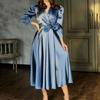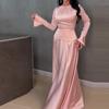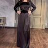Otoño 2024 nuevo vestido europeo y americano transfronterizo de Amazon transfronterizo de cuello redondo de satén de temperamento de alta calidad de color sólido para mujer