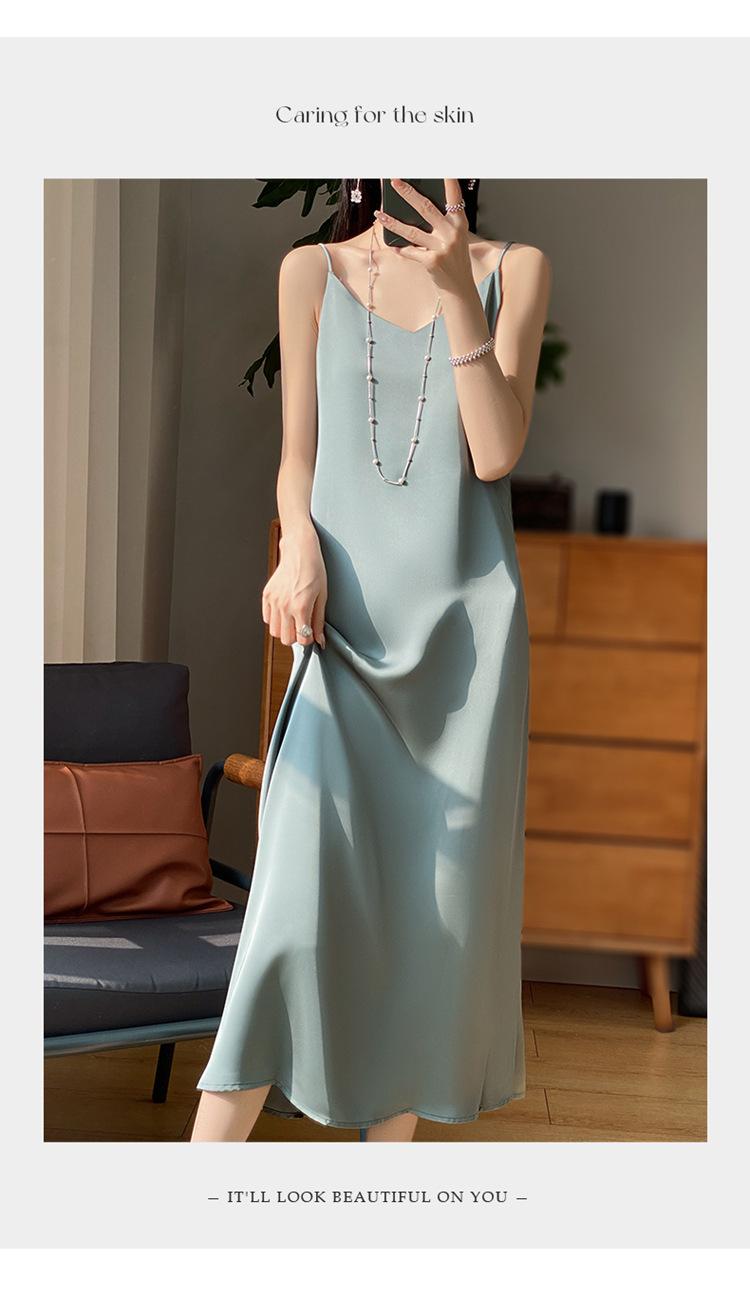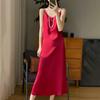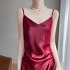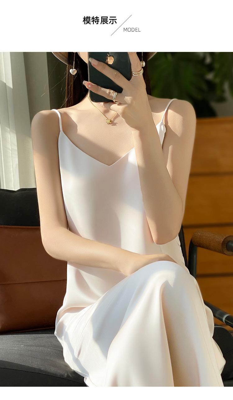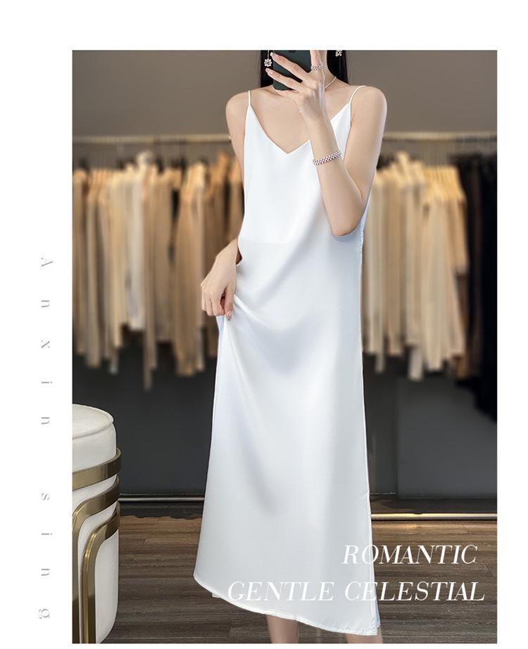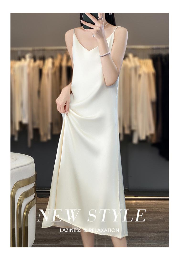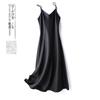 Seda 2025 Primavera y Verano Nuevo Vestido Interior Delgado con Cuello en V para Mujer Satén Socialité Sexy Falda con Tirantes Falda Larga