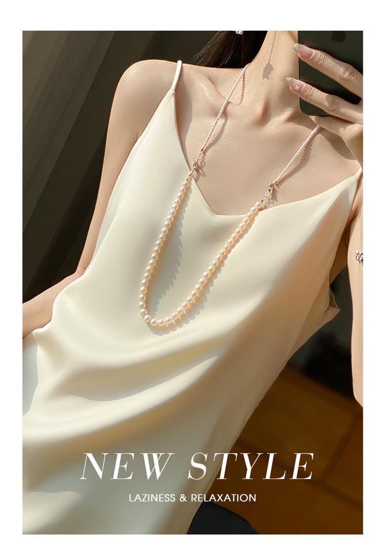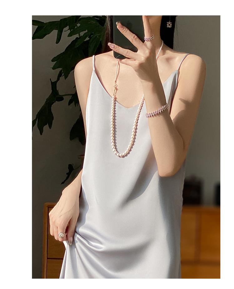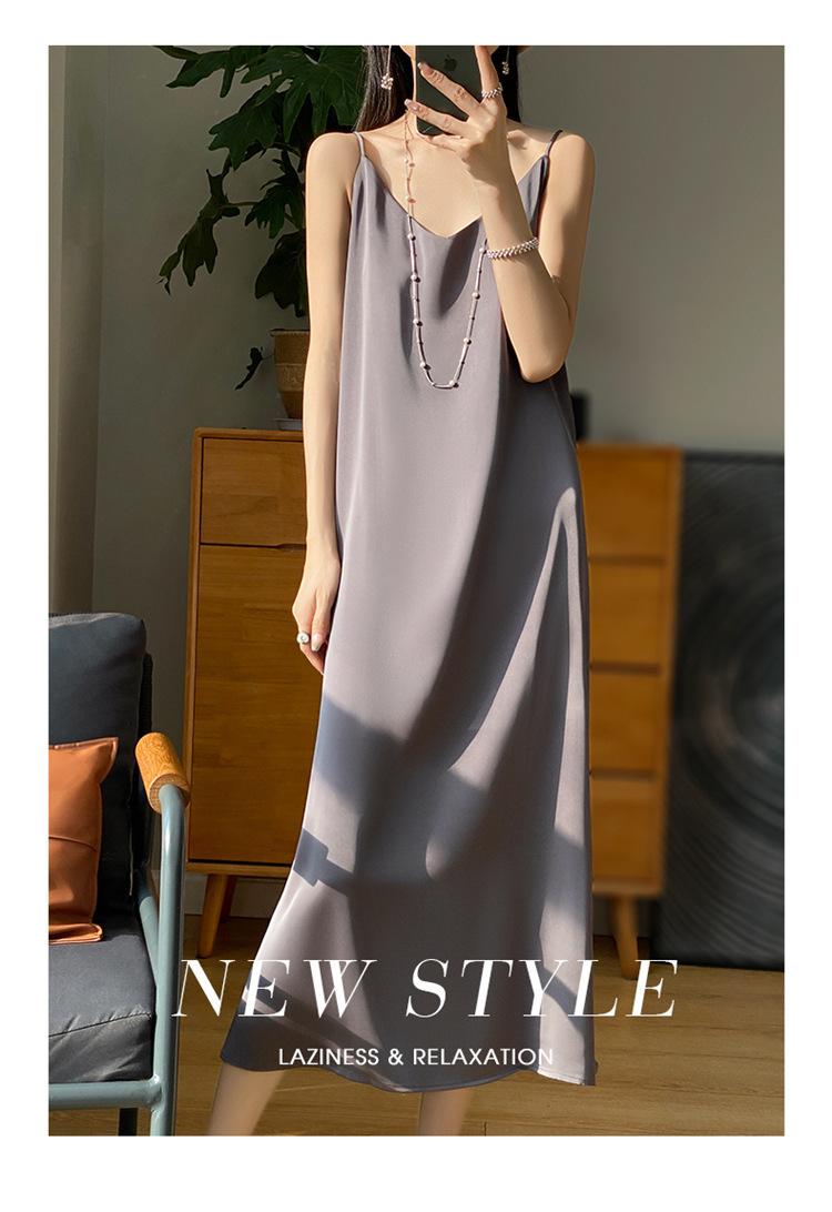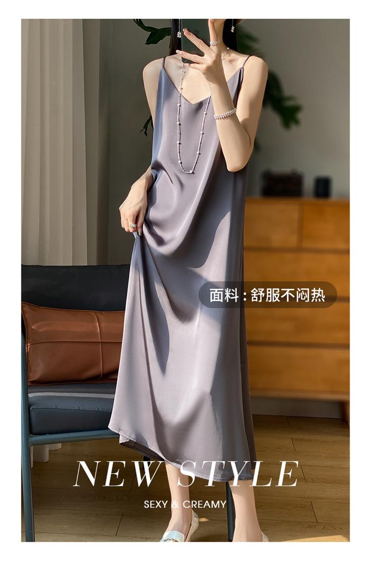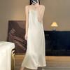Seda 2025 Primavera y Verano Nuevo Vestido Interior Delgado con Cuello en V para Mujer Satén Socialité Sexy Falda con Tirantes Falda Larga