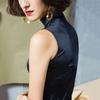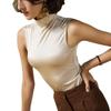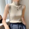 Otoño e invierno Nuevo elegante cuello medio alto sin mangas camiseta interior chaleco de cuello alto pequeño para mujer ropa exterior