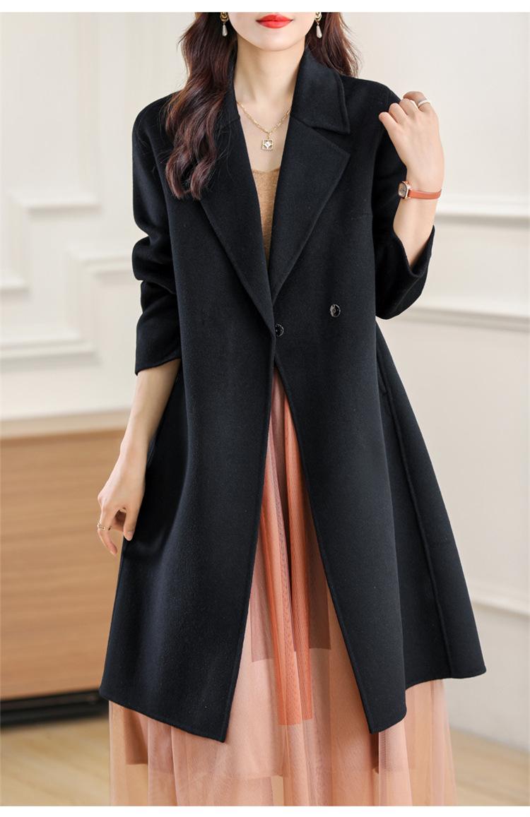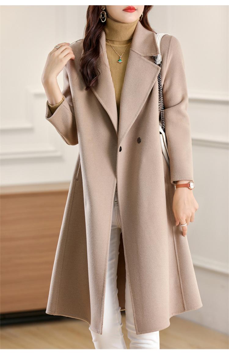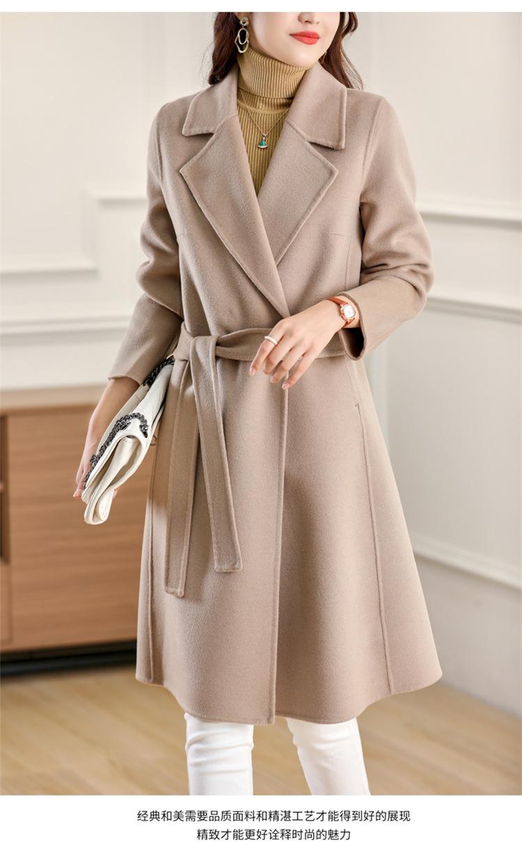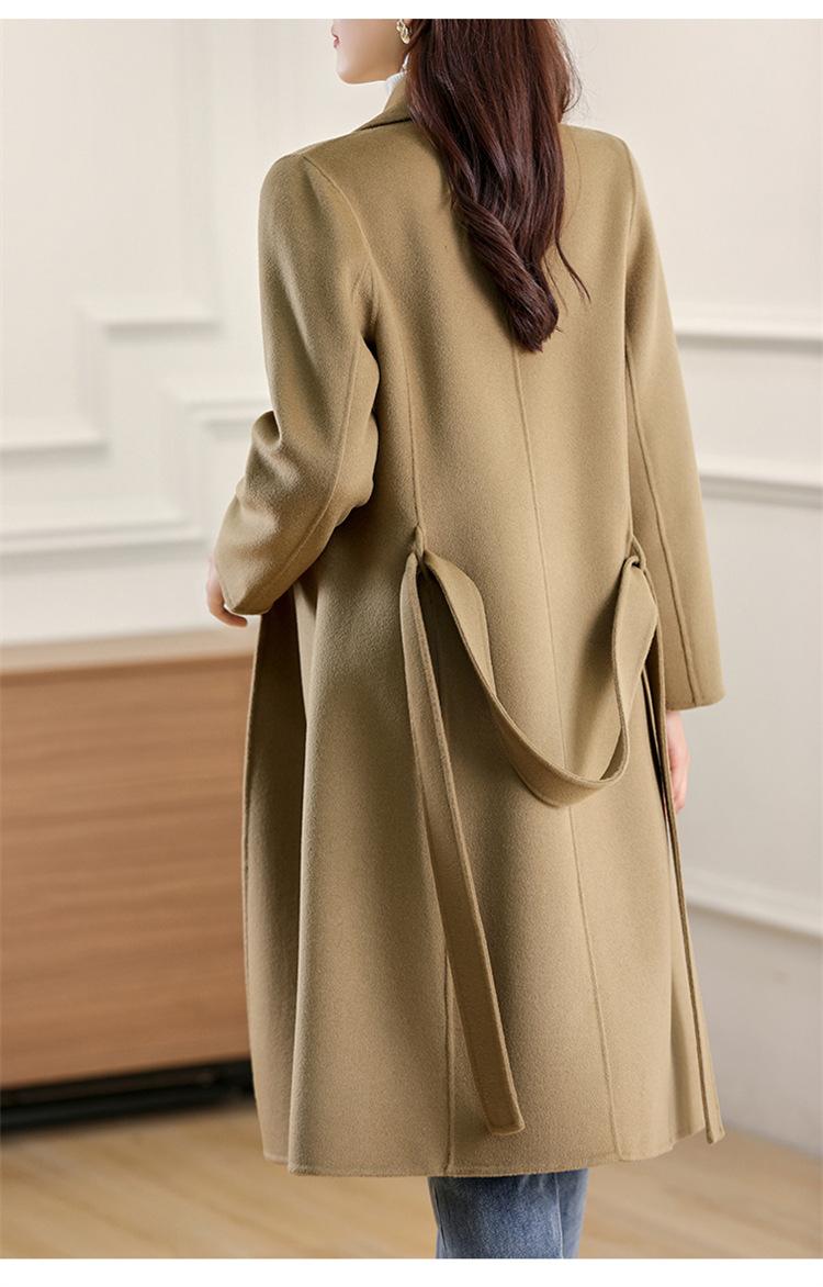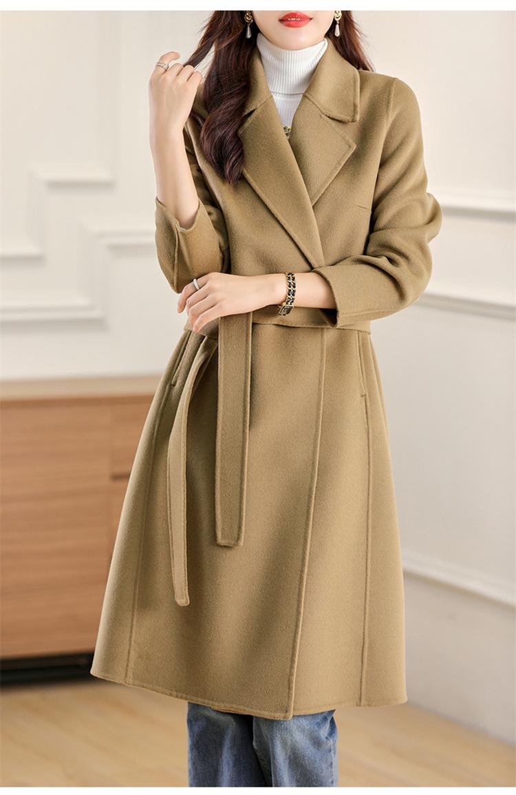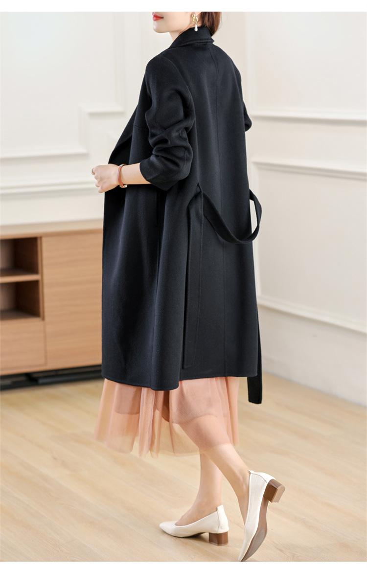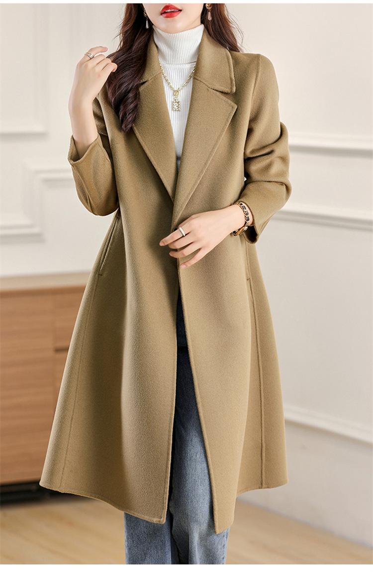 Otoño e Invierno Nuevo Estilo Coreano para Mujer Traje de Lana Pura Cuello Holgado Largo Medio Exterior con Cordones Abrigo de Lana de Doble Cara