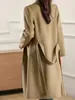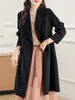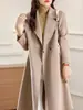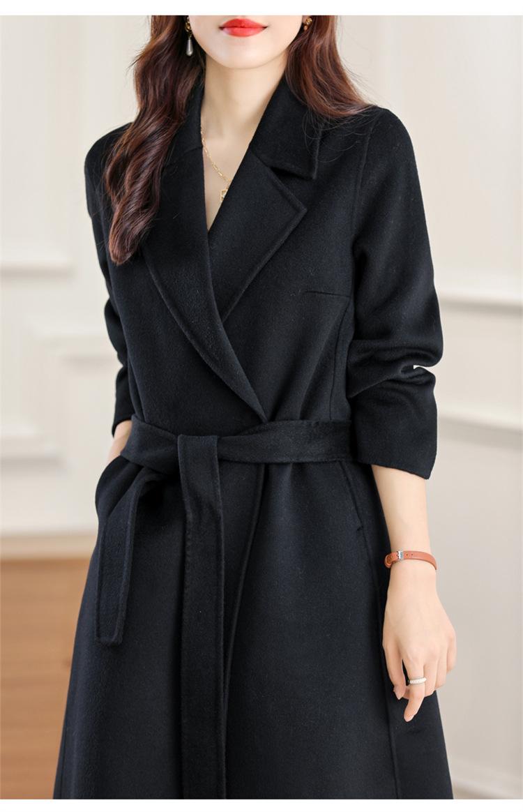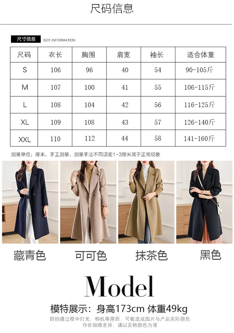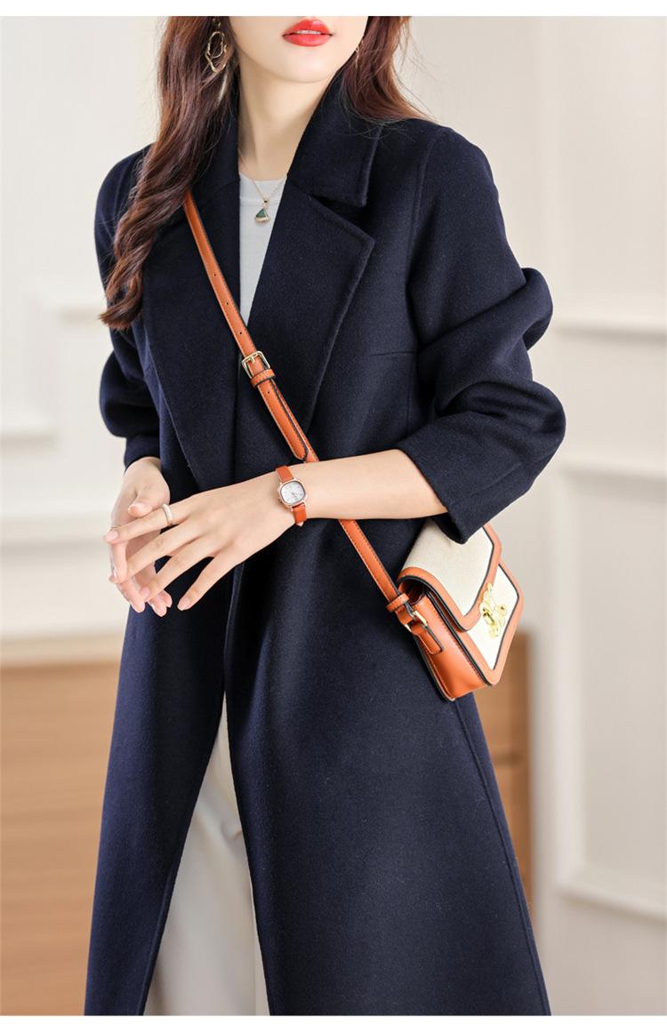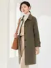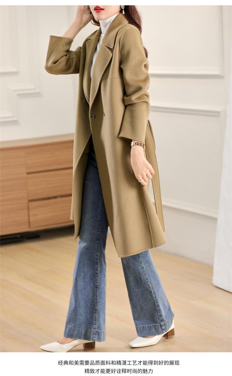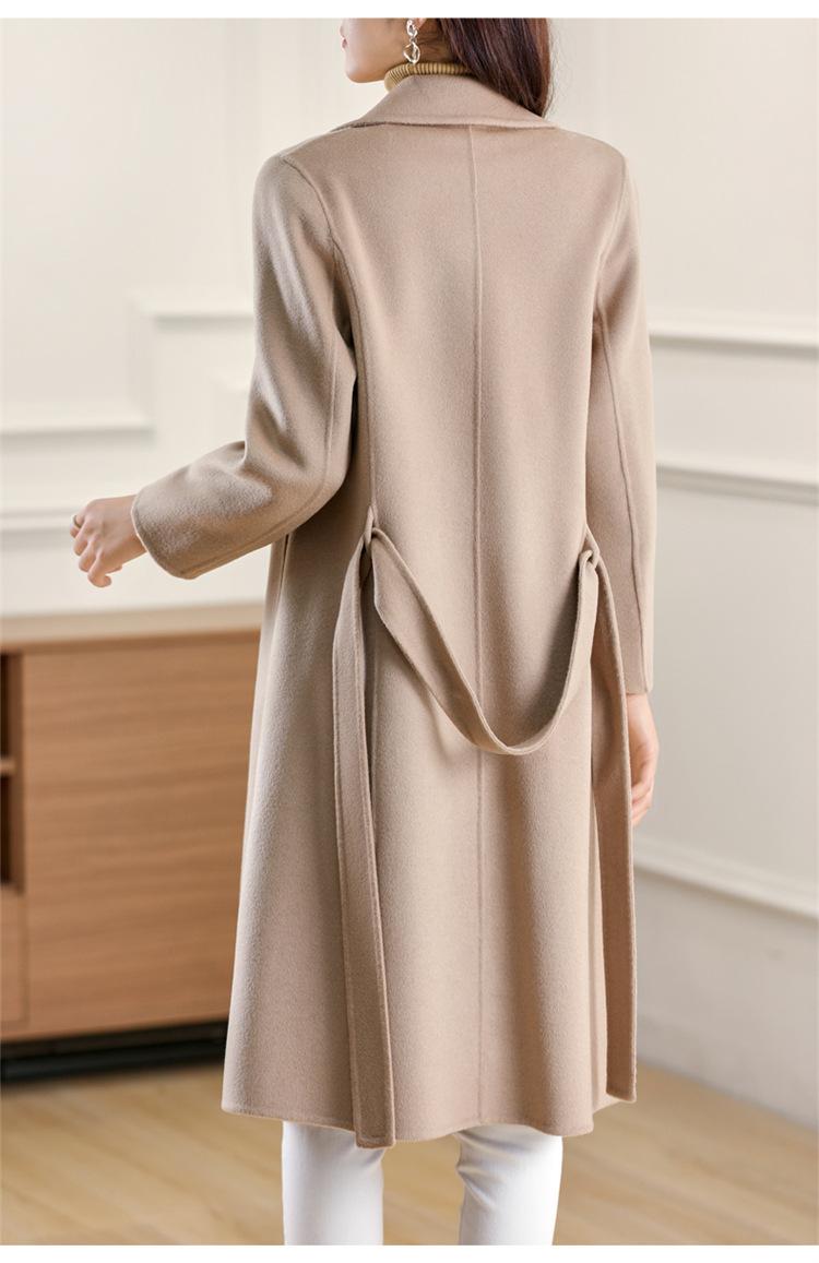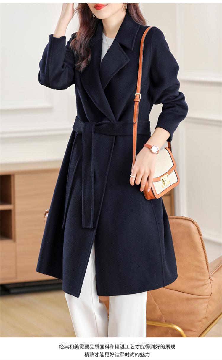 Otoño e Invierno Nuevo Estilo Coreano para Mujer Traje de Lana Pura Cuello Holgado Largo Medio Exterior con Cordones Abrigo de Lana de Doble Cara