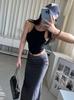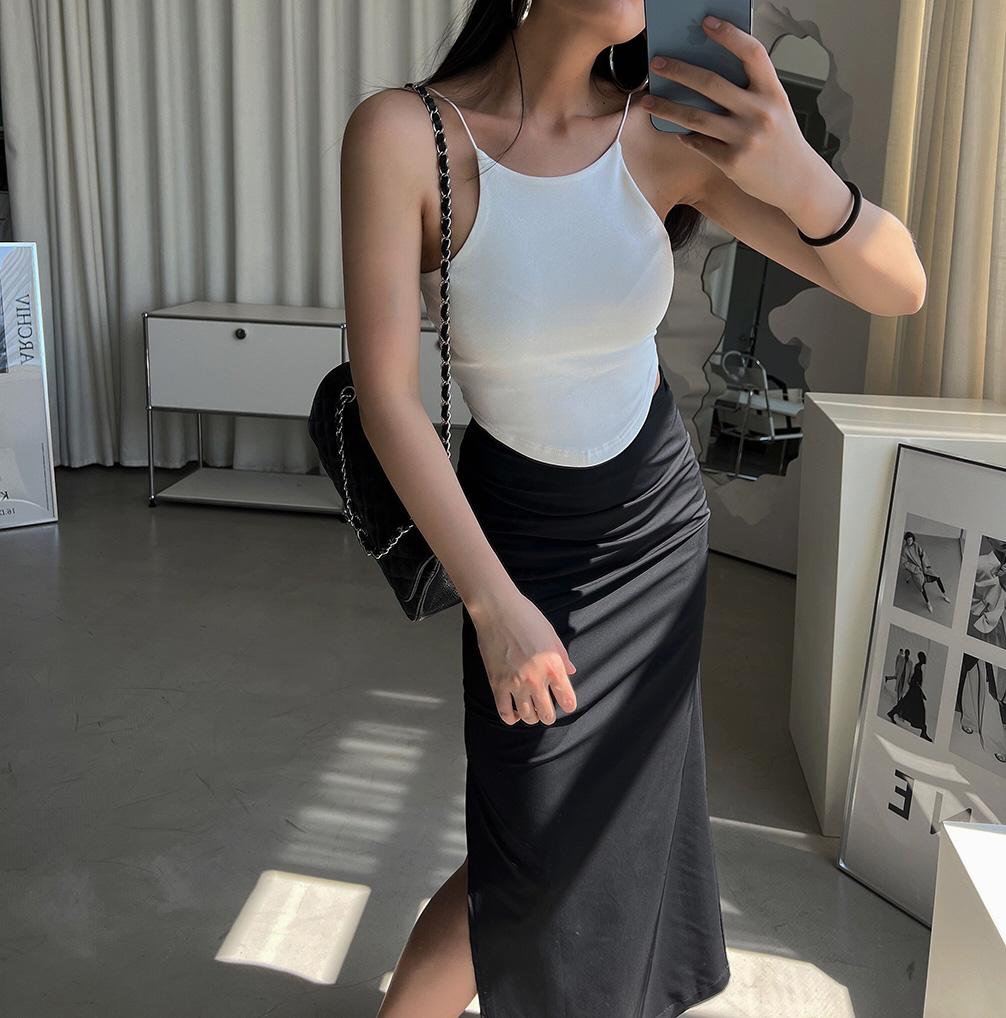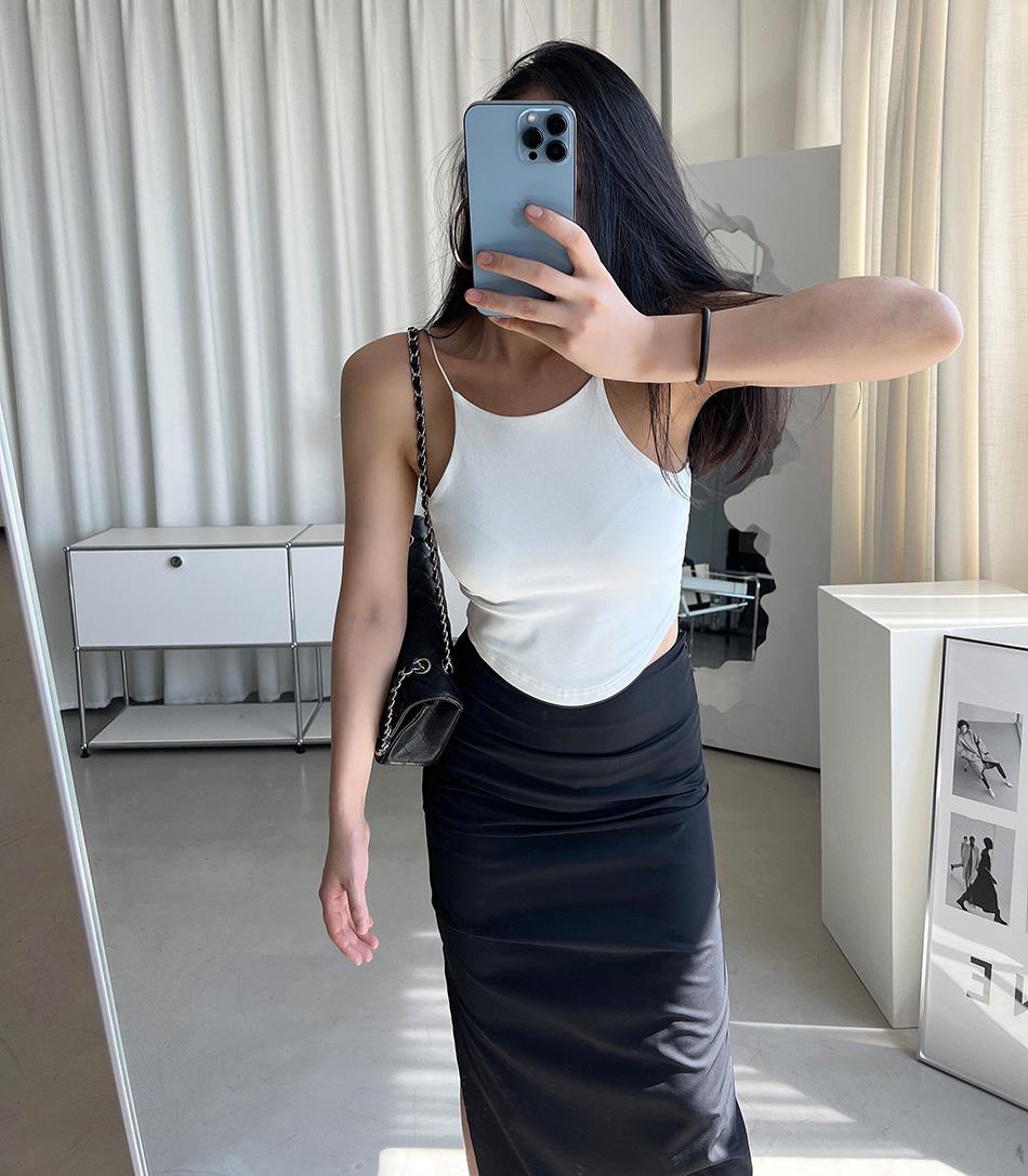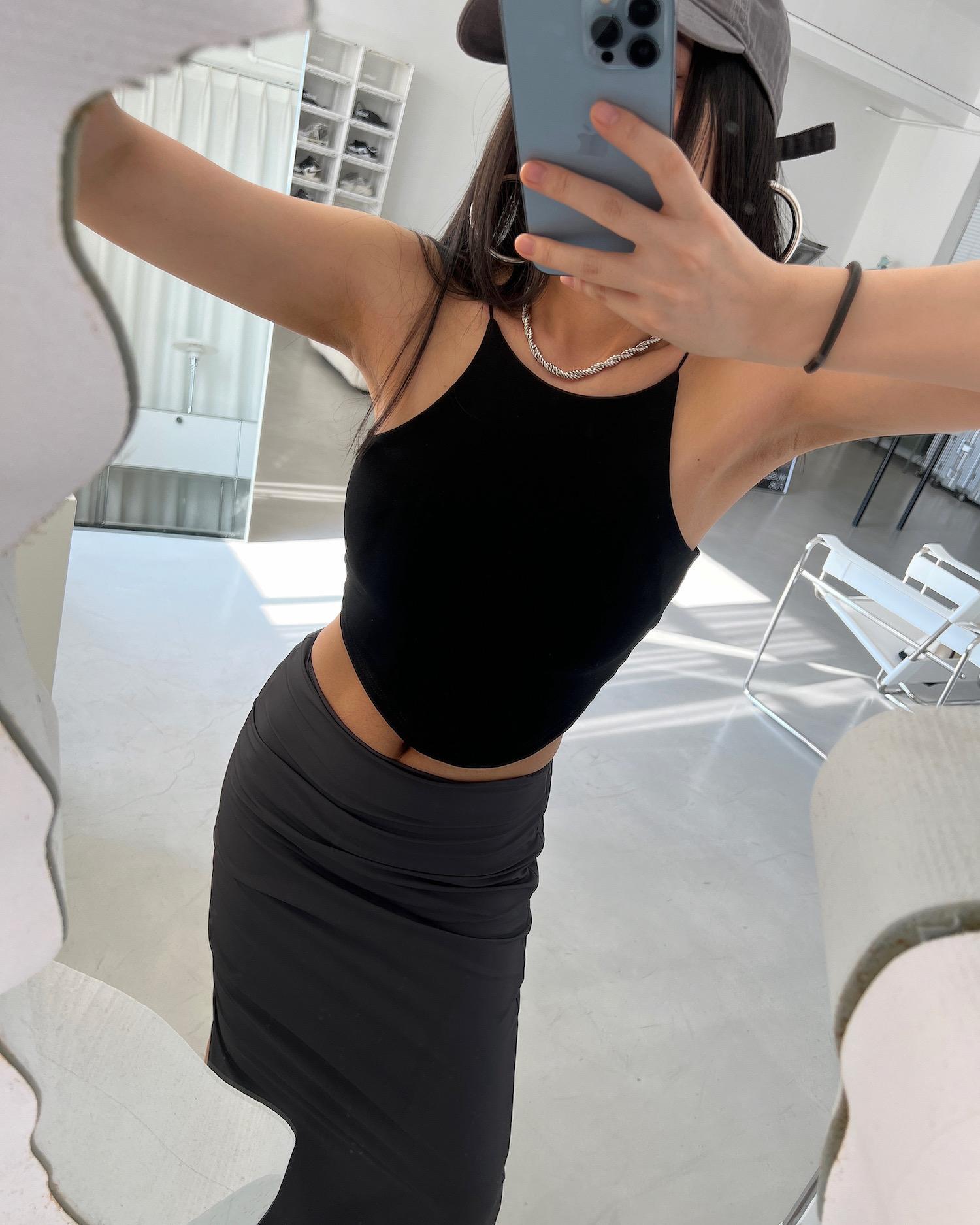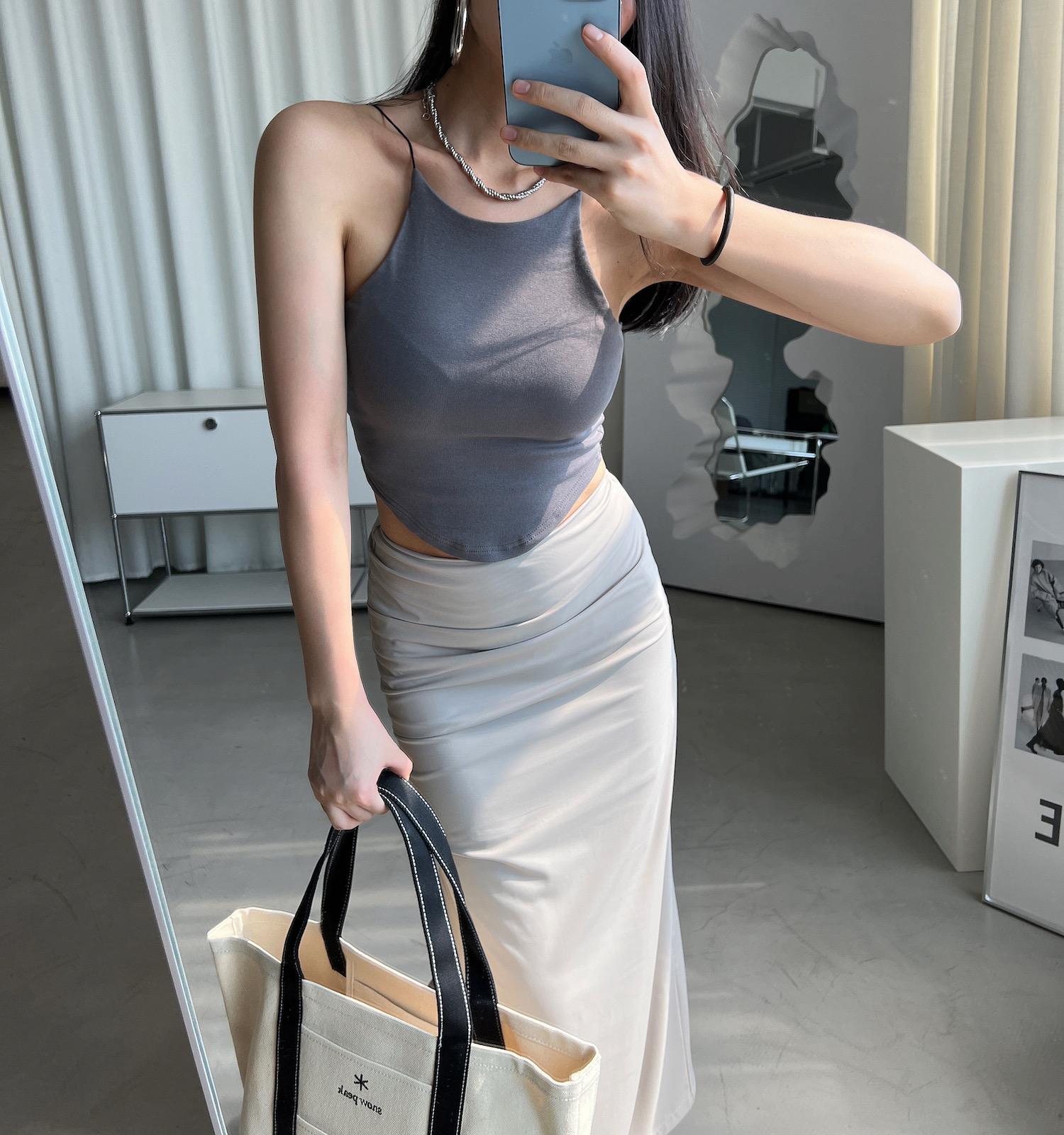 Camisola fina y curva de verano para mujer, ropa interior y exterior, ajustada, sexy, sexy, para chica, belleza, parte superior corta en la espalda
