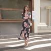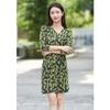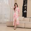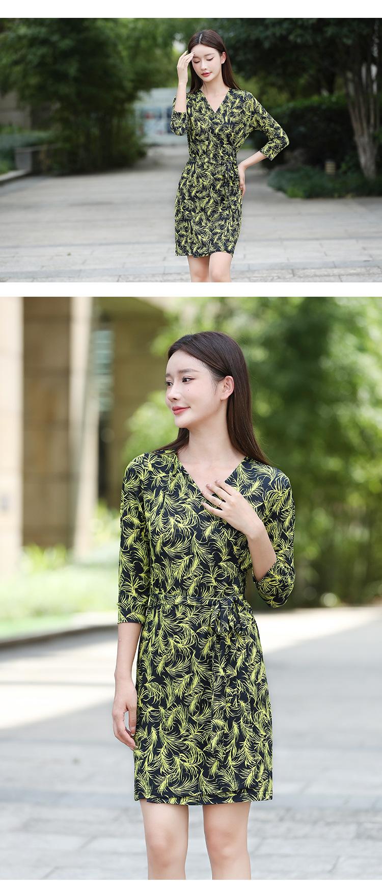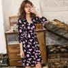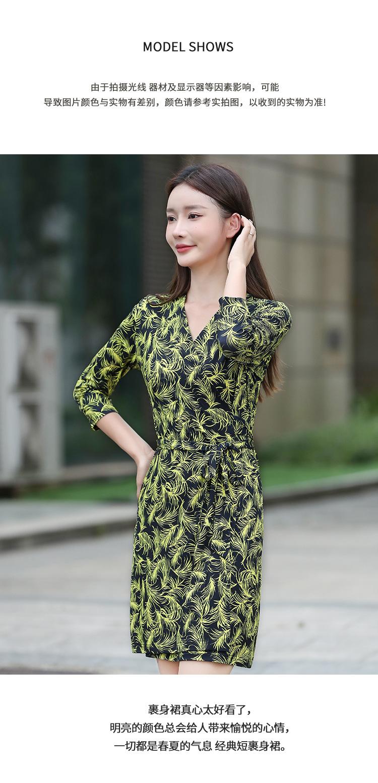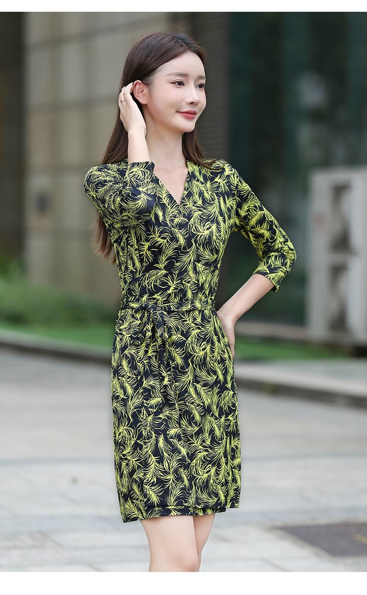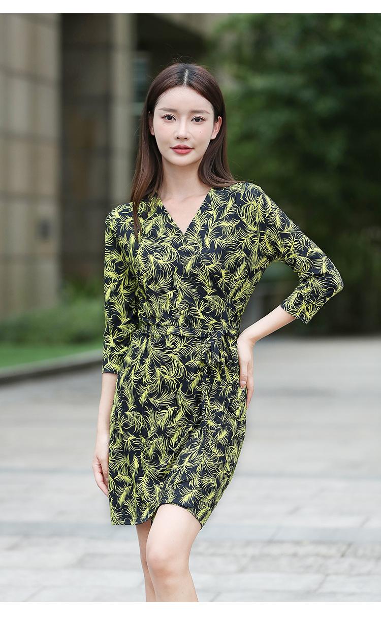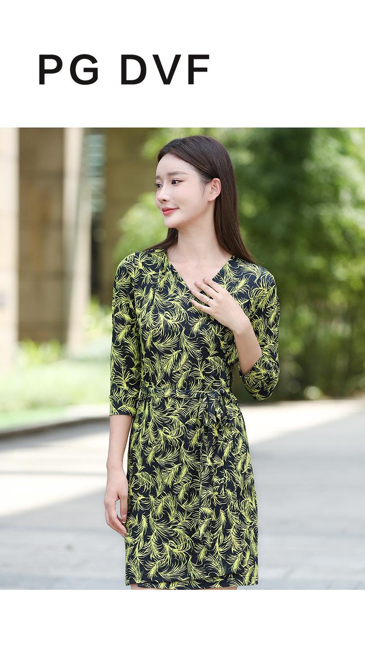 PG DVF2024 Vestido corto ajustado con escote en V y estampado de plumas, estilo suave, novedad de verano