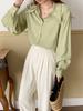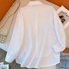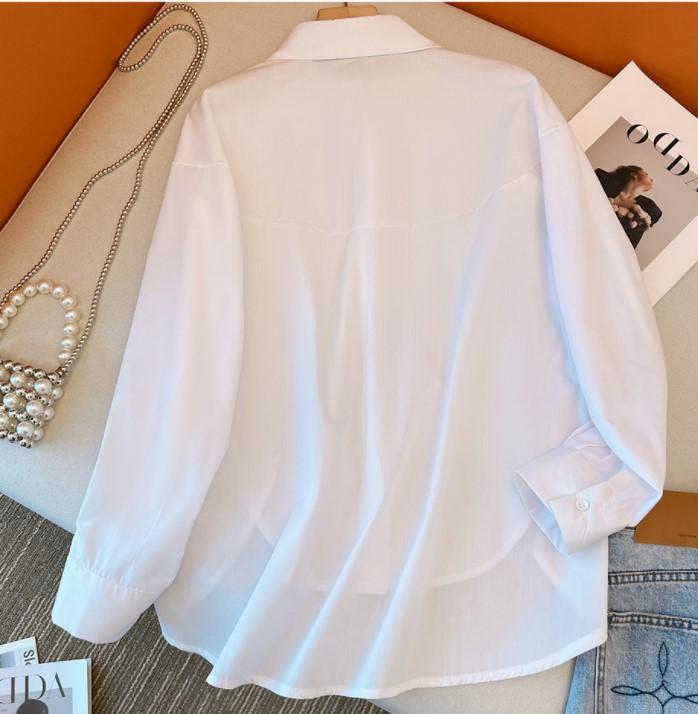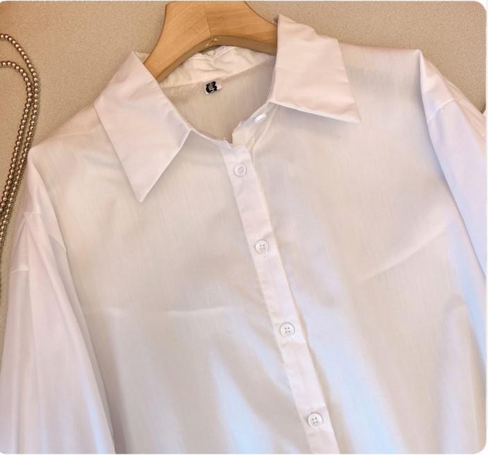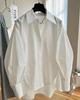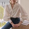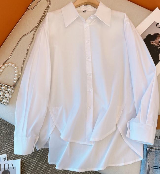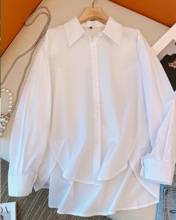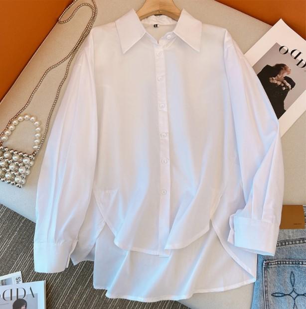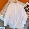 Camisa blanca holgada de manga farol para mujer, primavera y otoño, diseño francés, camisa con abertura irregular, top de manga larga