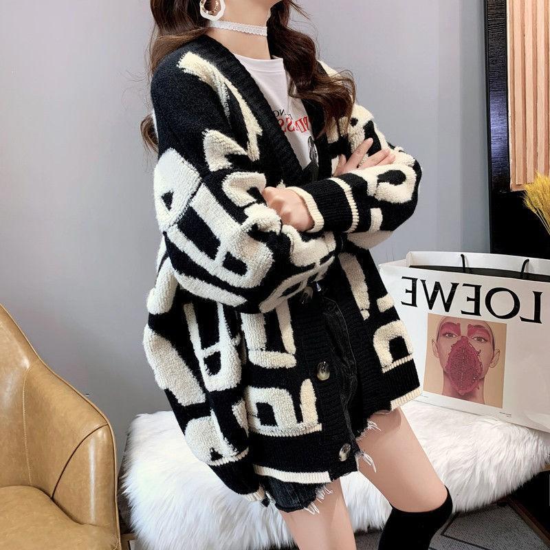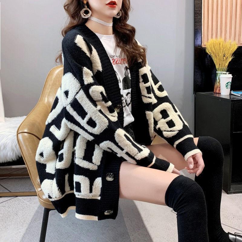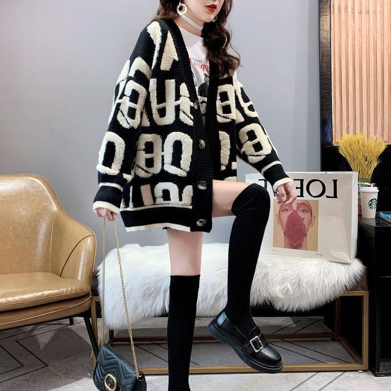 Suéter de estilo perezoso para mujer, versión coreana de otoño e invierno de 2021, cárdigan de punto holgado y fresco para estudiantes, con diseño de celebridades de red32precio de descuento:99