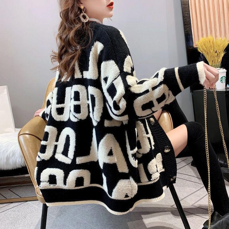 Cárdigan de punto bordado con toalla y letras de moda, otoño e invierno 2023, estilo coreano, nuevo, holgado, elegante y antiedad.