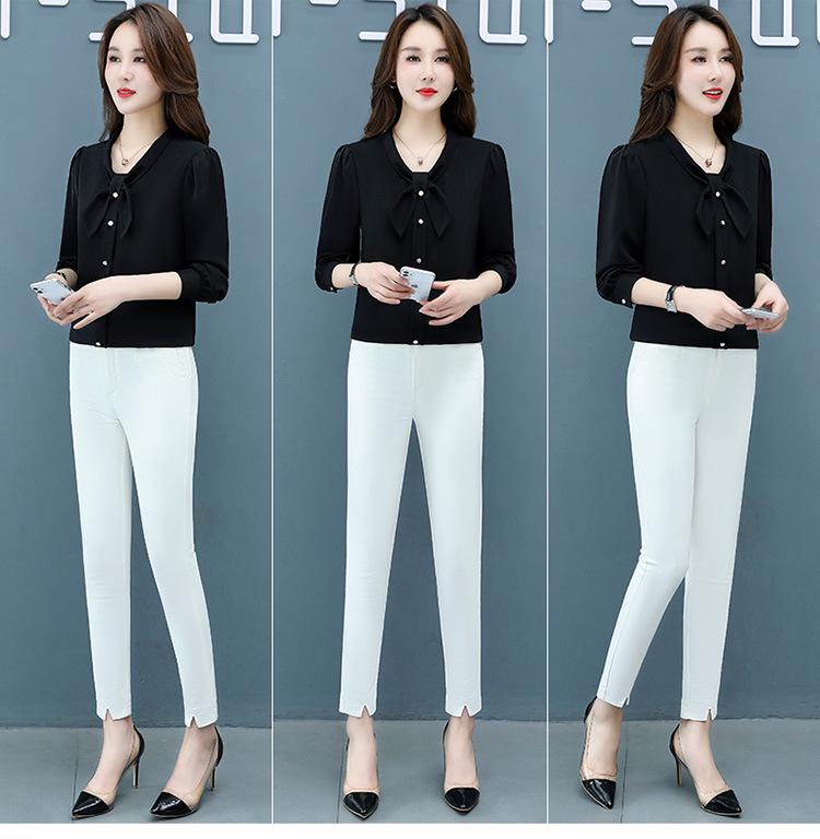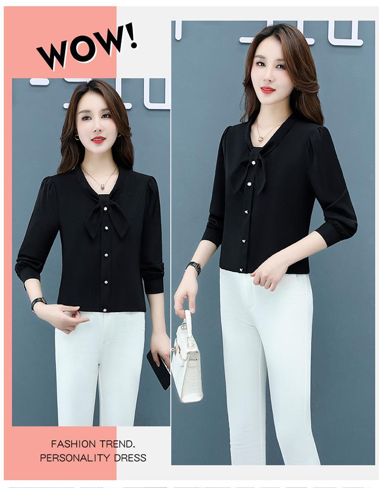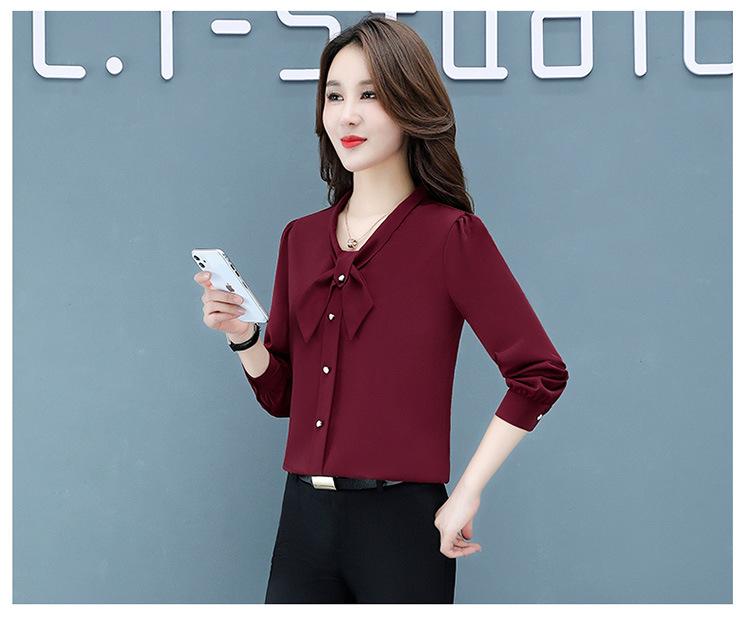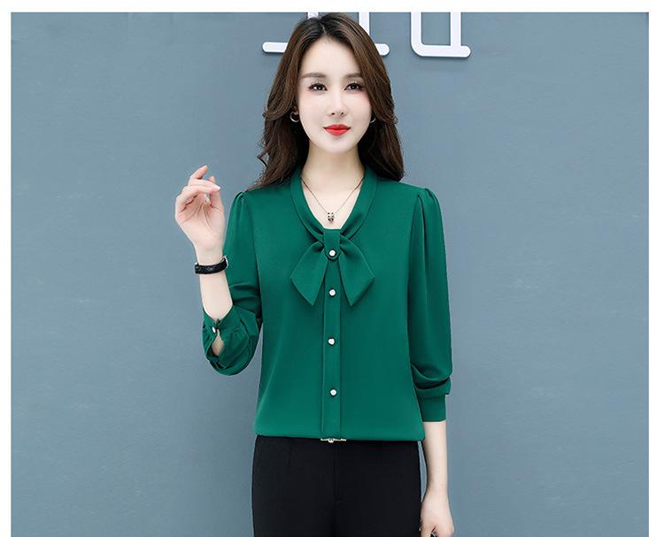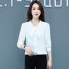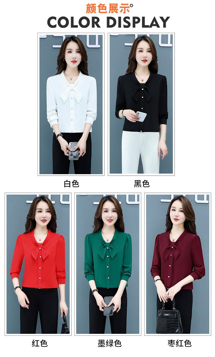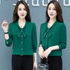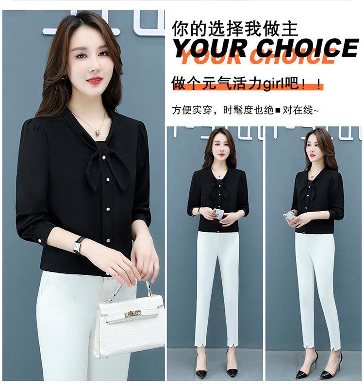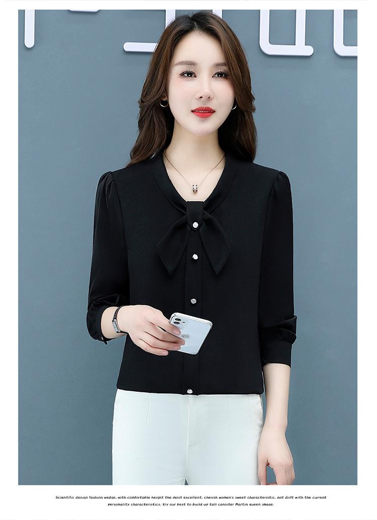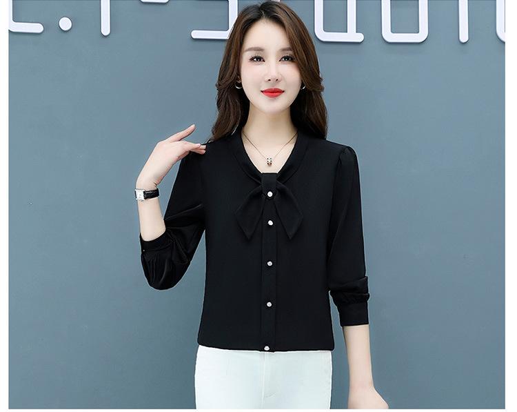 2024 Primavera Nuevo Estilo Camisa de Chifón para Mujer con Cuello de Bufanda Camisa de Manga Larga Moda Versátil Multicolor Camisa Negra