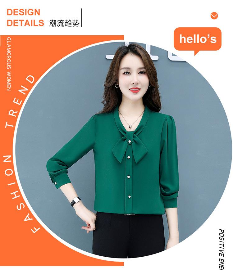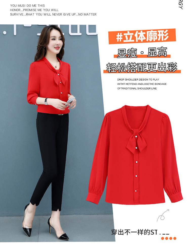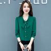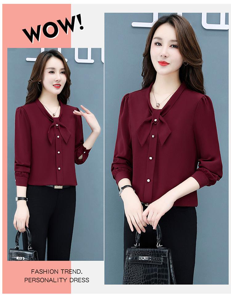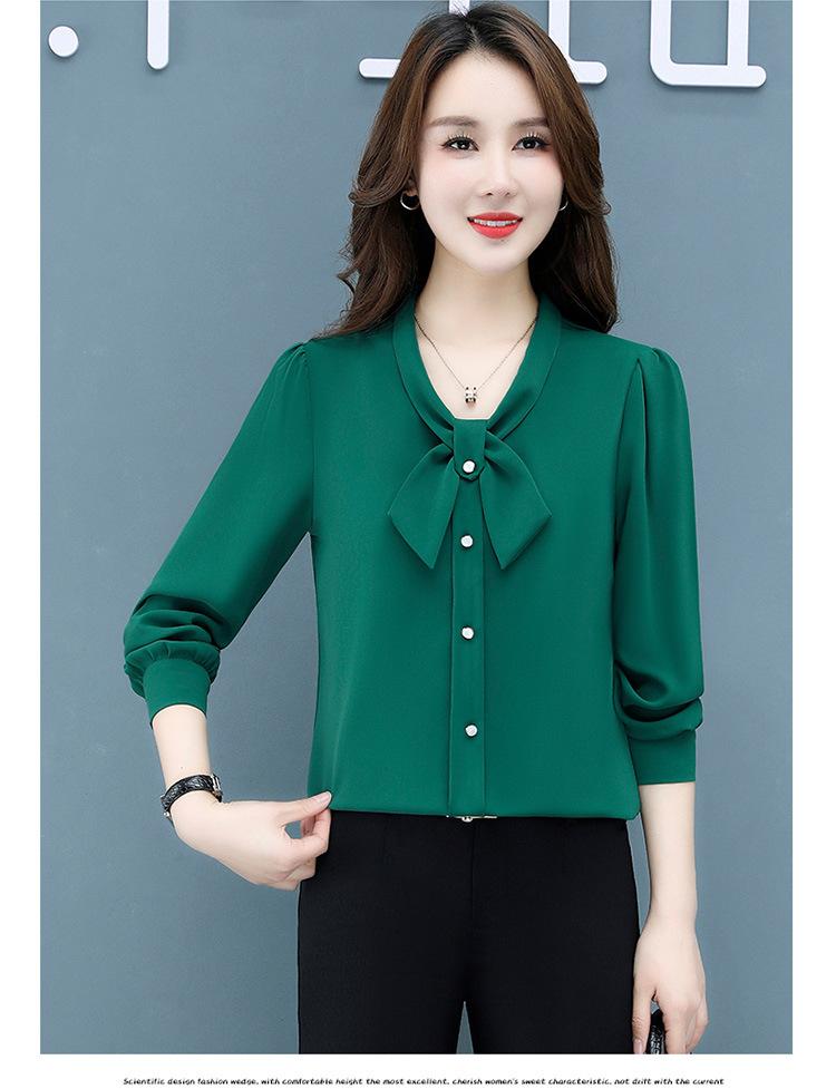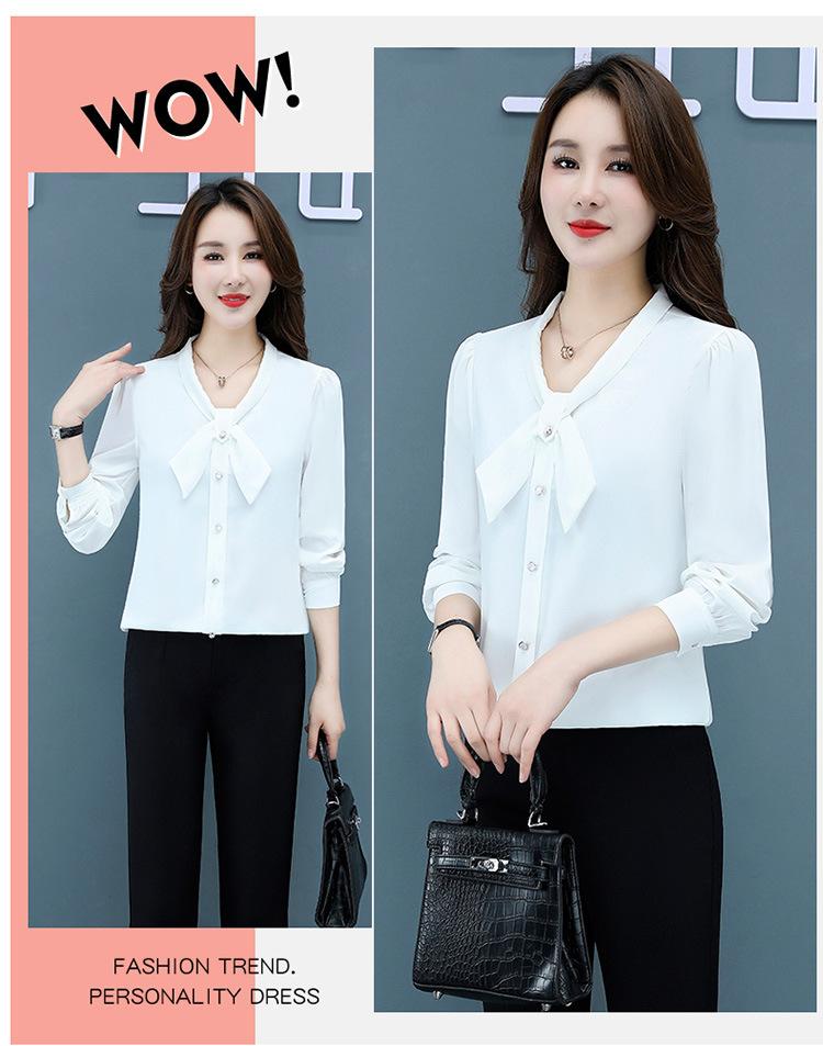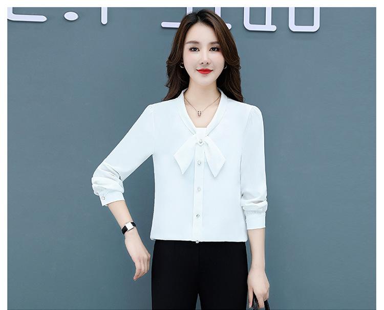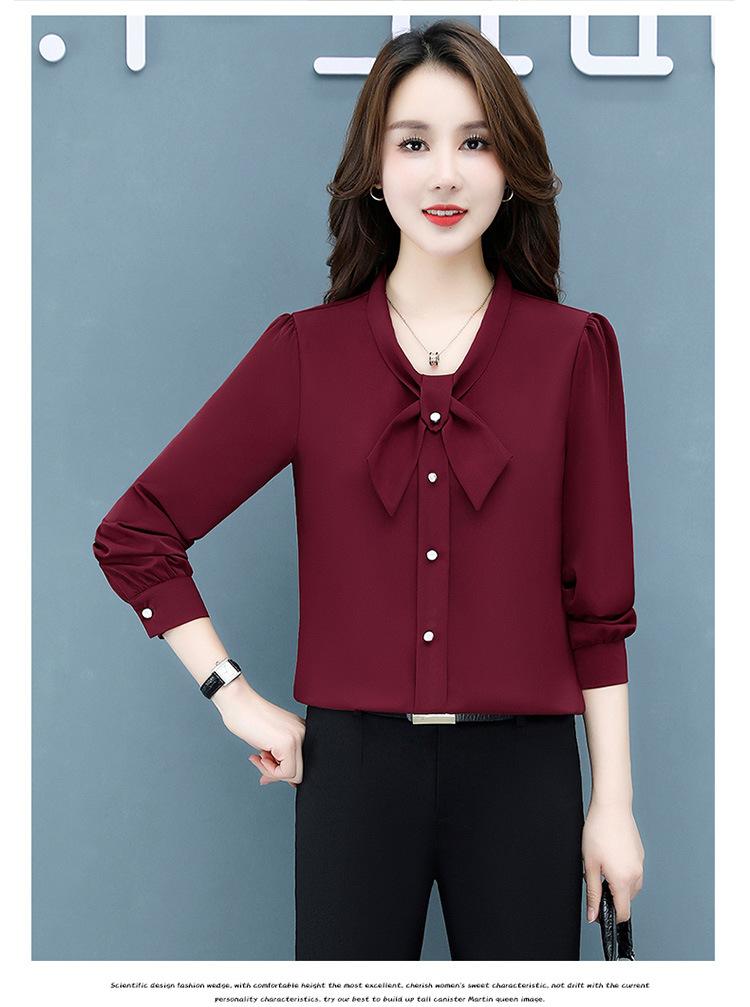 2024 Primavera Nuevo Estilo Camisa de Chifón para Mujer con Cuello de Bufanda Camisa de Manga Larga Moda Versátil Multicolor Camisa Negra