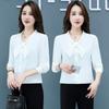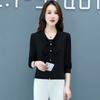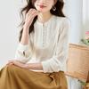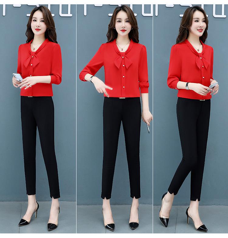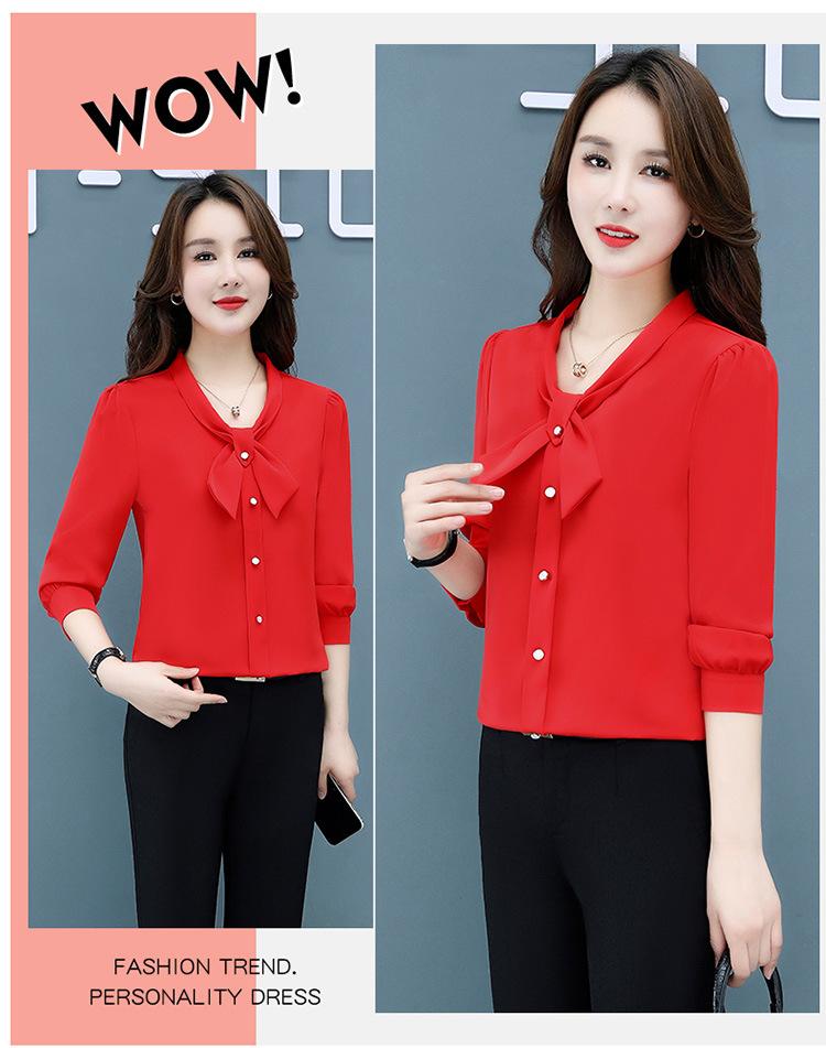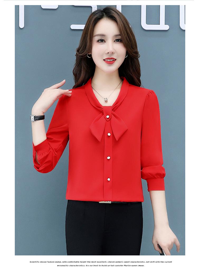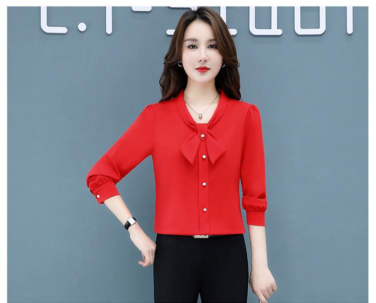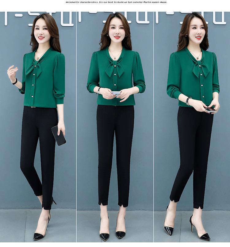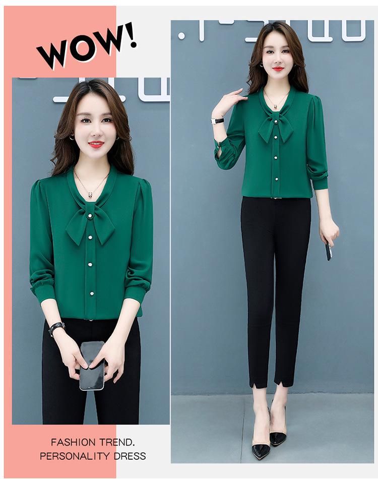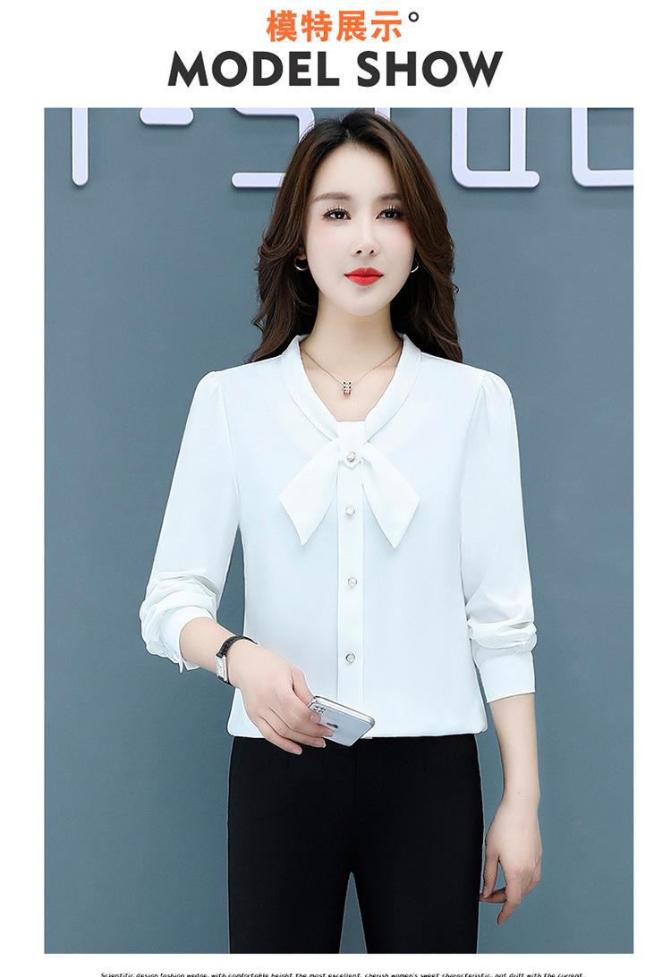 2024 Primavera Nuevo Estilo Camisa de Chifón para Mujer con Cuello de Bufanda Camisa de Manga Larga Moda Versátil Multicolor Camisa Negra