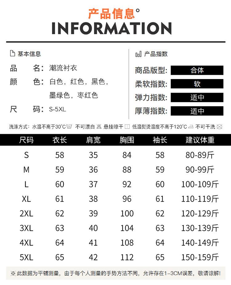 S, M, L, XL, XXL, 3XL, 4XL, 5XL
