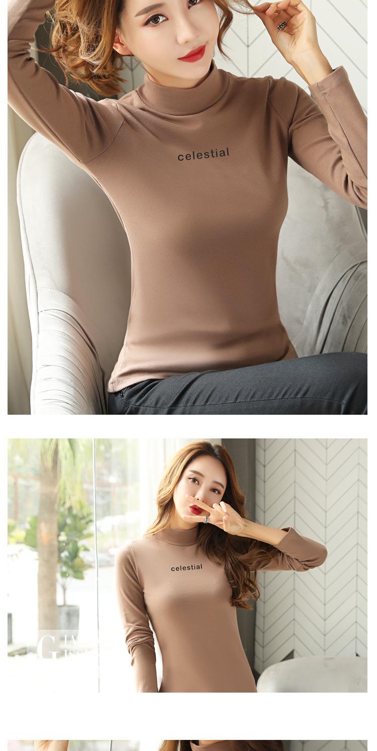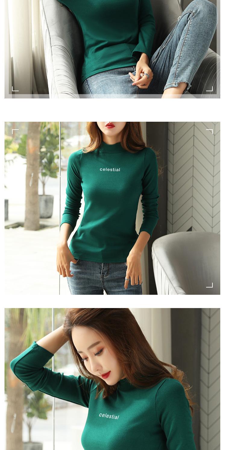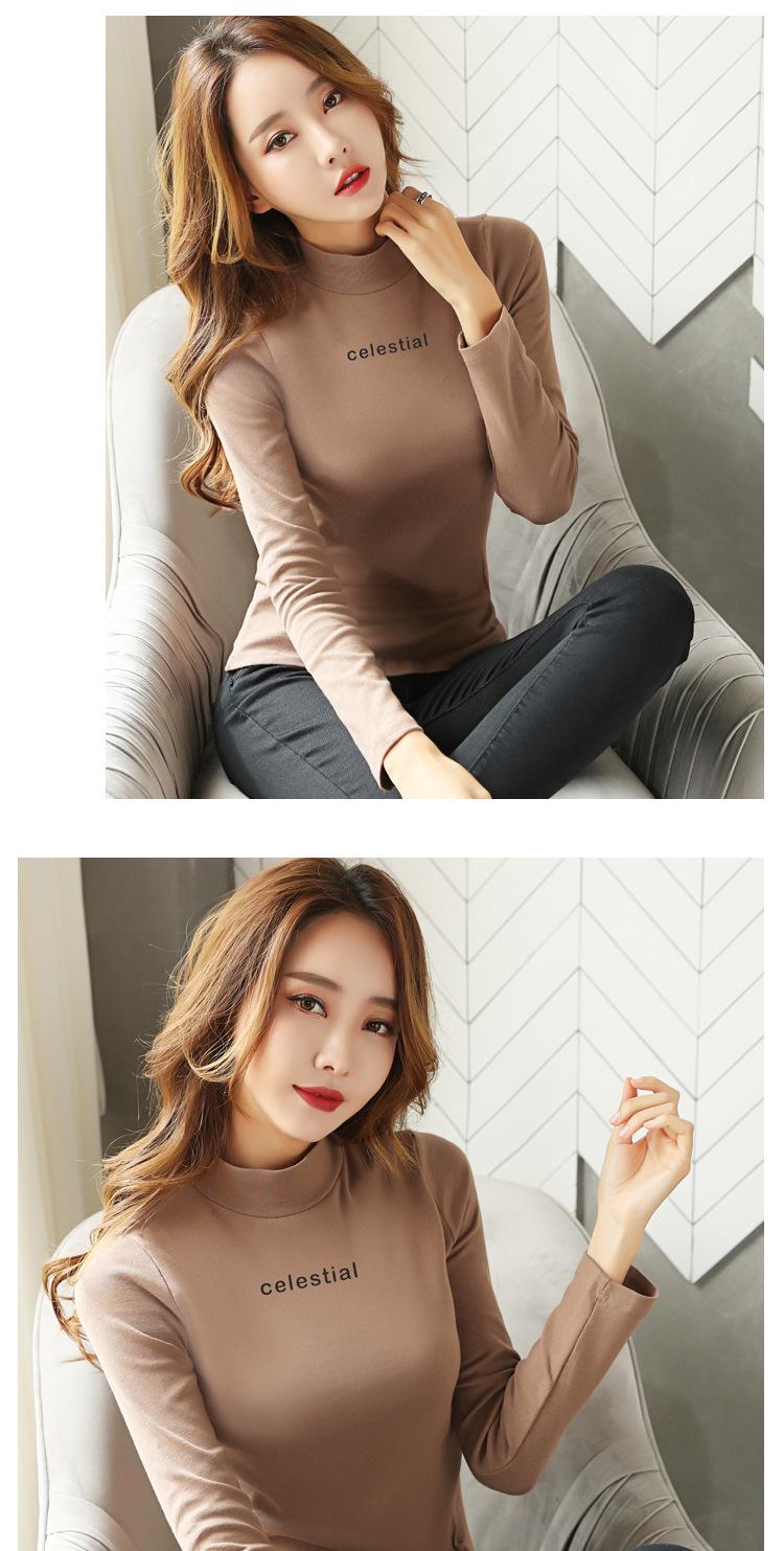Suéter de cuello alto medio para mujer, otoño e invierno, camisa básica de terciopelo cálido estilo coreano nuevo, versátil y ajustado