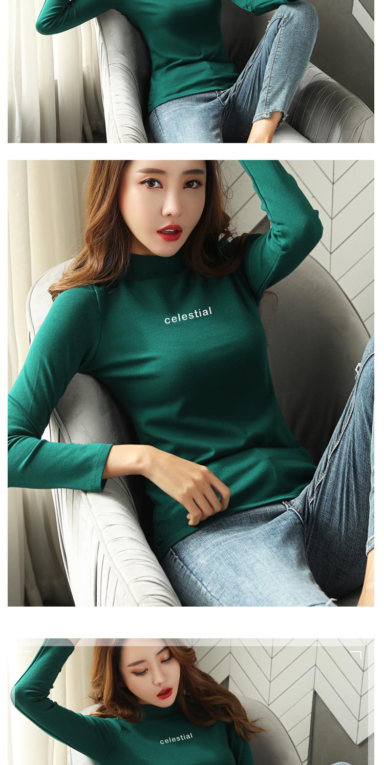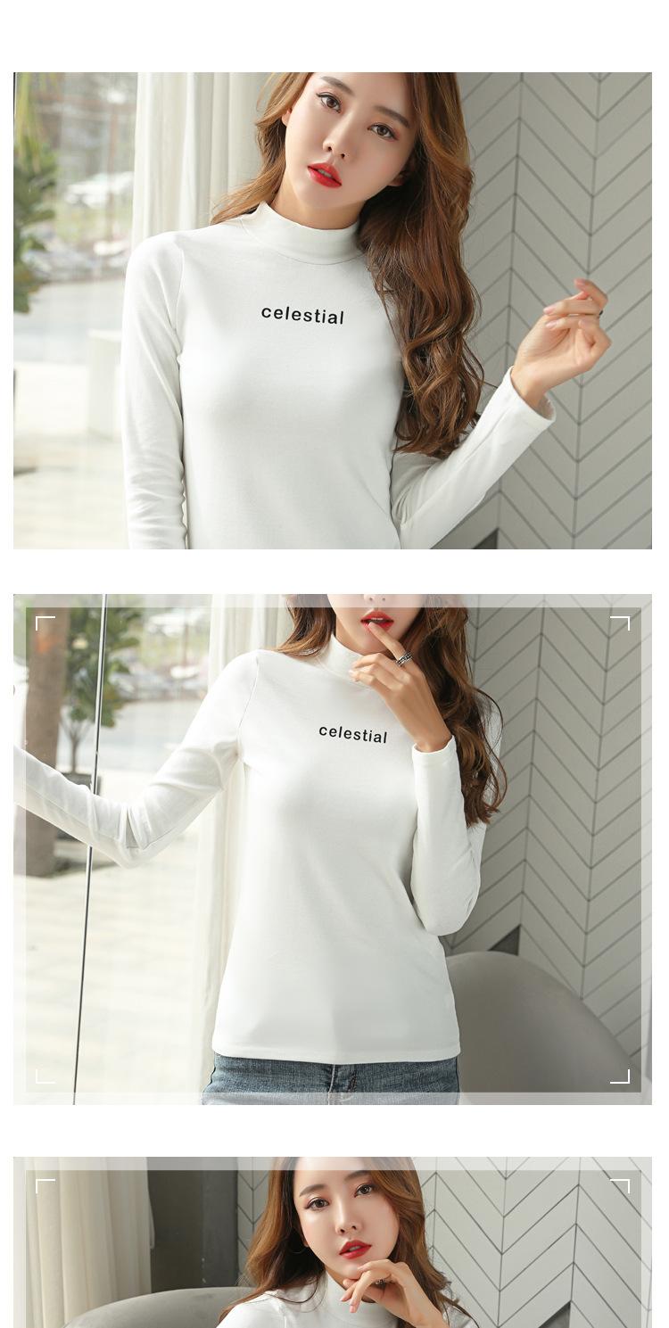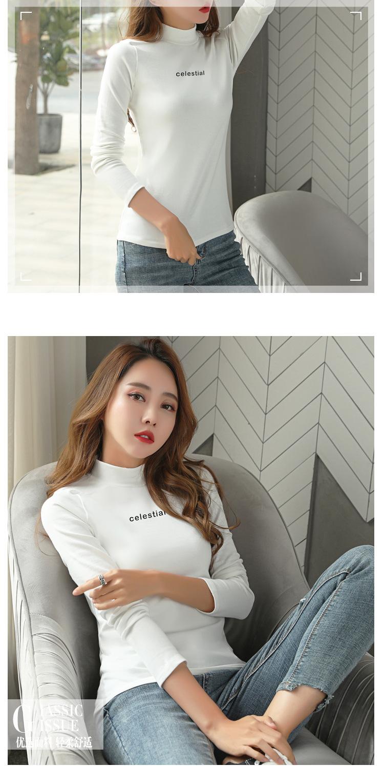 Suéter de cuello alto medio para mujer, otoño e invierno, camisa básica de terciopelo cálido estilo coreano nuevo, versátil y ajustado