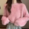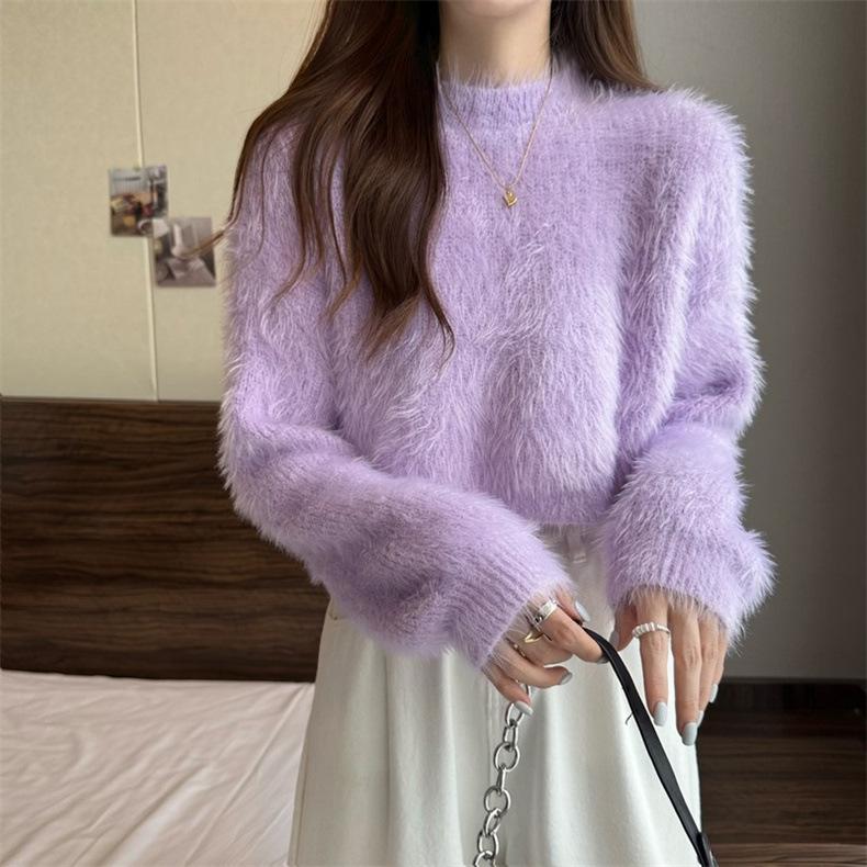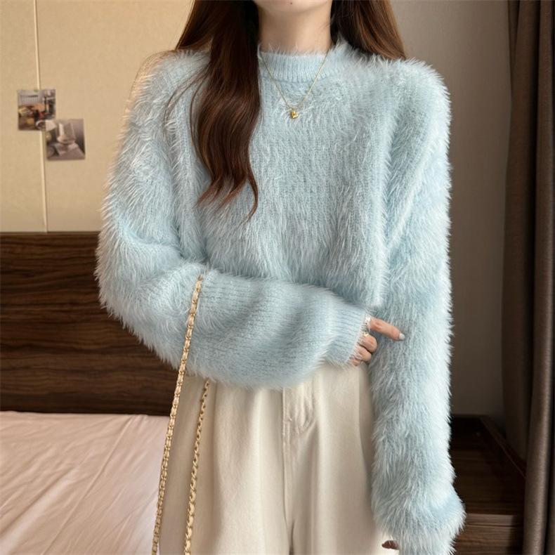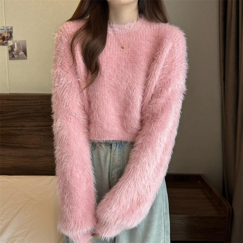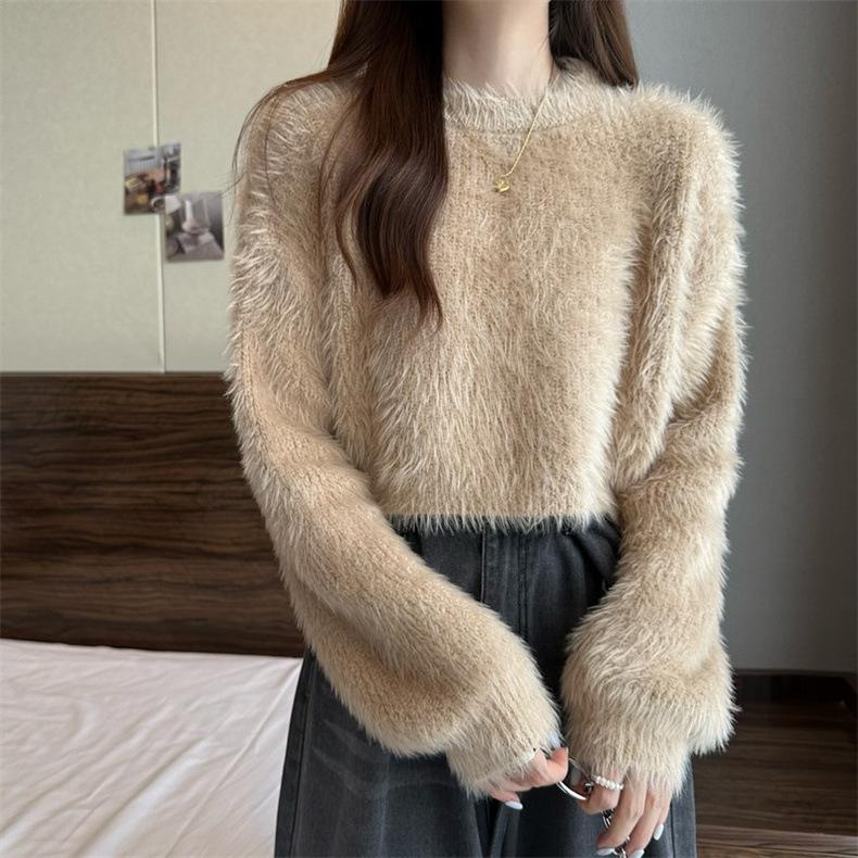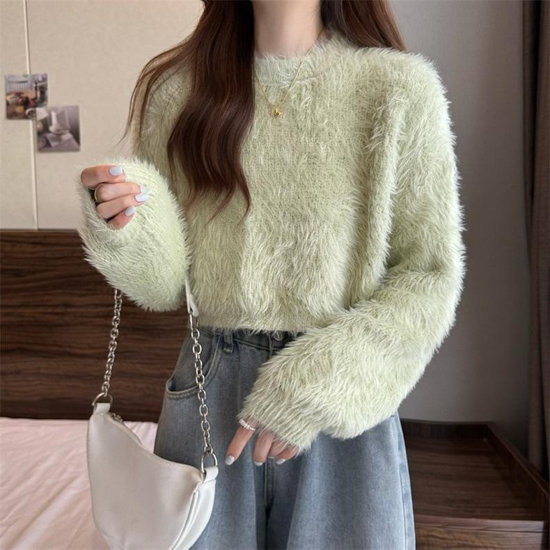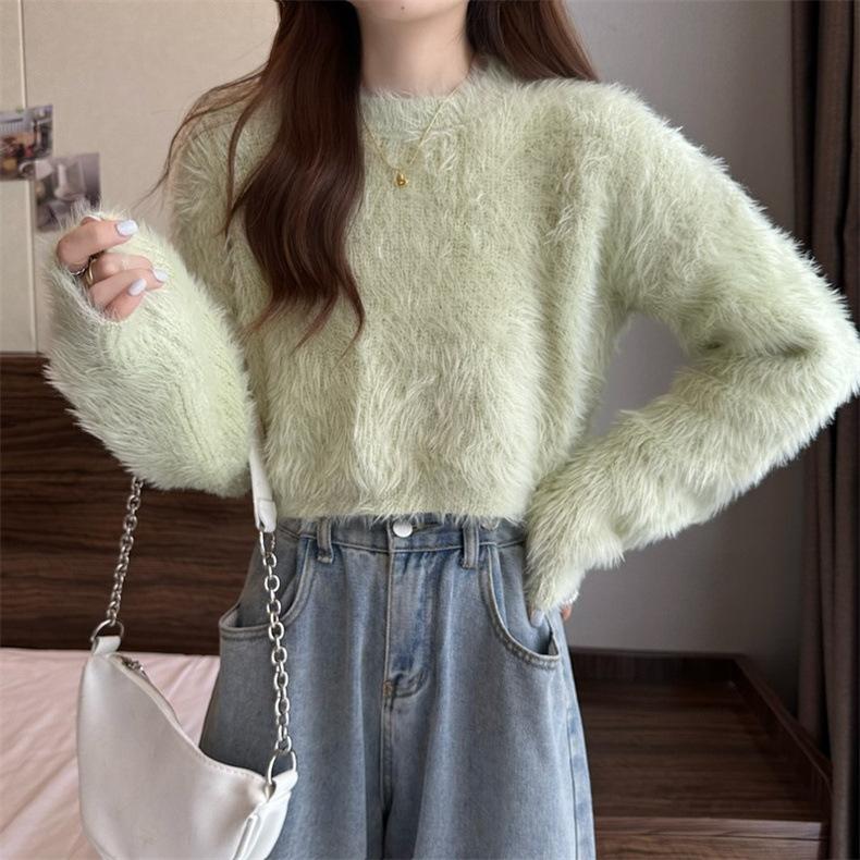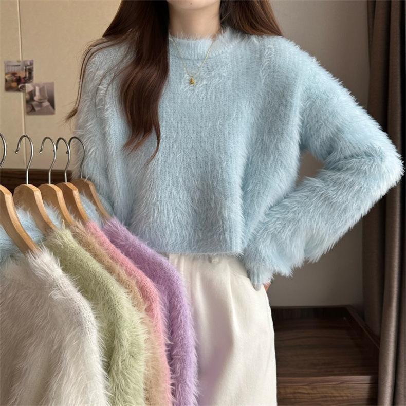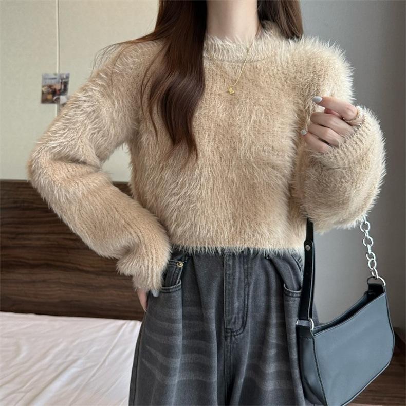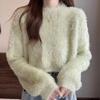 Suéter corto de terciopelo de visón sintético de color sólido, estilo coreano, elegante, para mujer, ropa exterior, otoño e invierno, nuevo
