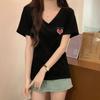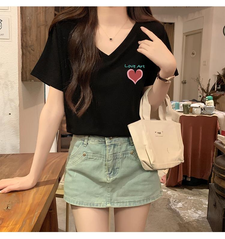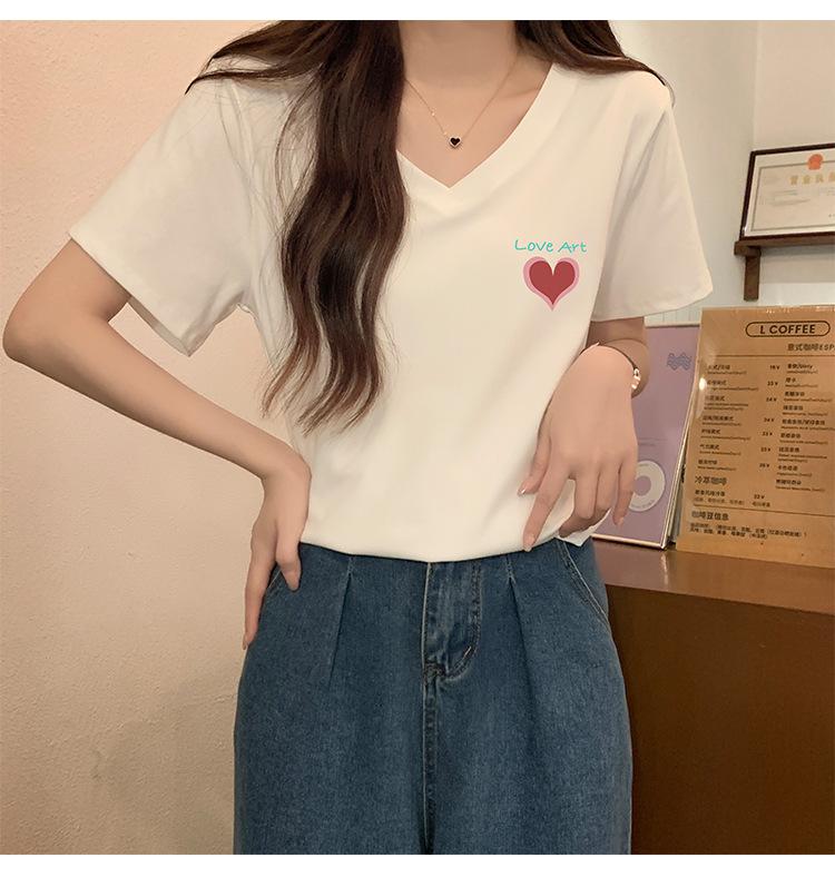 Playera Blanca de Verano para Mujer con Cuello en V Europeo, Manga Corta, Nuevo Estilo, Hombro Derecho Descubierto, Casual de Alta Gama, Holgada