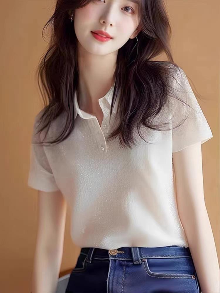 Polo elegante y bonito para mujer, estilo francés, con hombros descubiertos, camiseta de punto de manga corta de verano