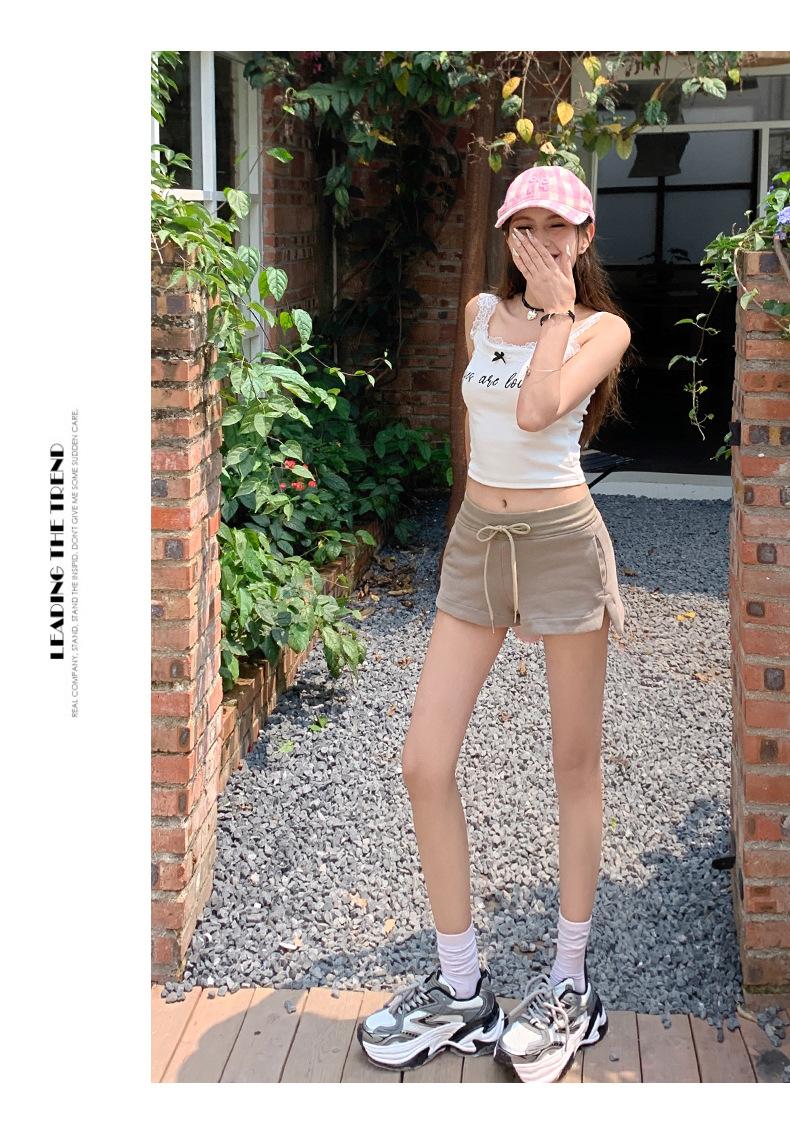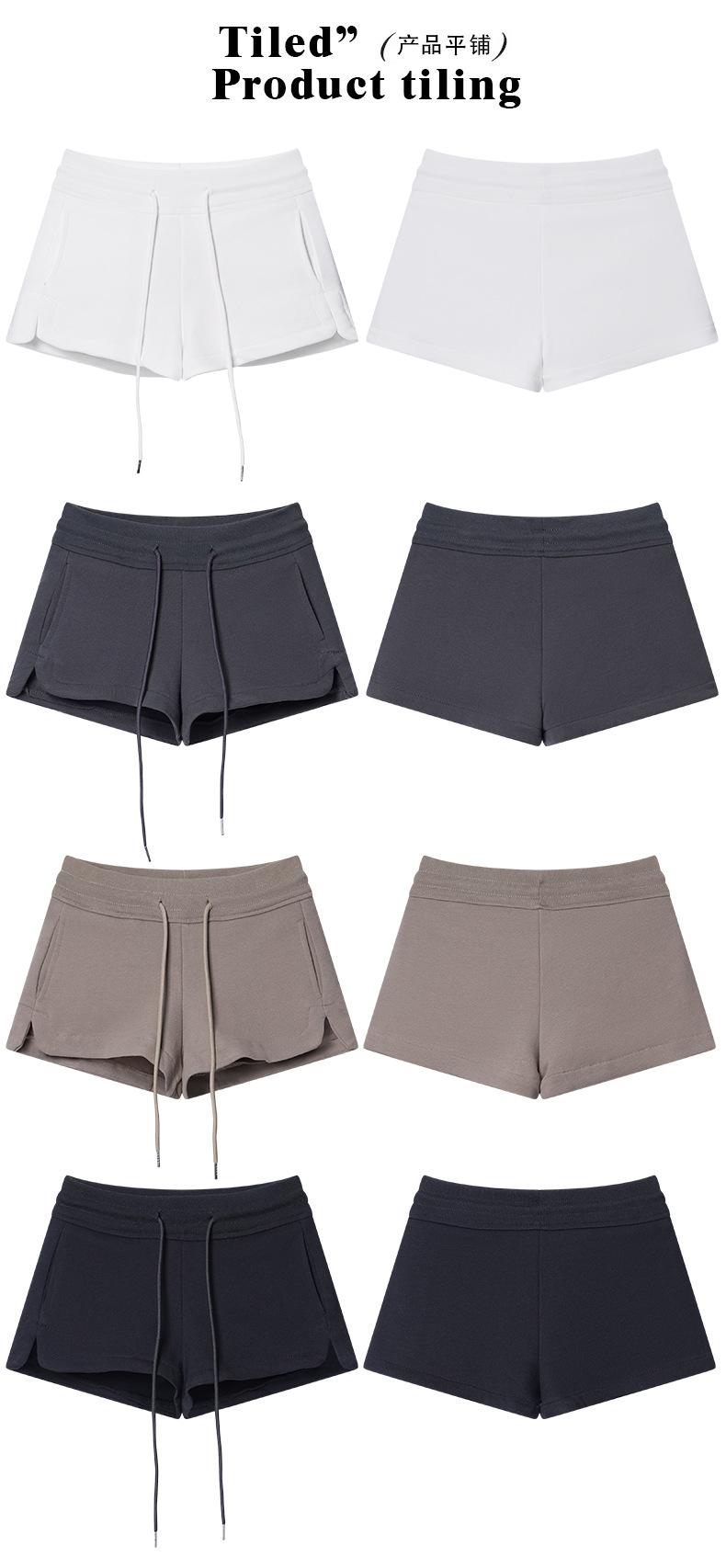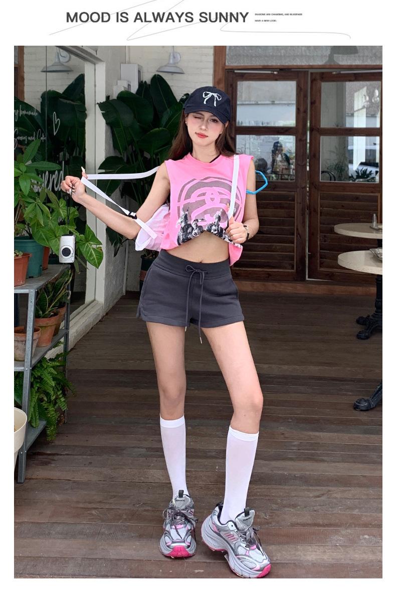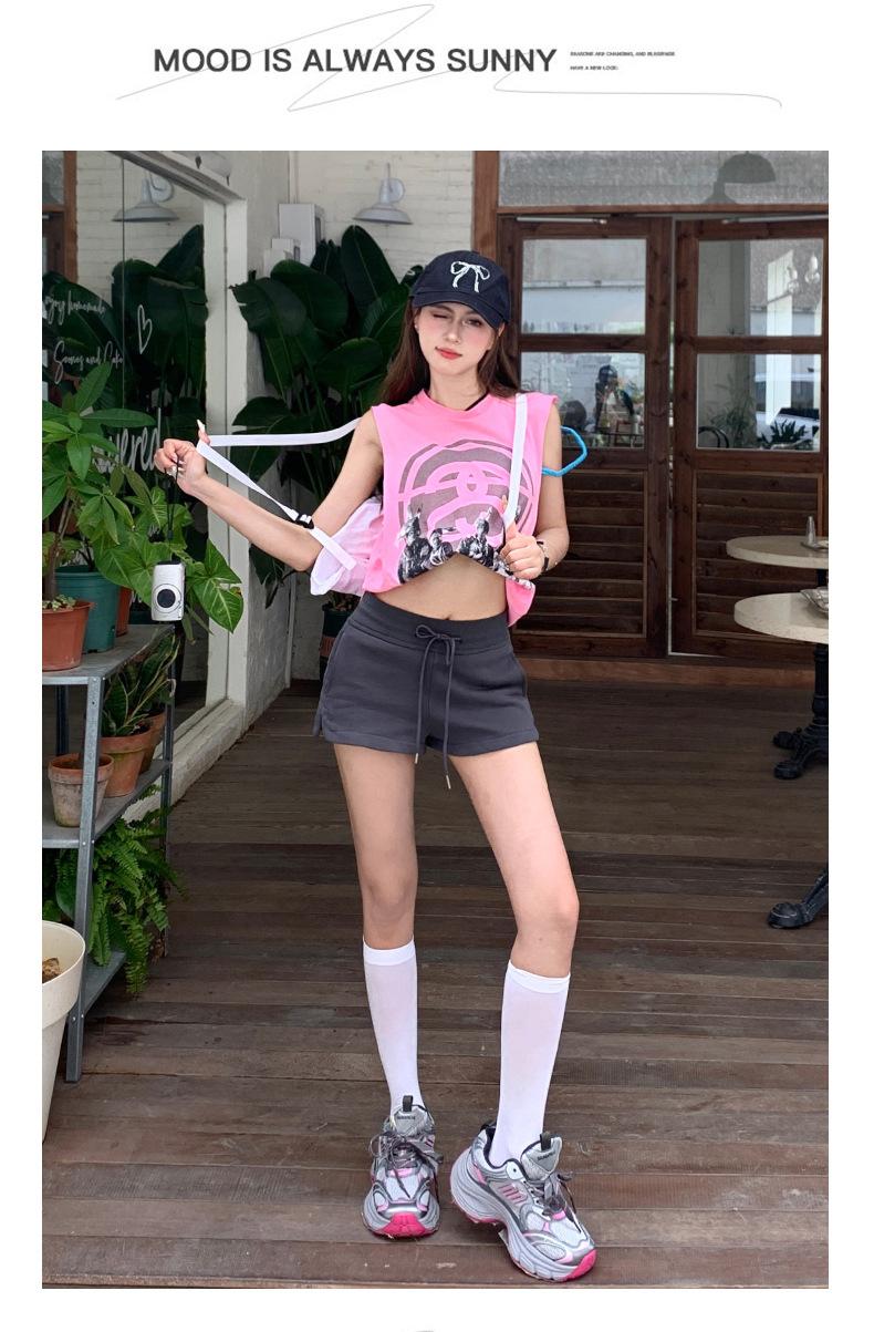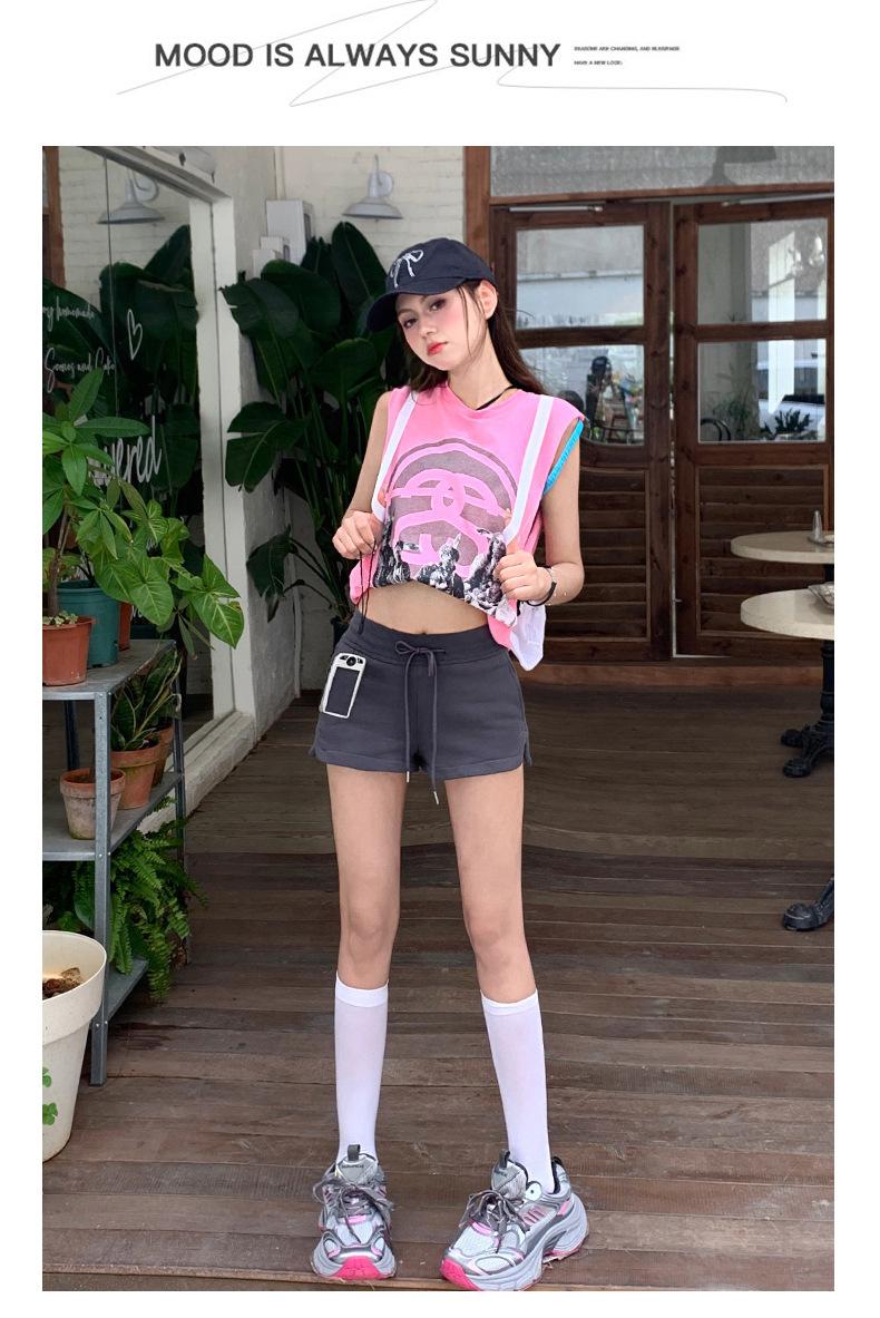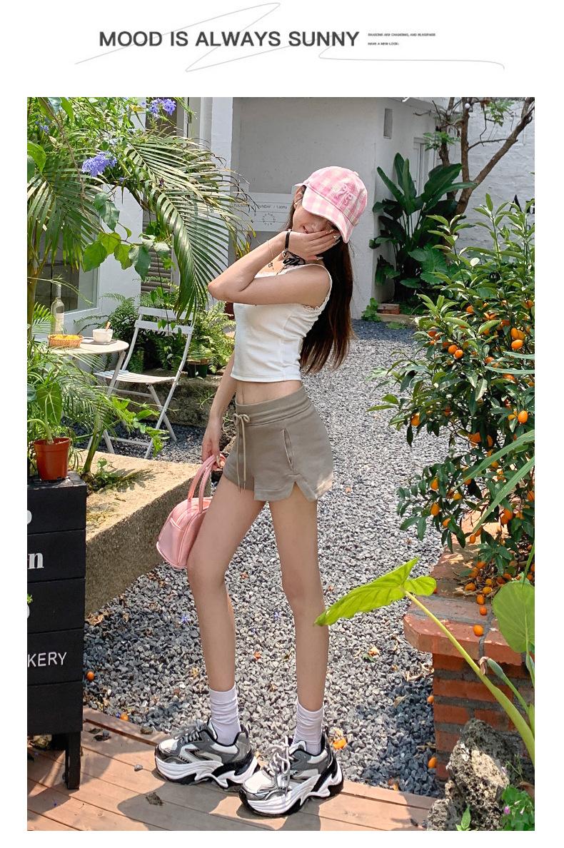 Pantalones cortos deportivos de cintura holgada con abertura lateral para mujer, estilo americano, ajustados, informales, adelgazantes y combinables.