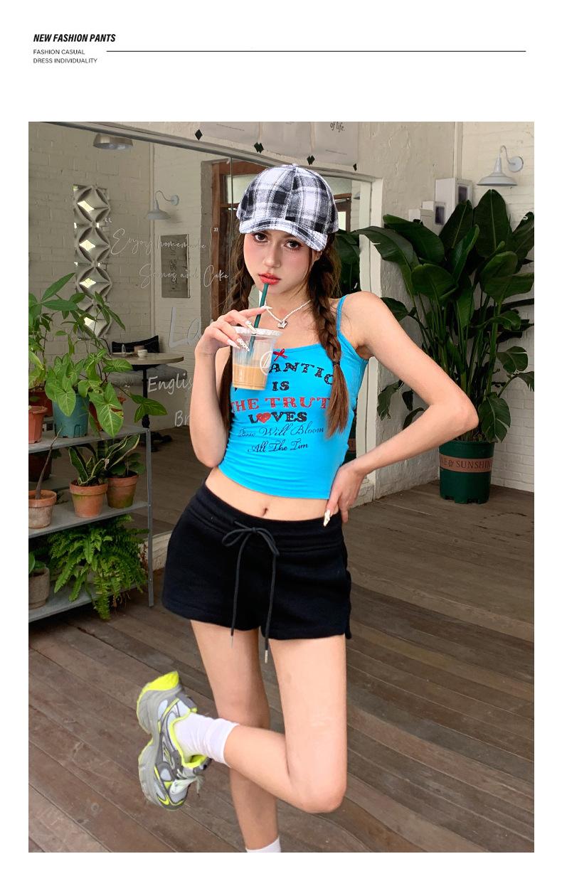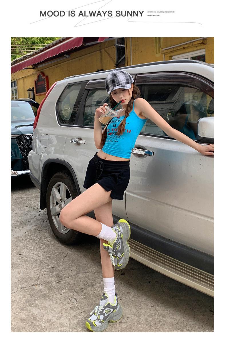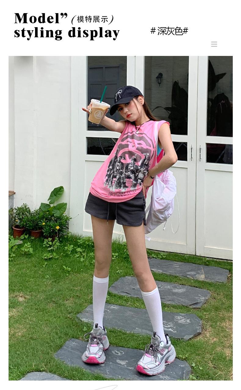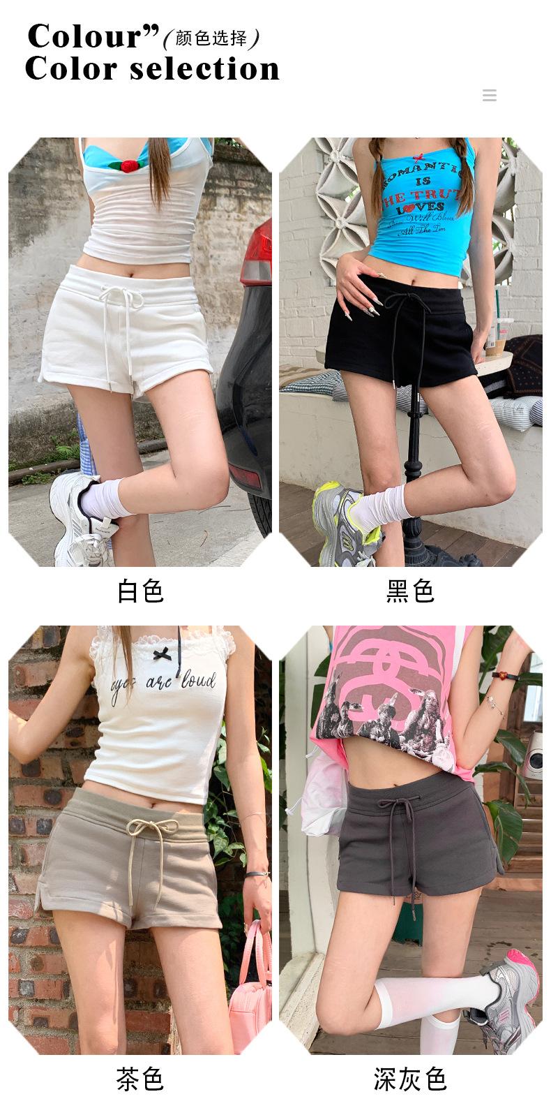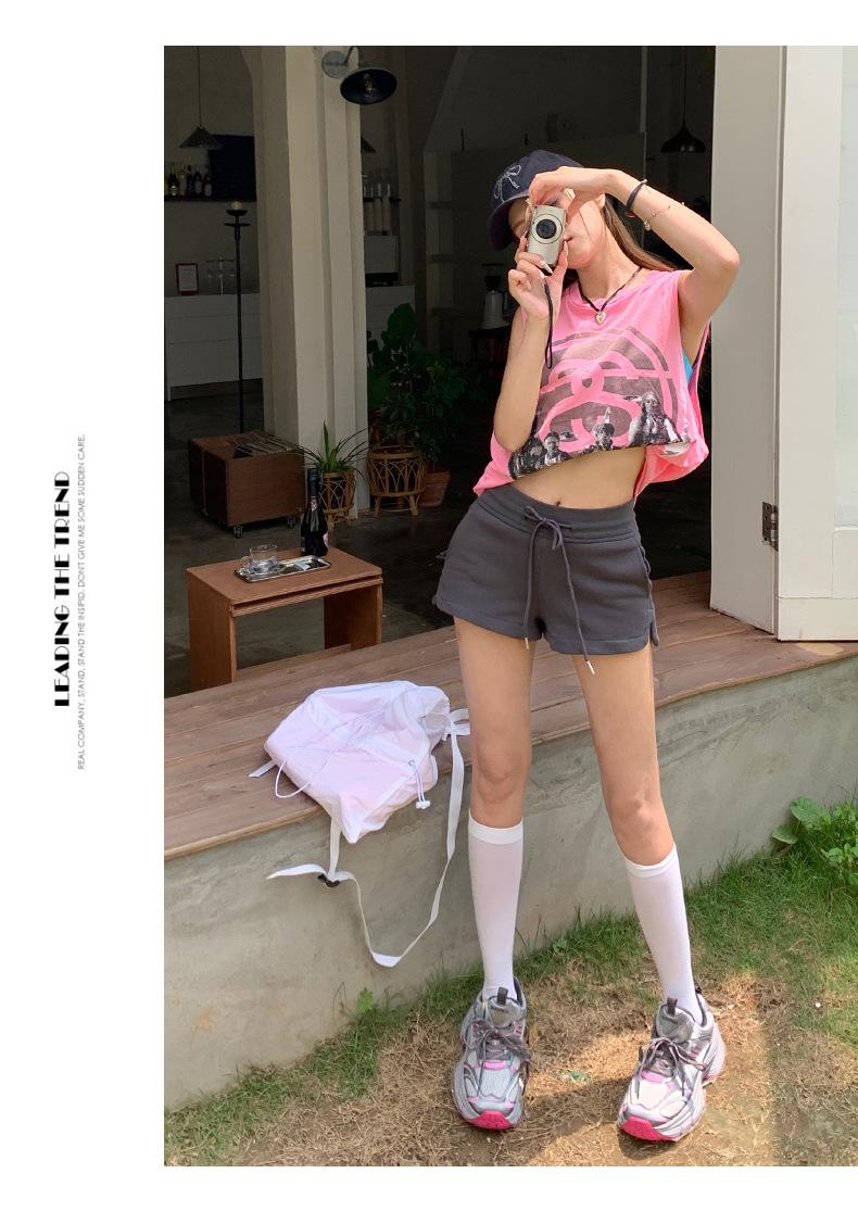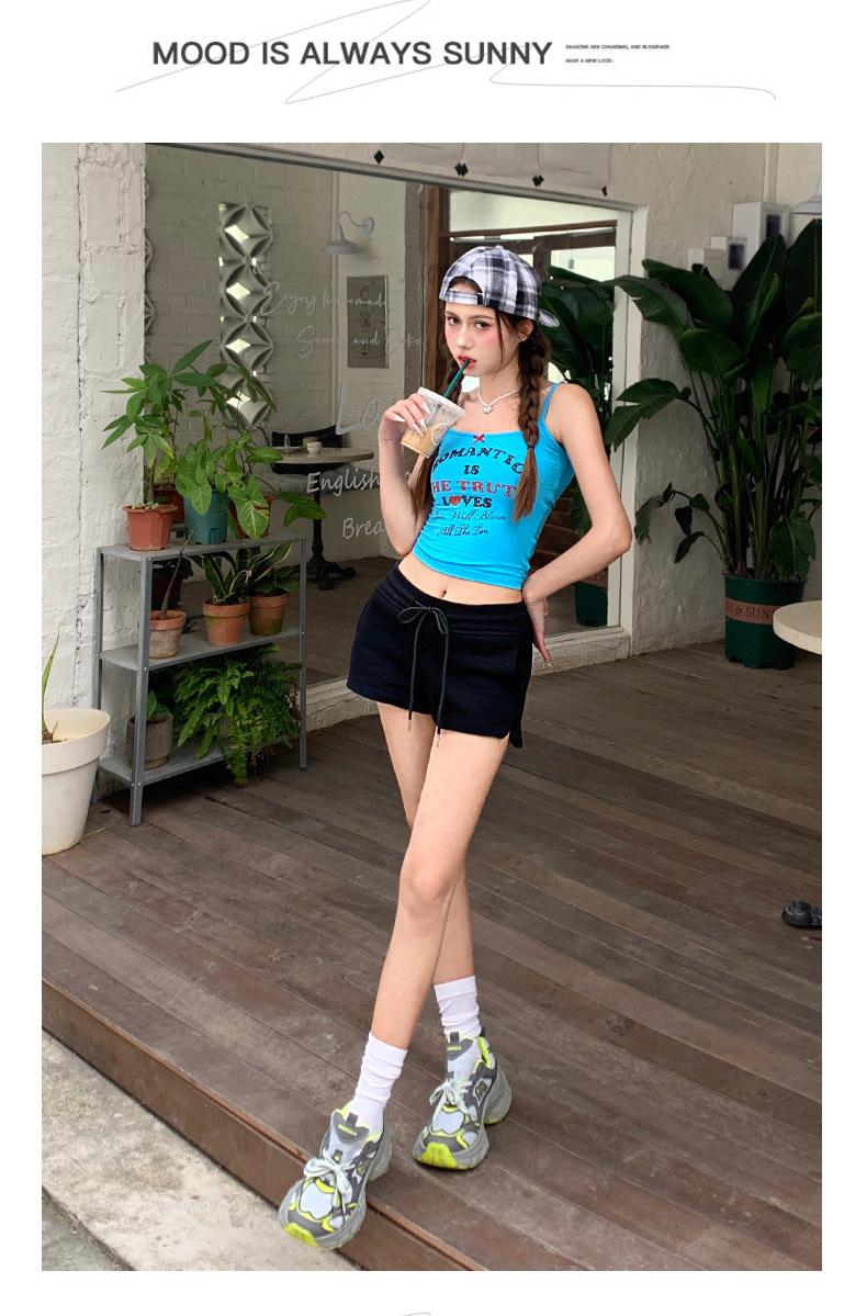 Pantalones cortos deportivos de cintura holgada con abertura lateral para mujer, estilo americano, ajustados, informales, adelgazantes y combinables.