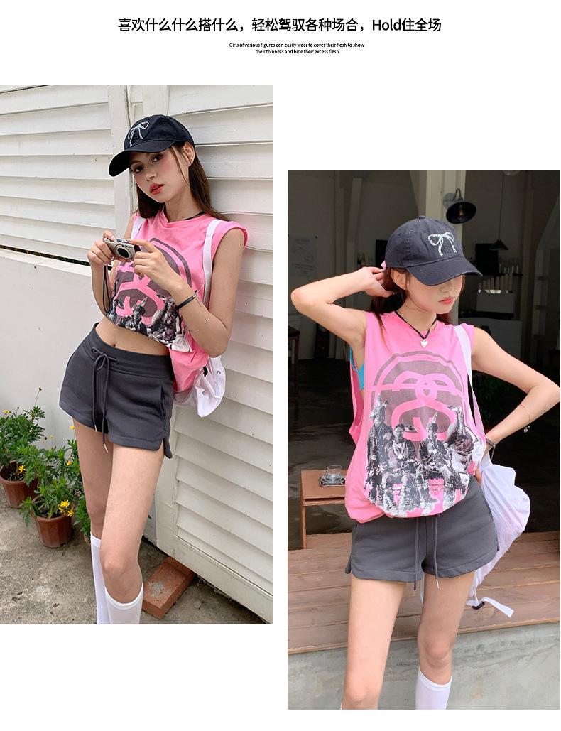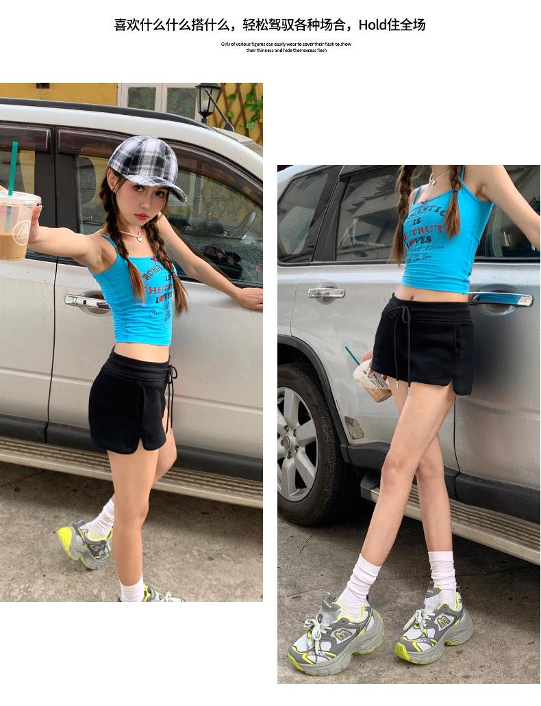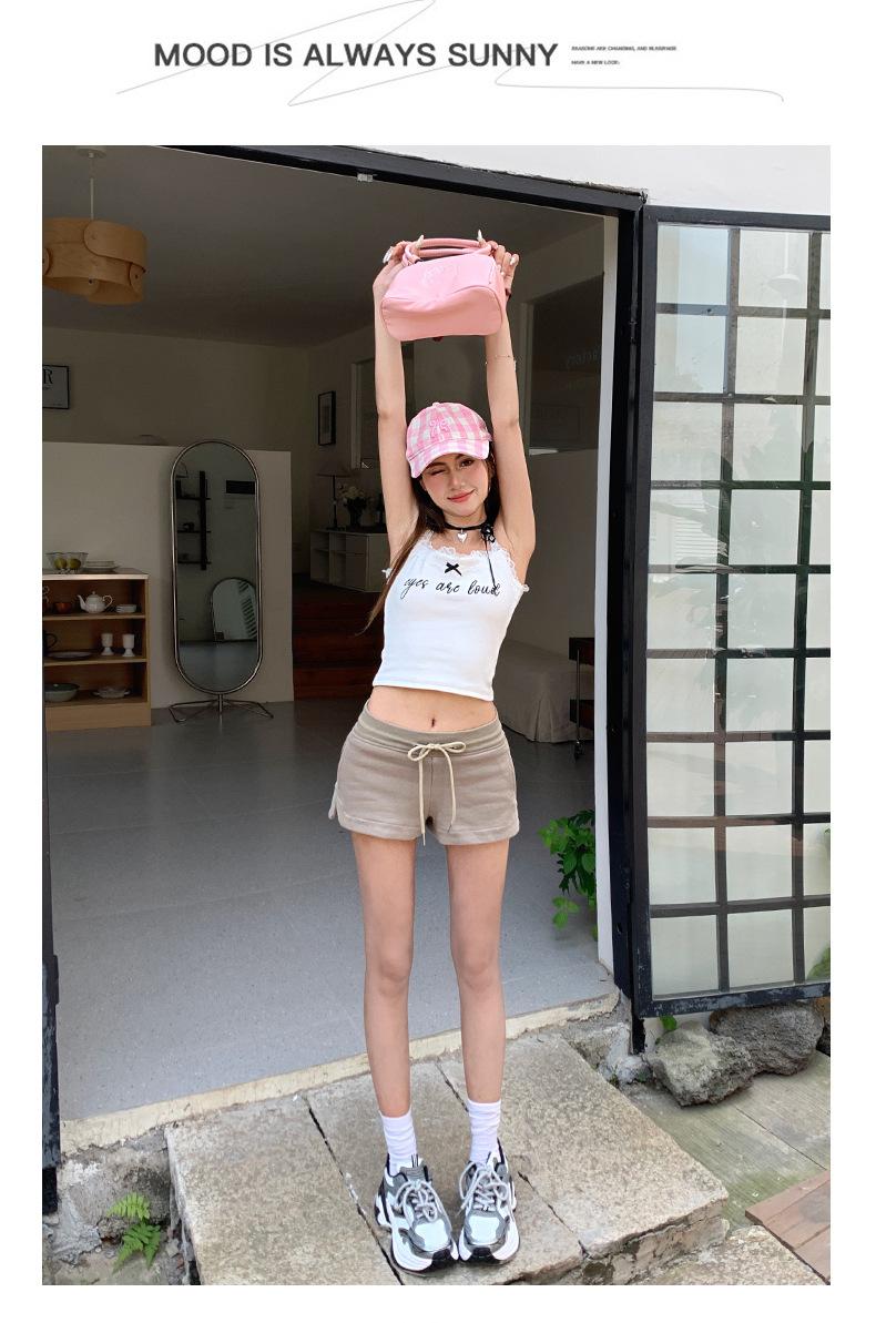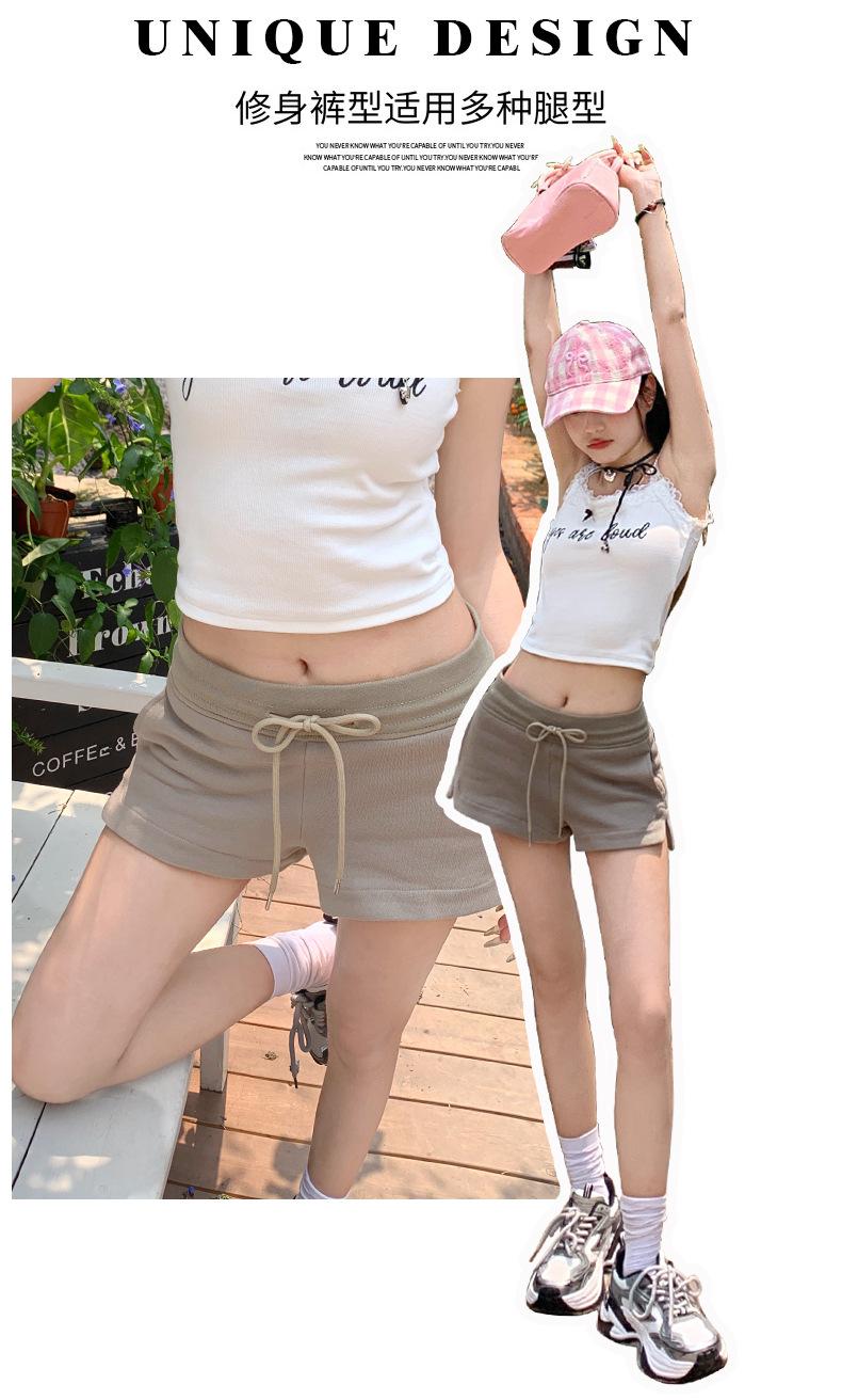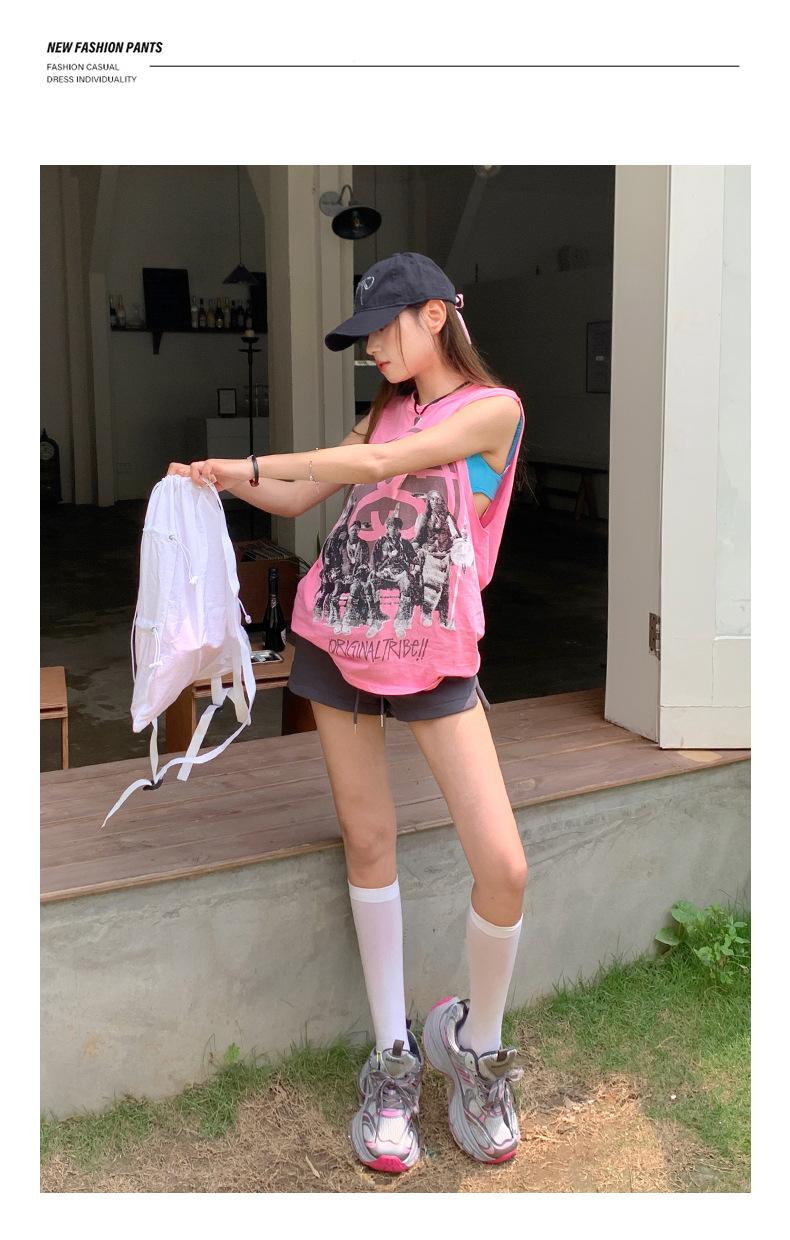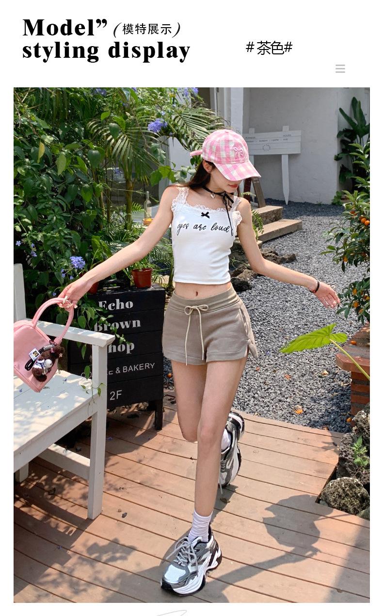 Pantalones cortos deportivos de cintura holgada con abertura lateral para mujer, estilo americano, ajustados, informales, adelgazantes y combinables.