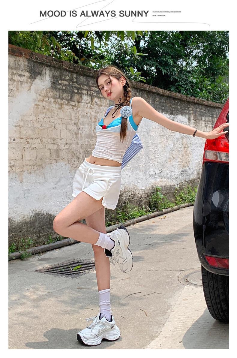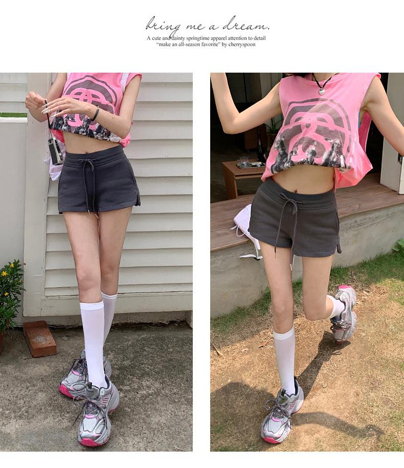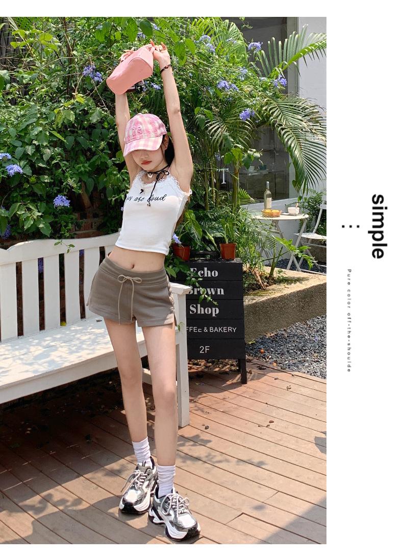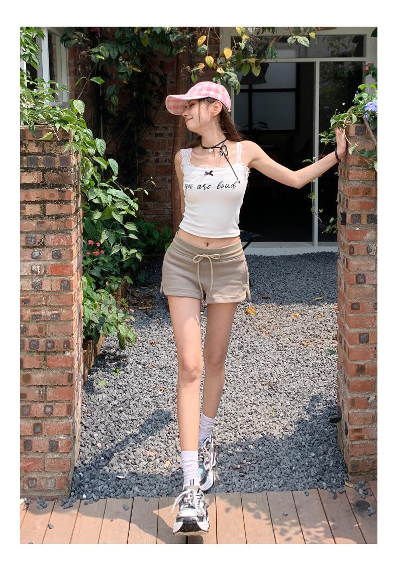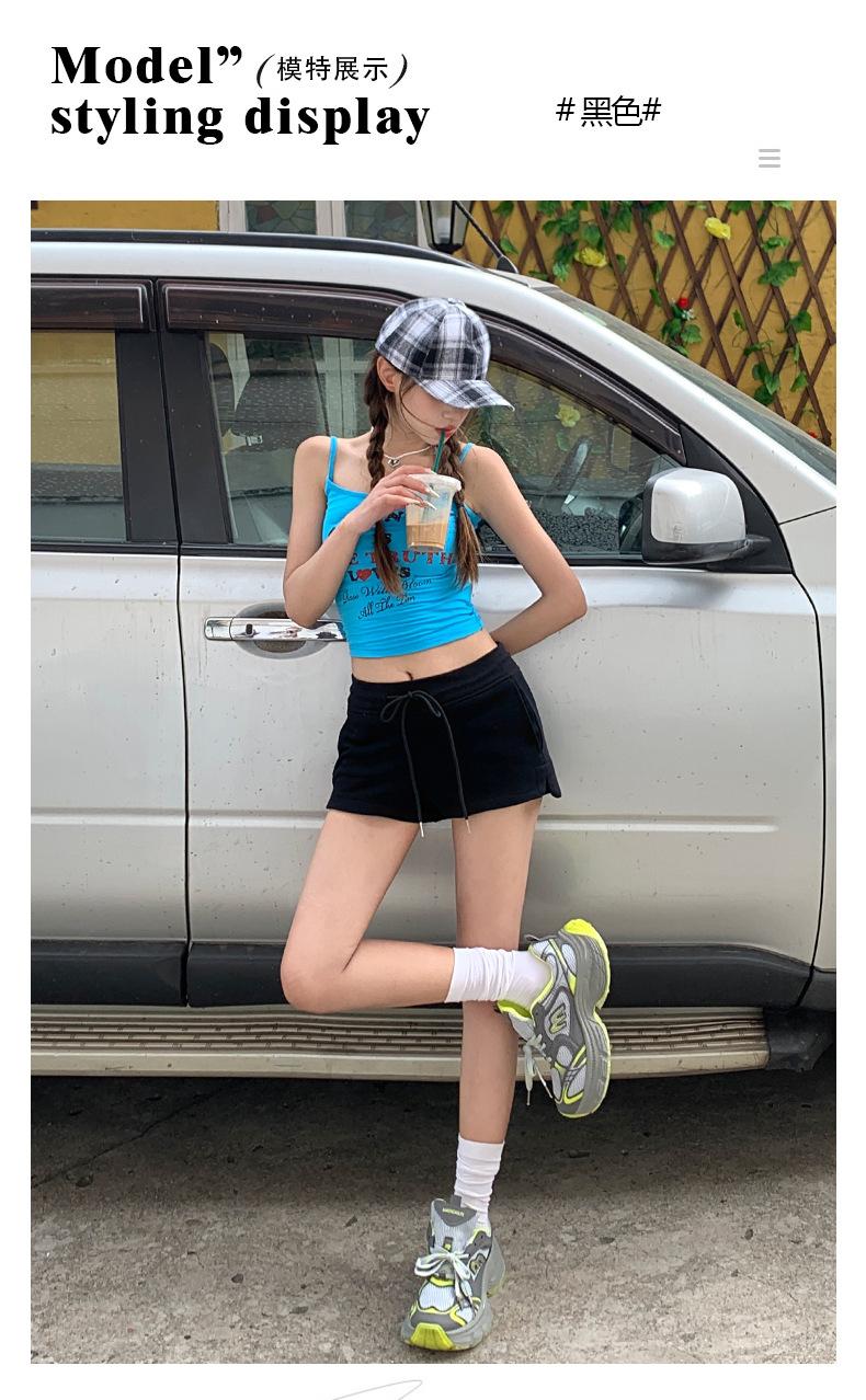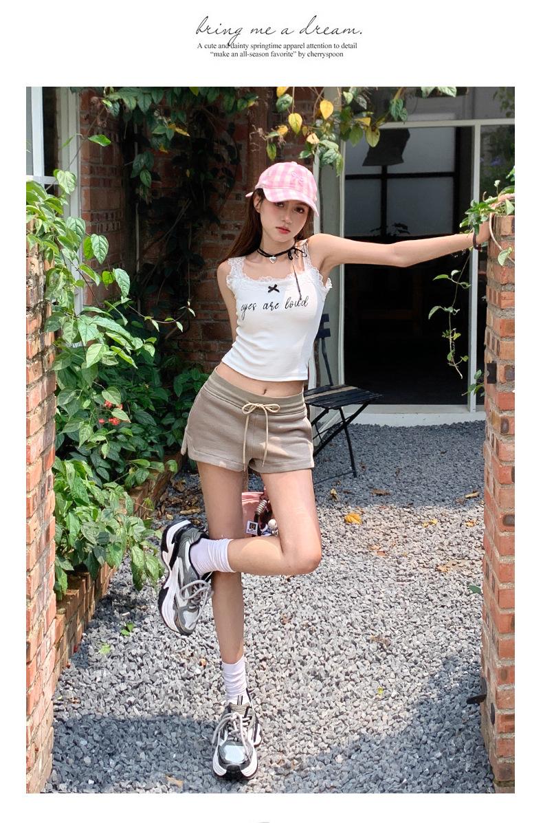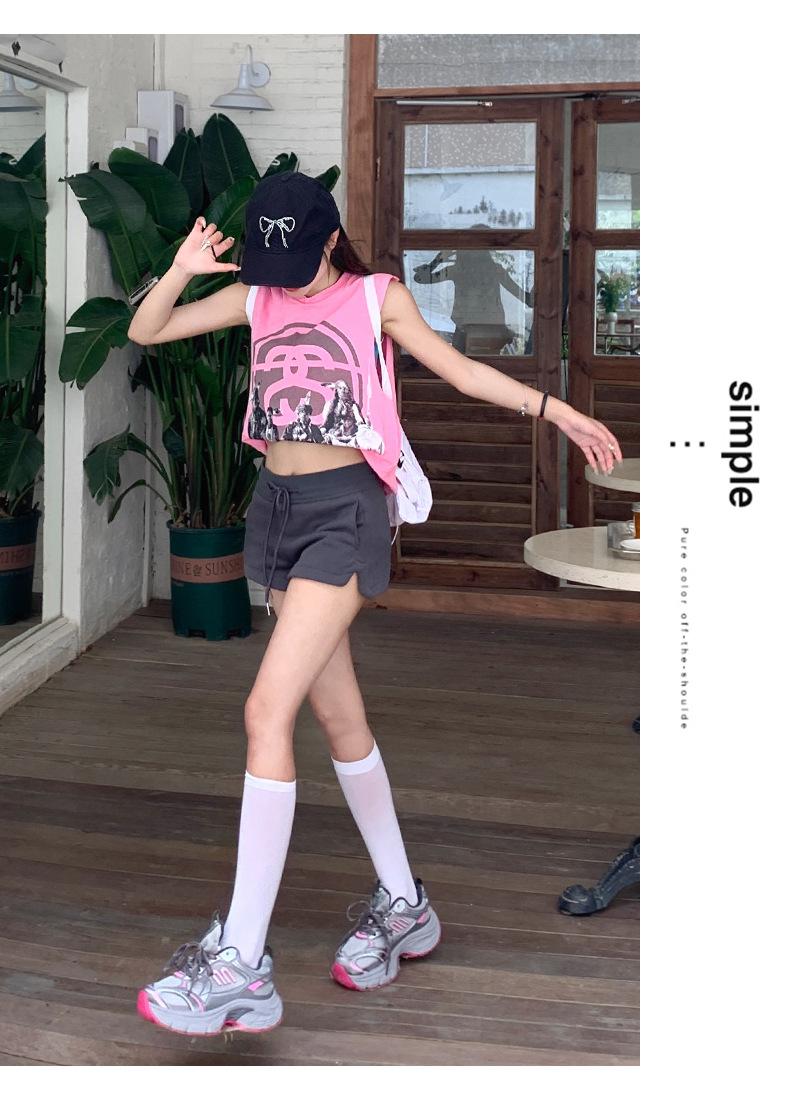 Pantalones cortos deportivos de cintura holgada con abertura lateral para mujer, estilo americano, ajustados, informales, adelgazantes y combinables.