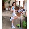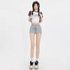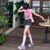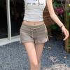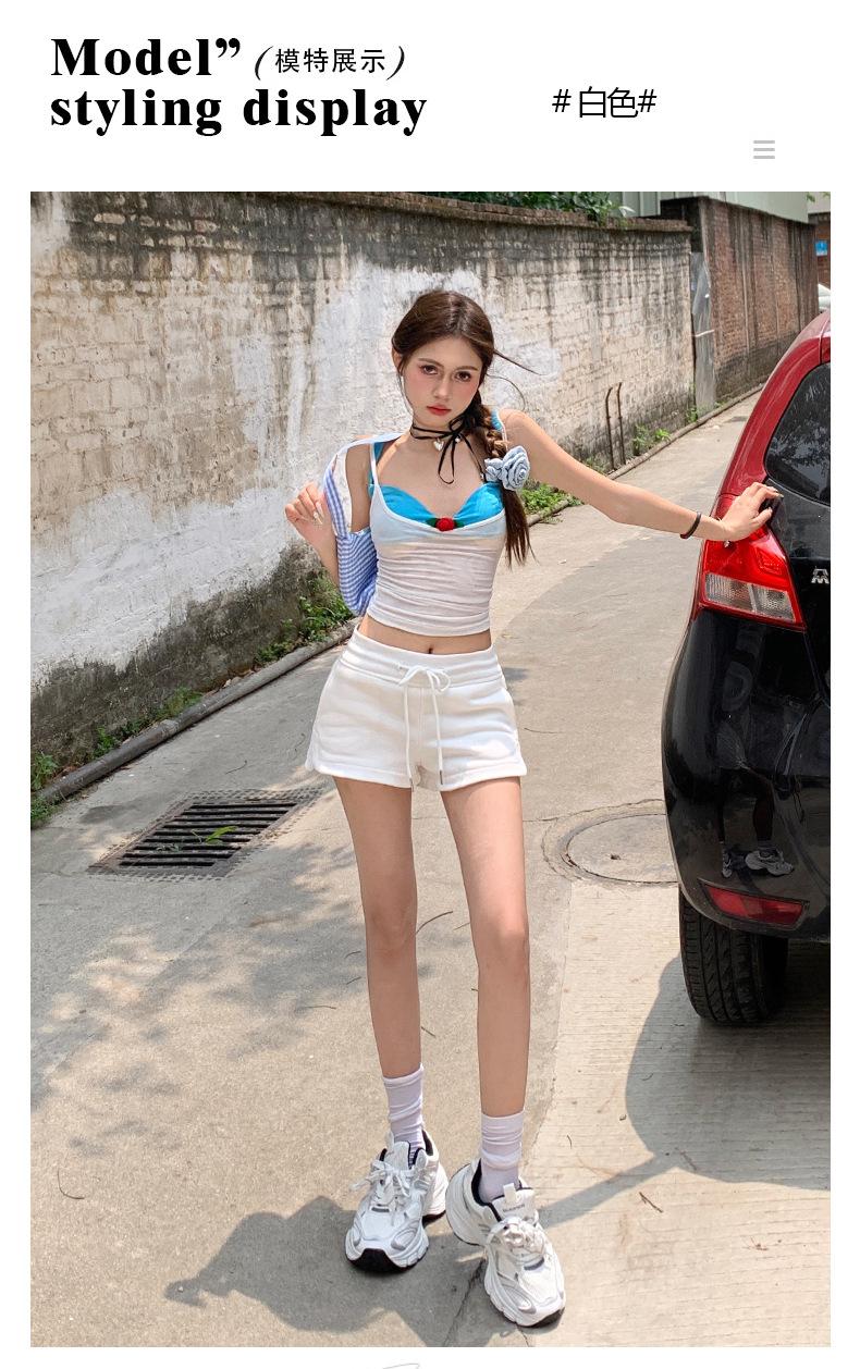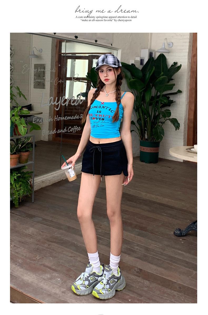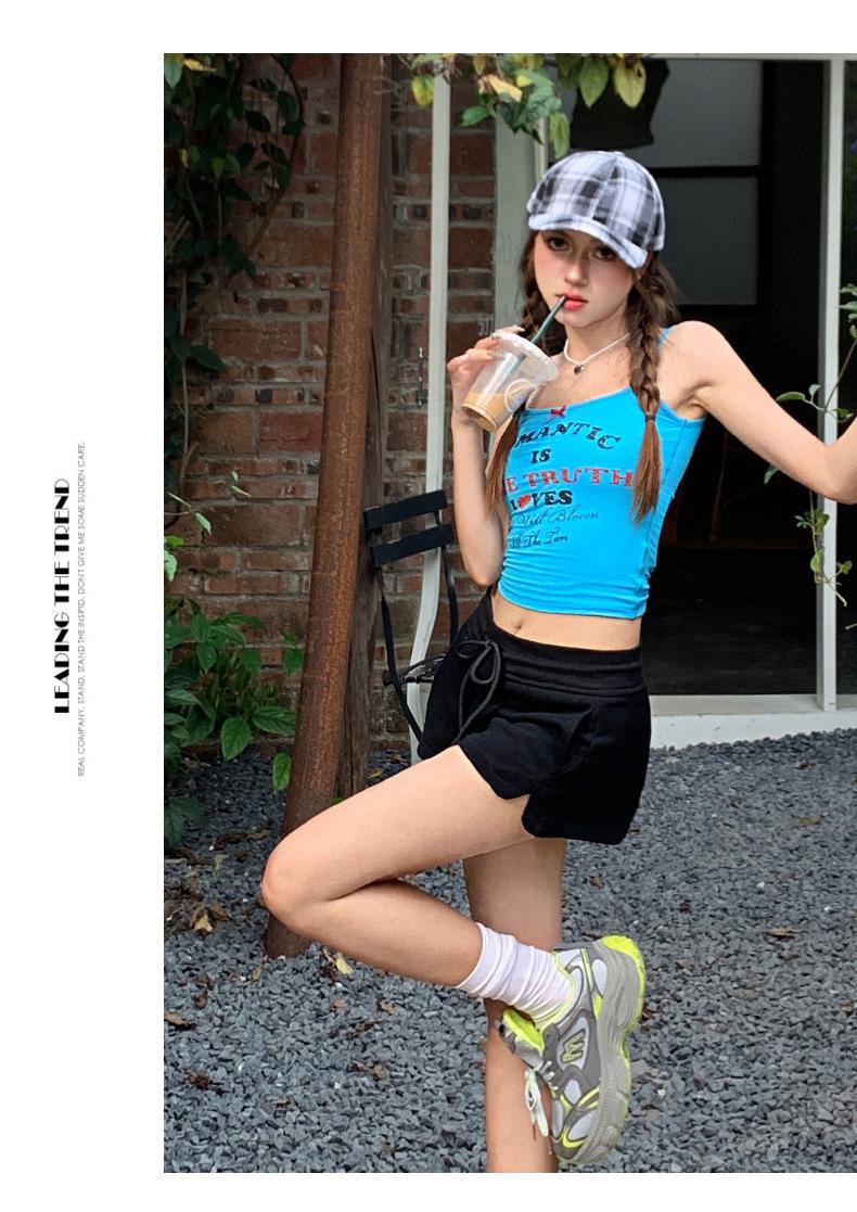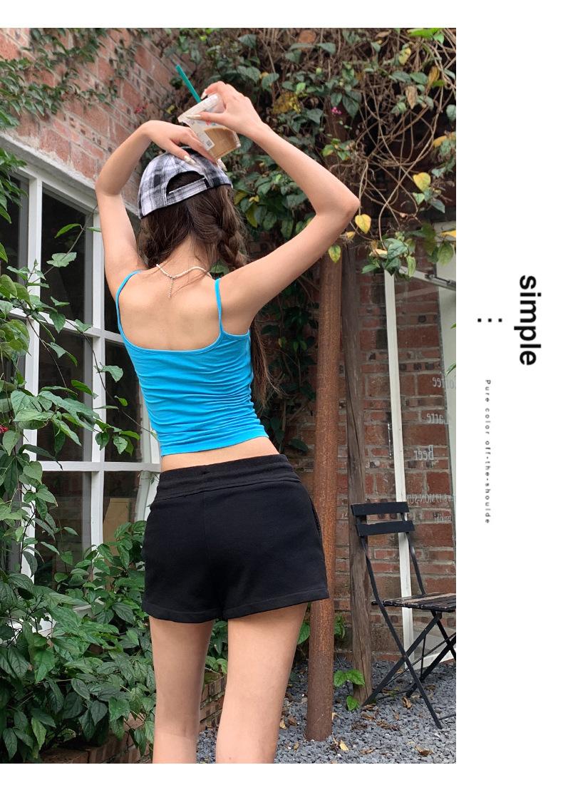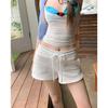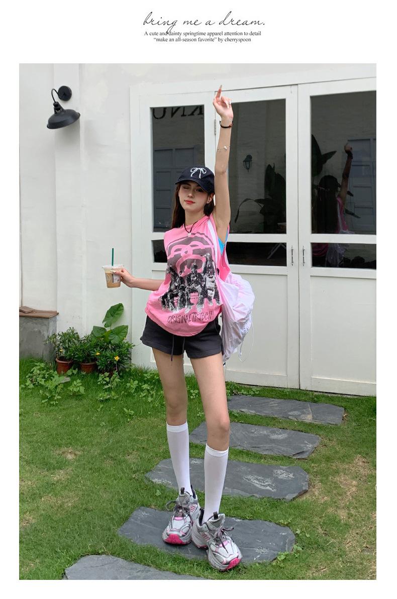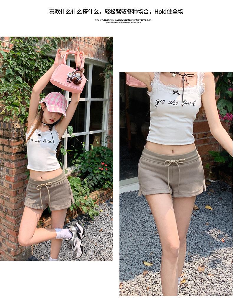 Pantalones cortos deportivos de cintura holgada con abertura lateral para mujer, estilo americano, ajustados, informales, adelgazantes y combinables.