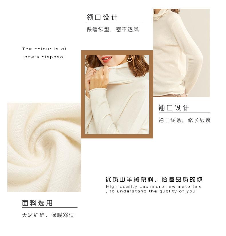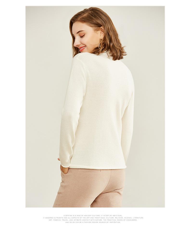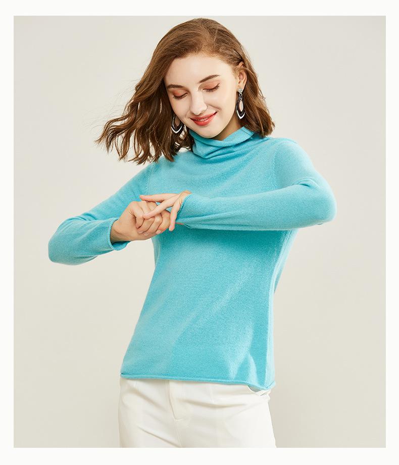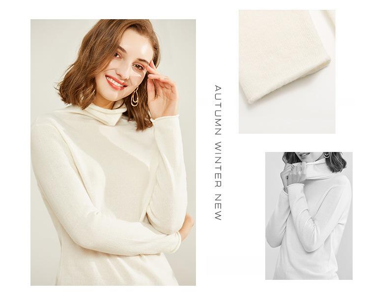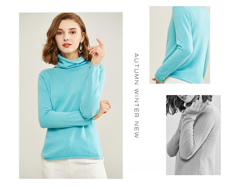 Invierno Nuevo Jersey de Cachemira con Cuello de Pila Suéter de Cachemira Color Puro Moderno Ajustado Tejido para Mujer Camiseta Básica