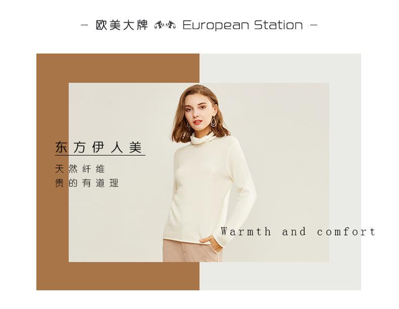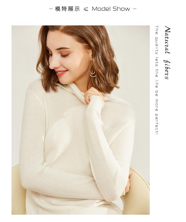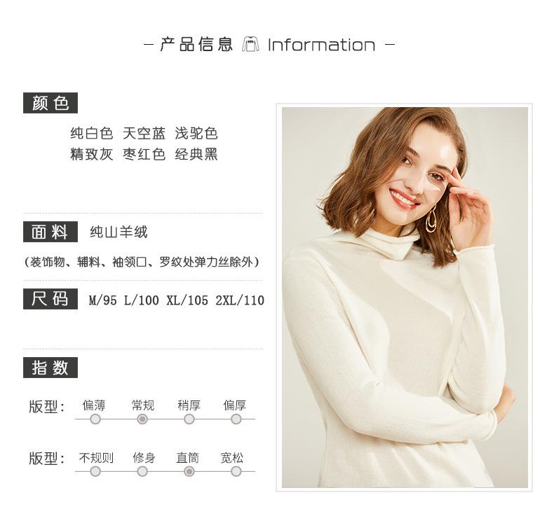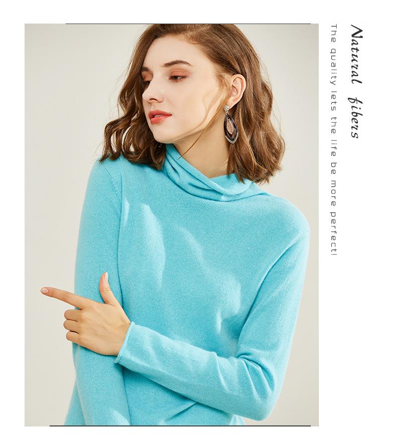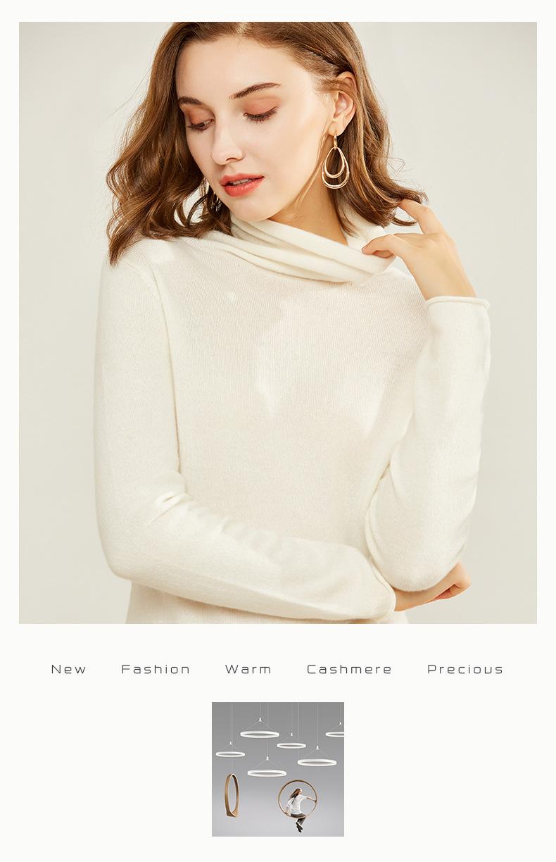 Invierno Nuevo Jersey de Cachemira con Cuello de Pila Suéter de Cachemira Color Puro Moderno Ajustado Tejido para Mujer Camiseta Básica