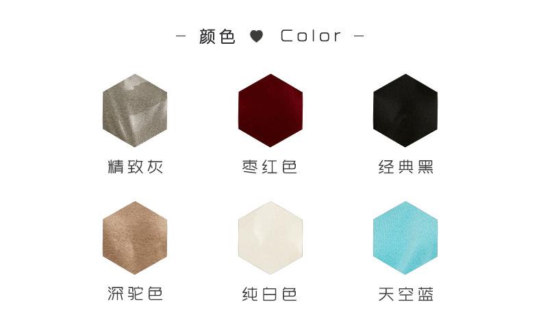Delicate gray, Purplish red, Classic black, Dark camel, Pure White, Sky Blue