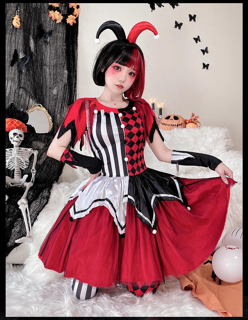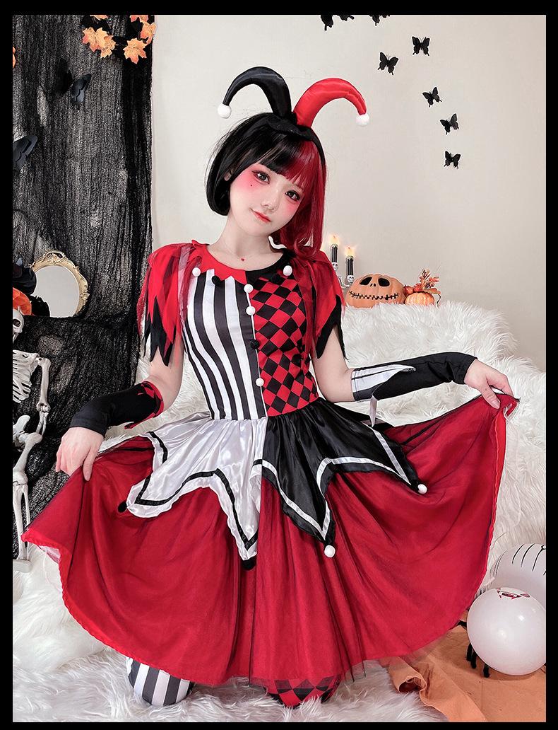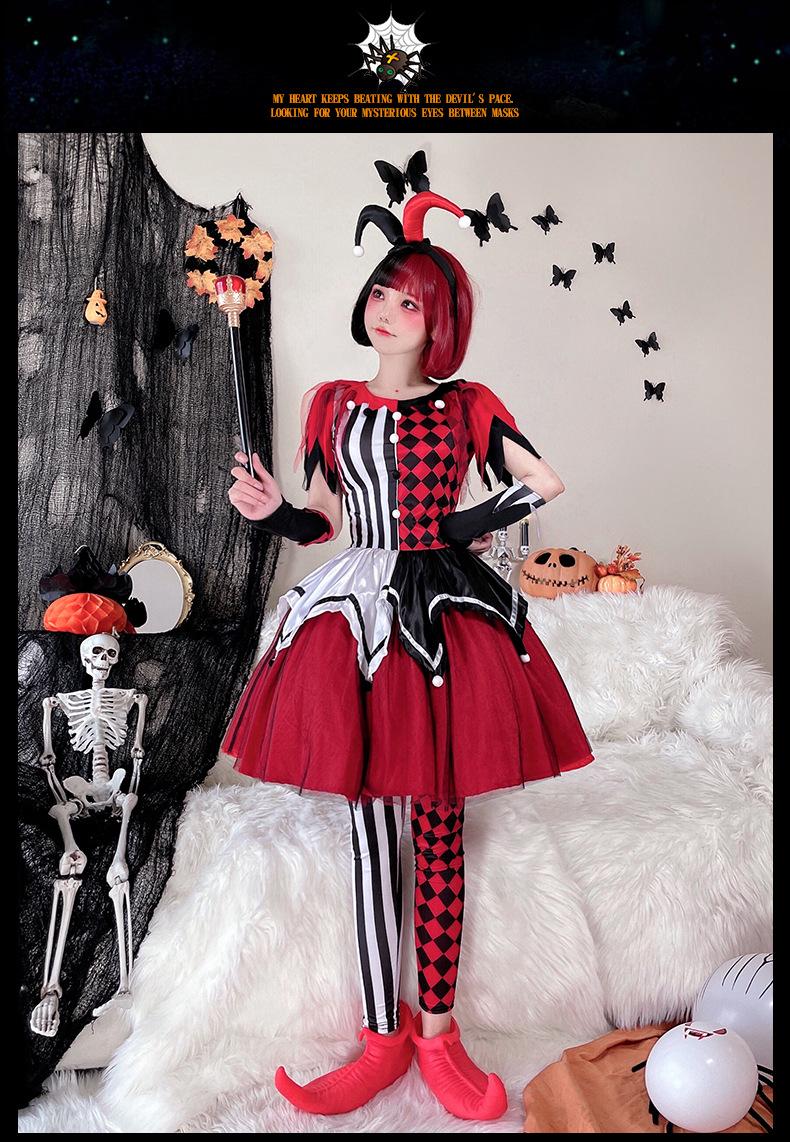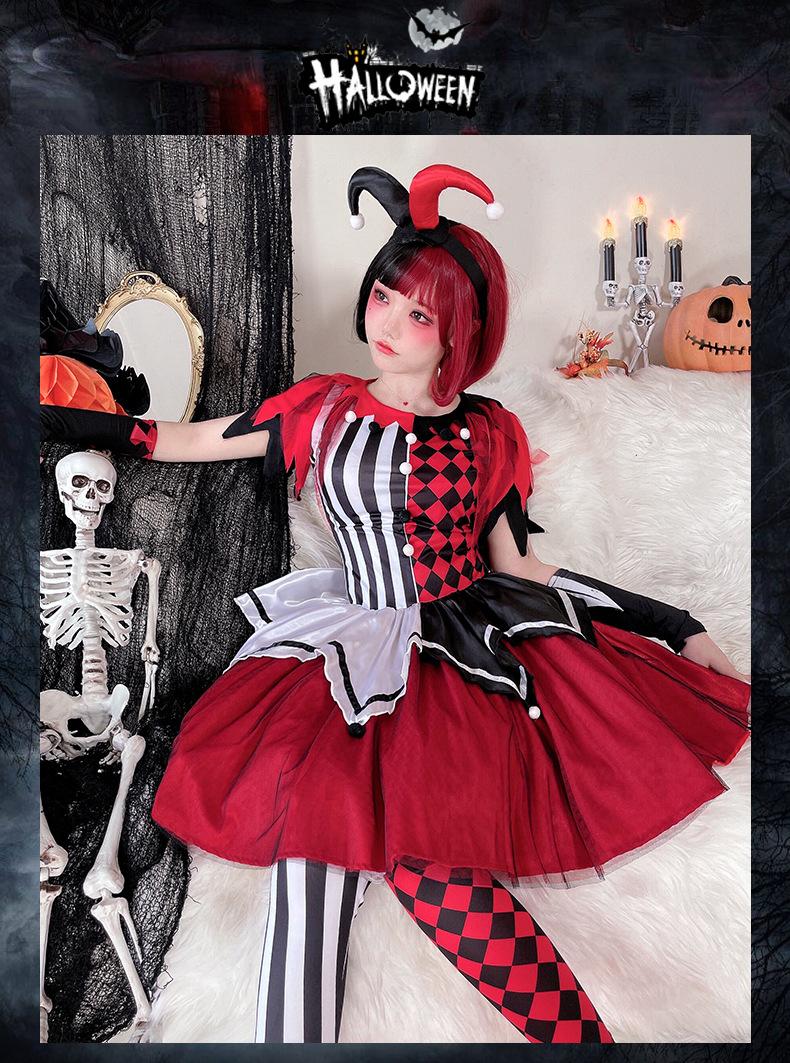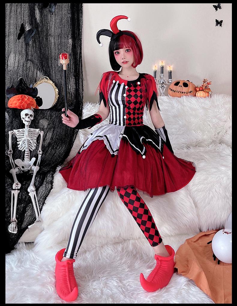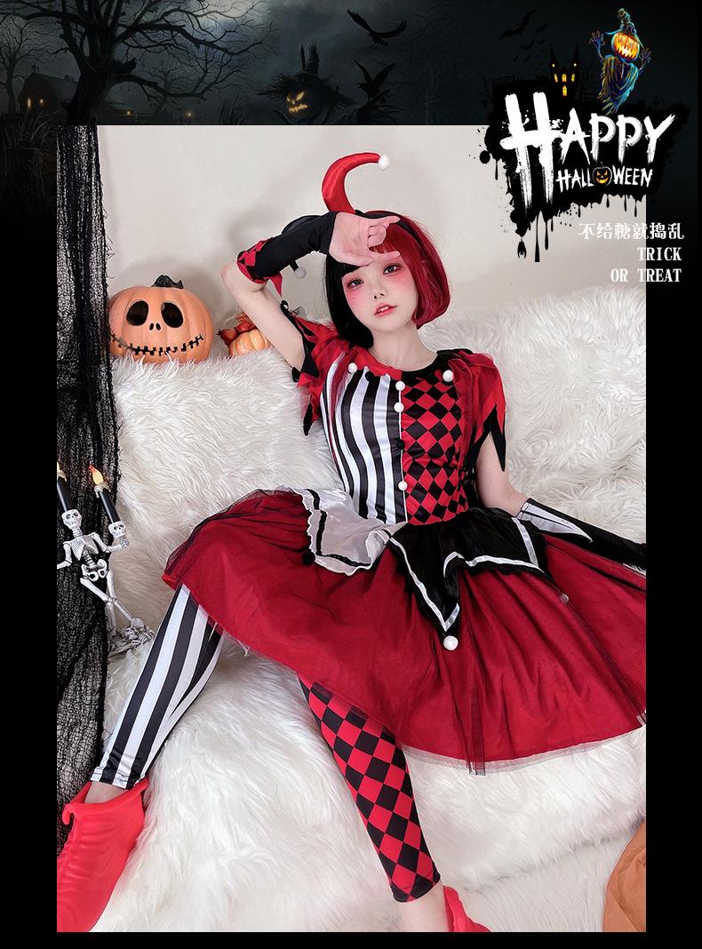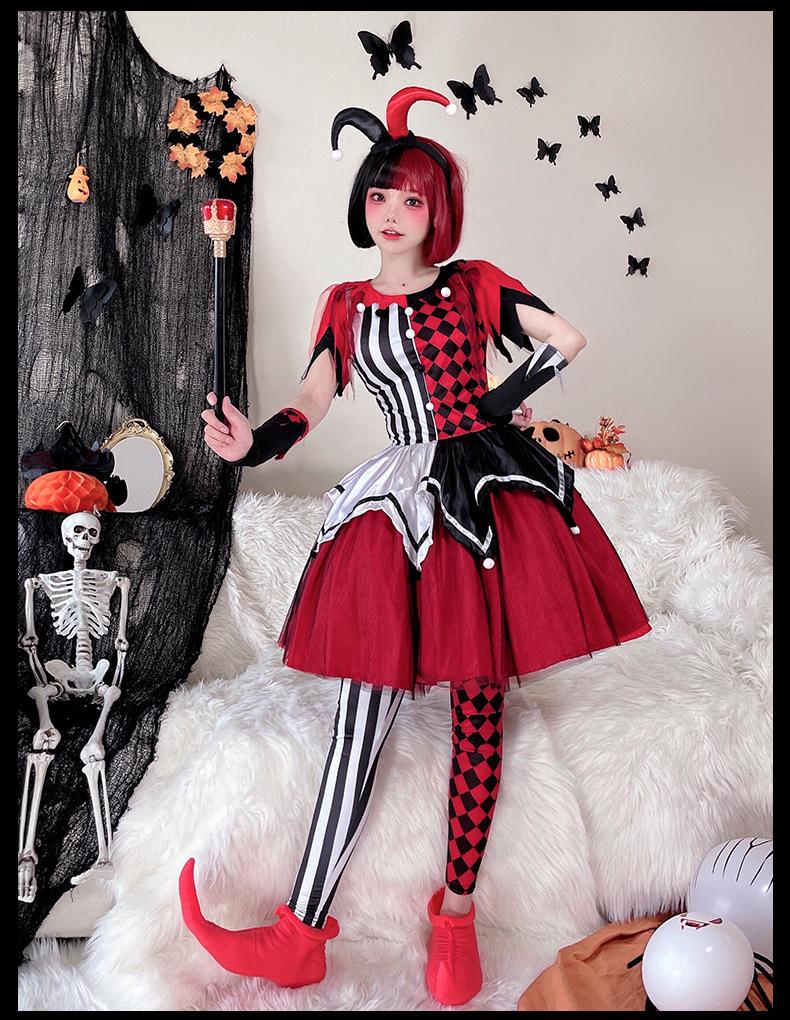 Disfraz de Halloween Circo Fantasma Payaso Disfraz de Cosplay Vestido para Adulto Traje de Carnaval para Escenario Traje de Actuación