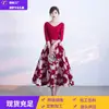 2026 Nuevo Vestido de Brindis Nupcial de Primavera Delgado Rojo Cuello en V Manga Media Encaje Banquete Fiesta Vestido de Noche