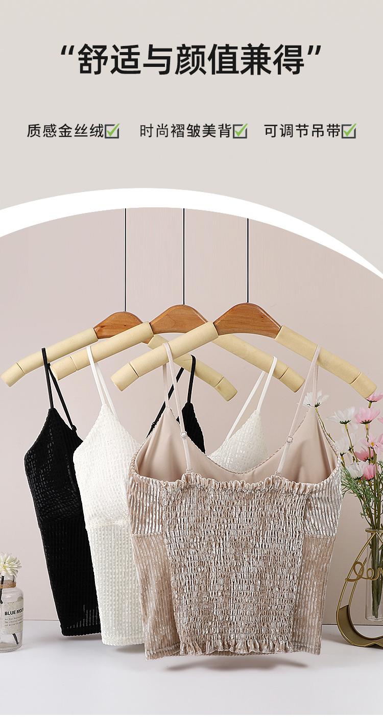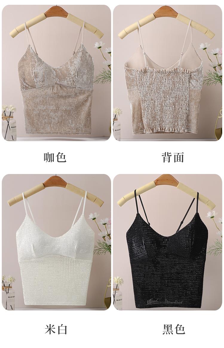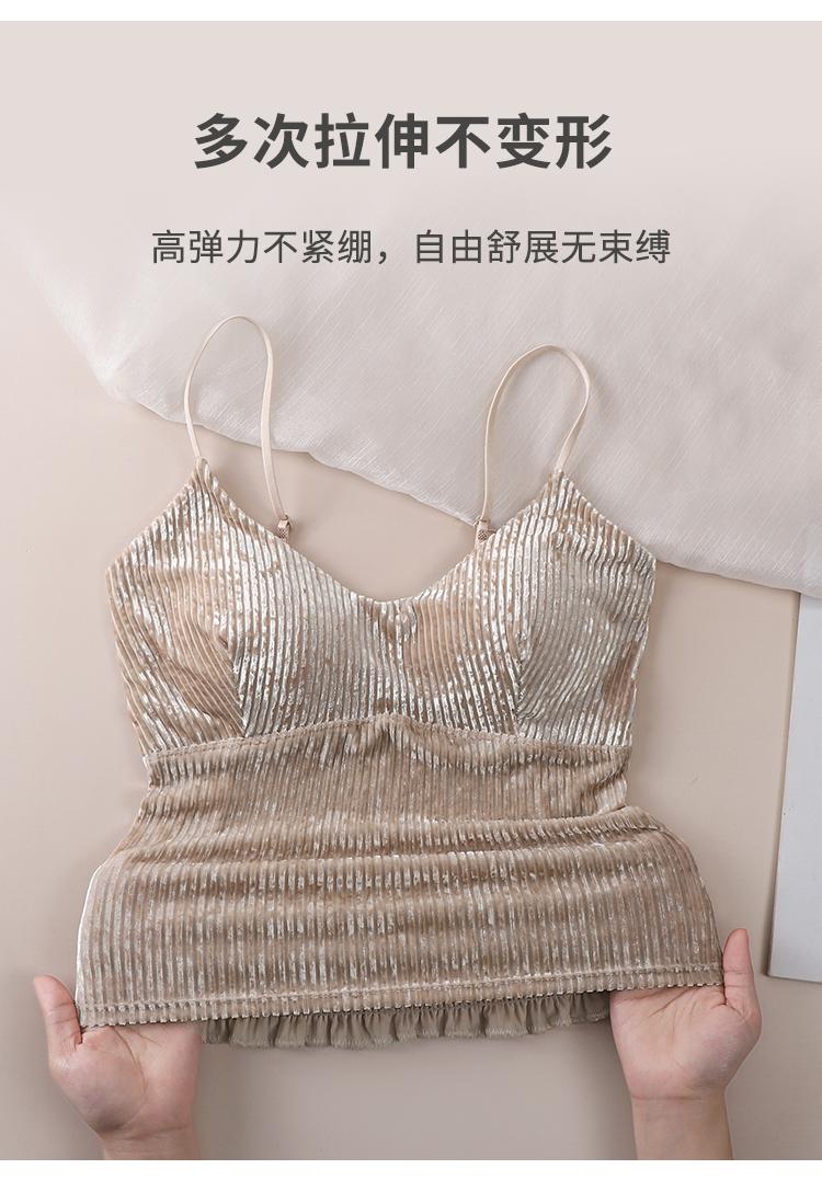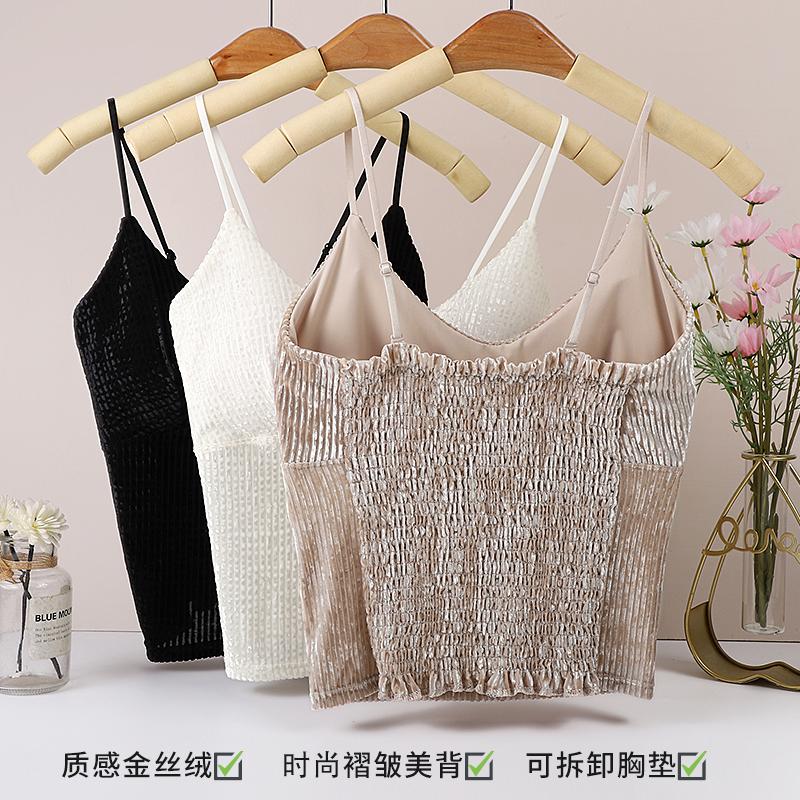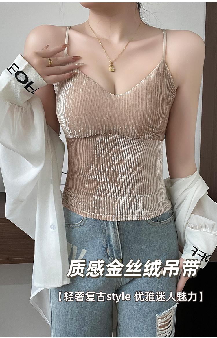 Camisola sexy de terciopelo blanco dorado con escote en V, ropa interior para mujer, top con almohadilla para el pecho y espalda descubierta, 2023