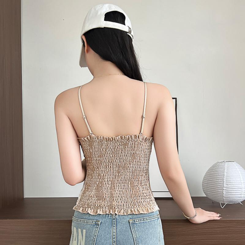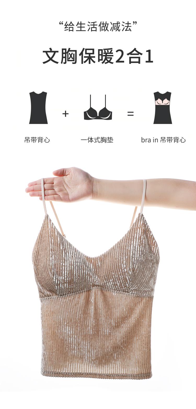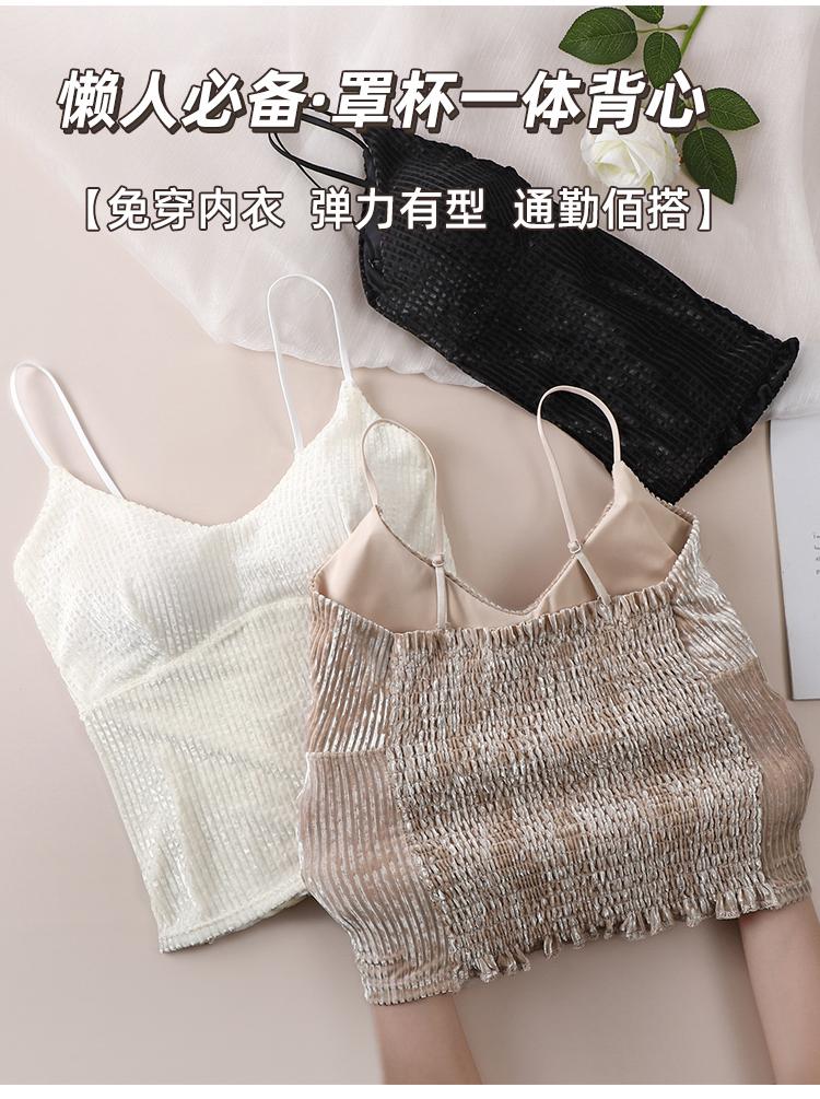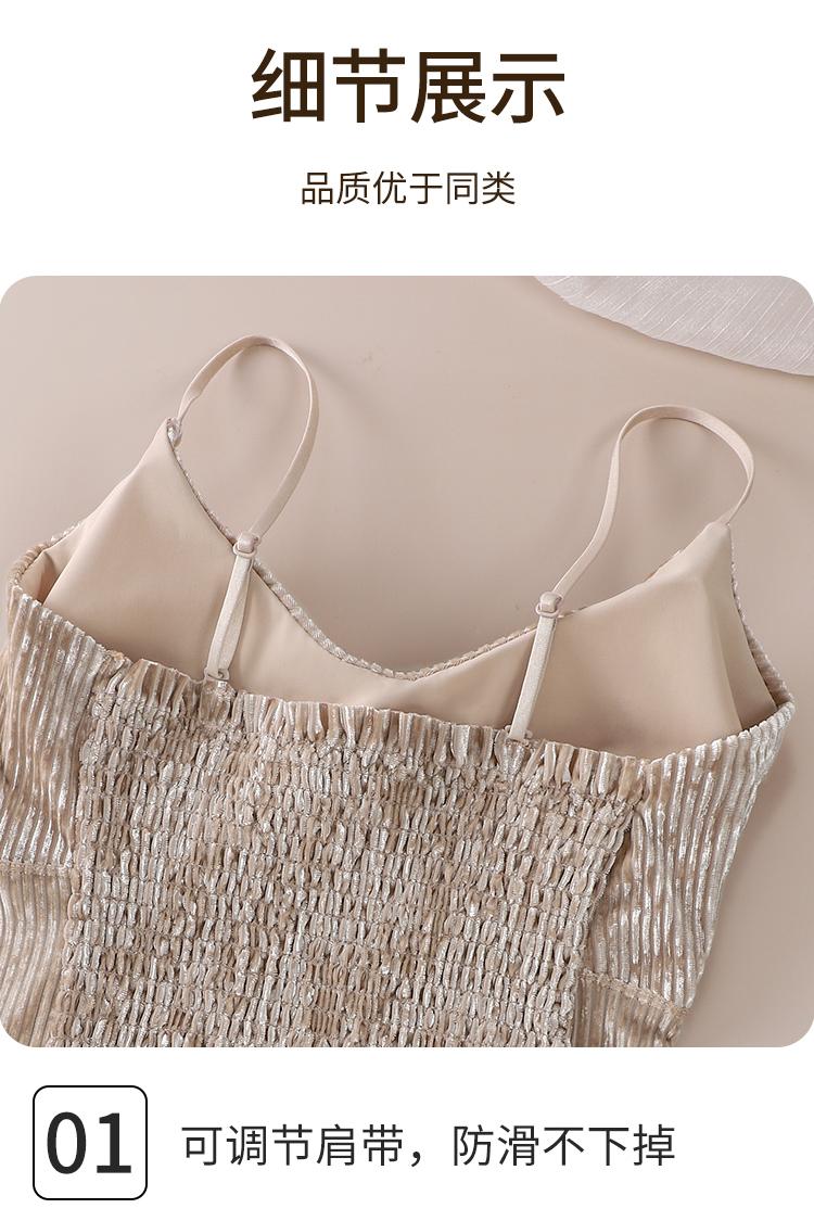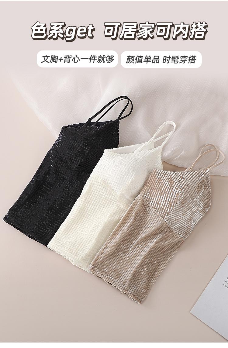 Camisola sexy de terciopelo blanco dorado con escote en V, ropa interior para mujer, top con almohadilla para el pecho y espalda descubierta, 2023