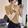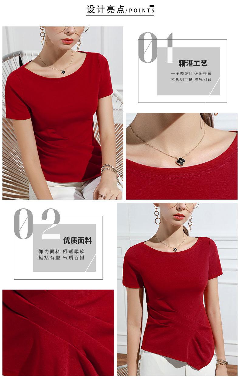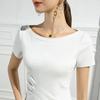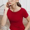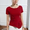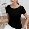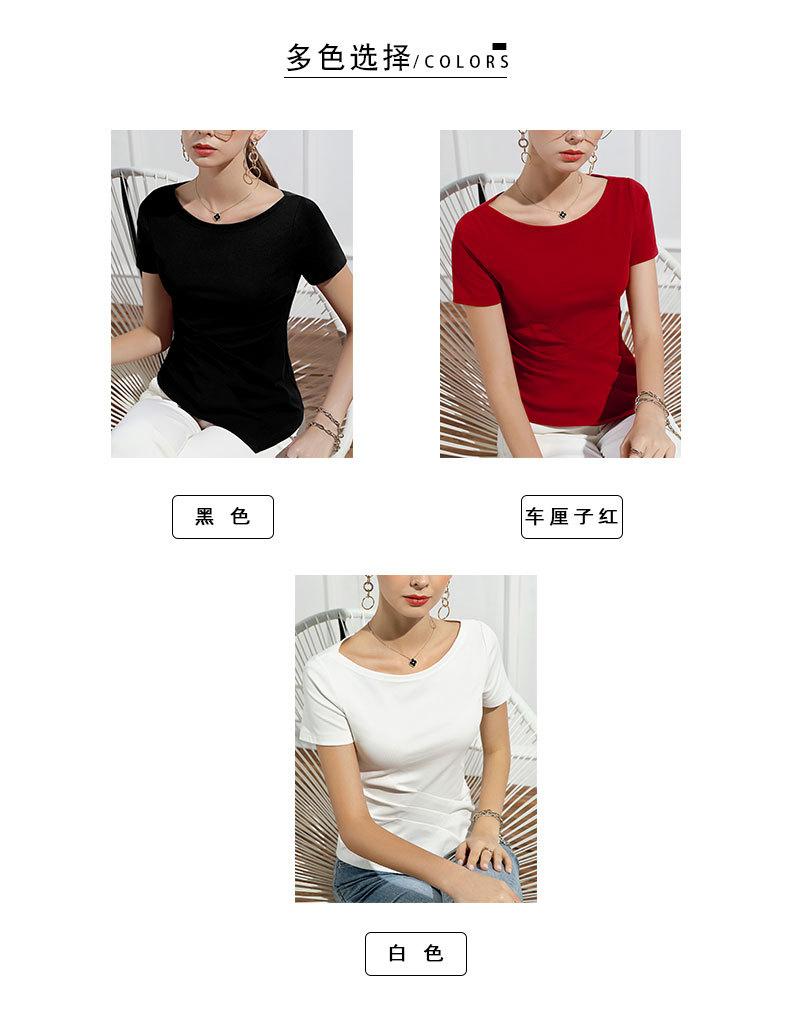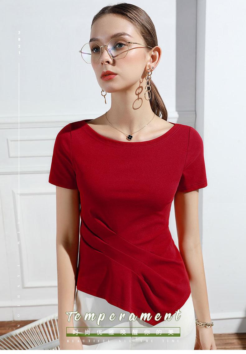 Camiseta de verano con cuello redondo para mujer, de manga corta, corte entallado, de algodón puro, diseño de nicho, estilo primavera y verano, estilo europeo, color liso.