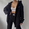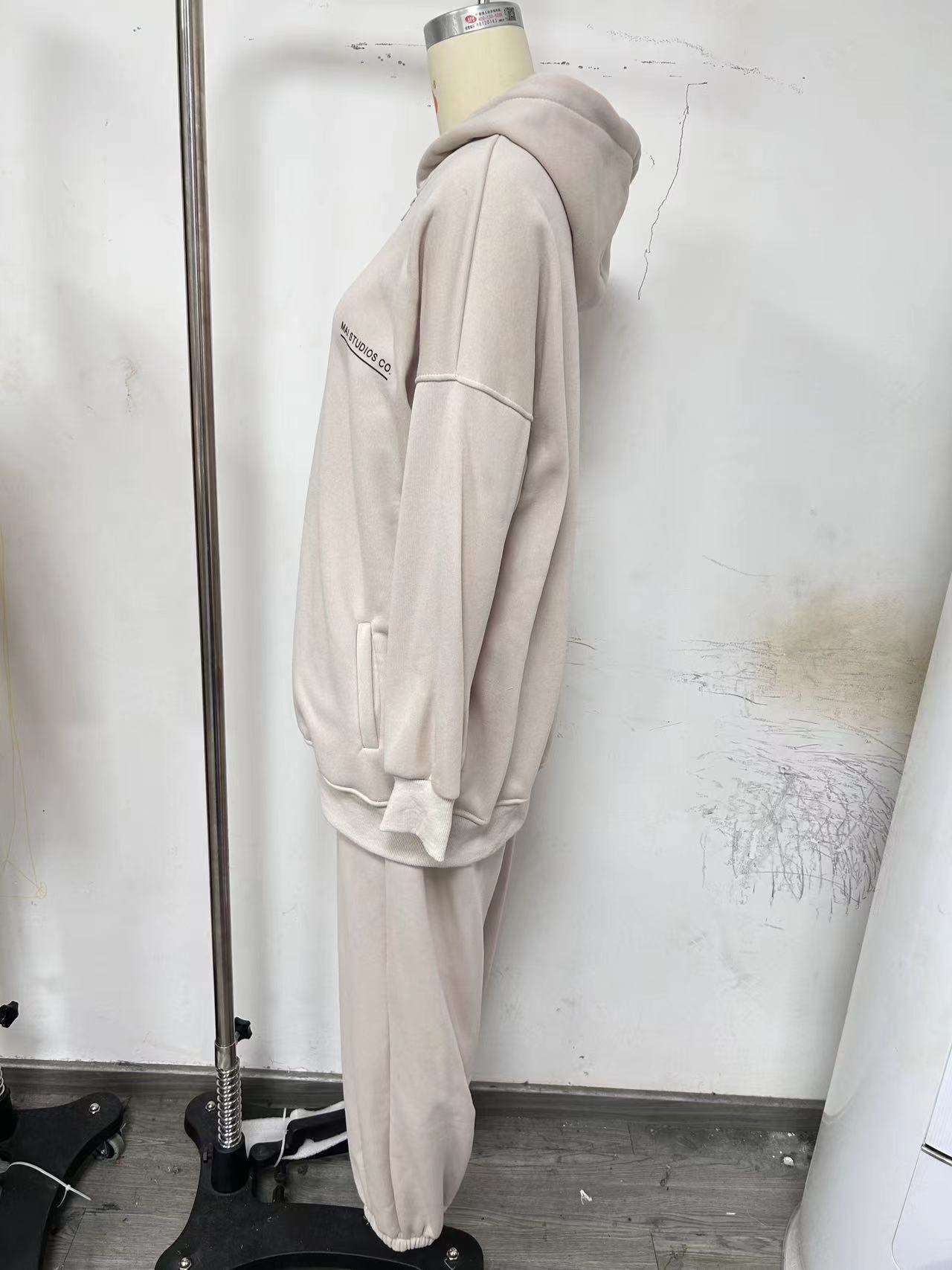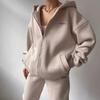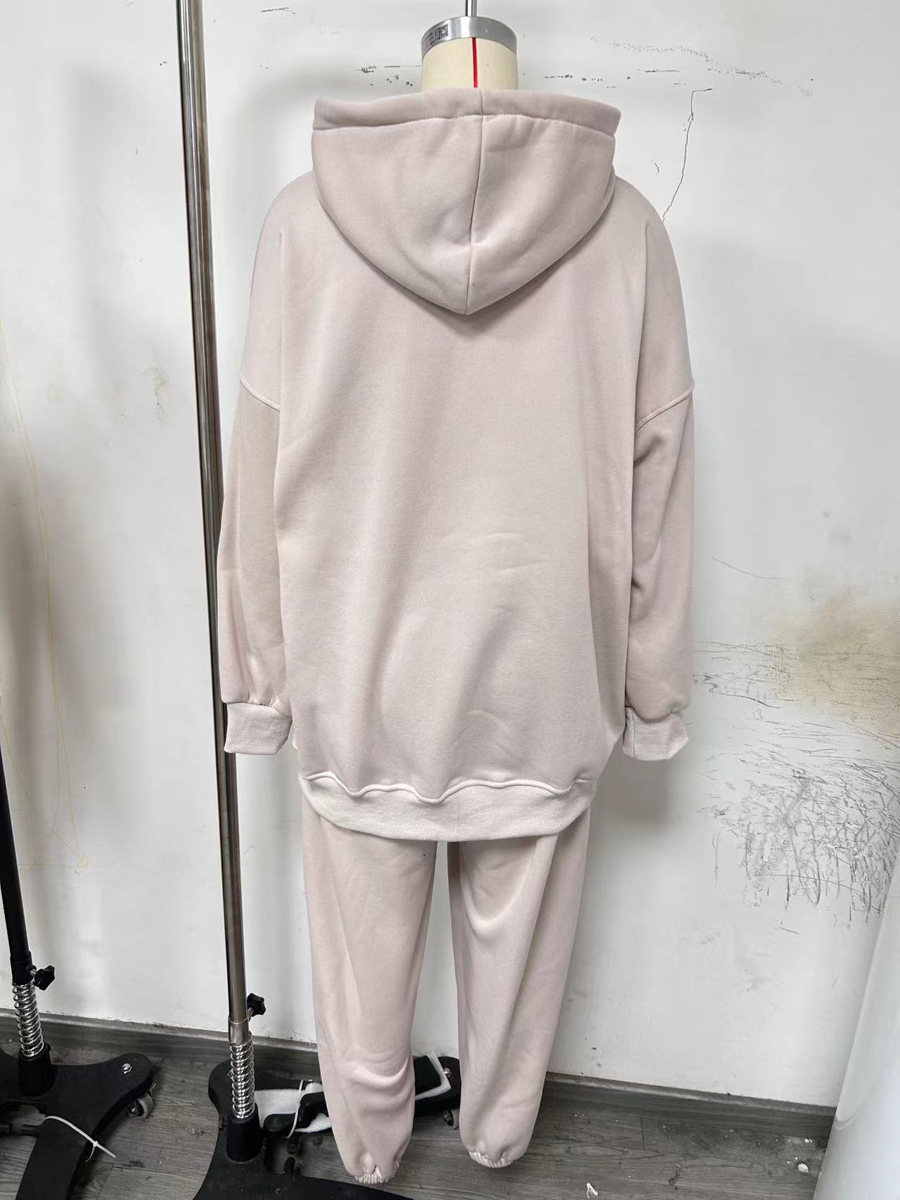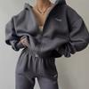 Pantalones de suéter con forro polar de manga larga para mujer europea y americana transfronteriza de Amazon 2023, traje con capucha estampado de moda informal para mujer