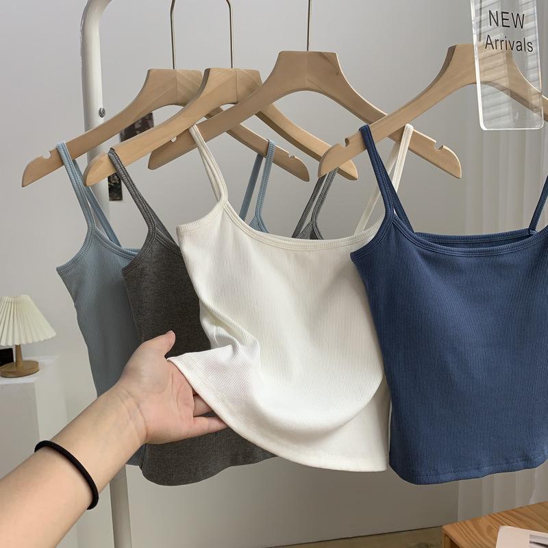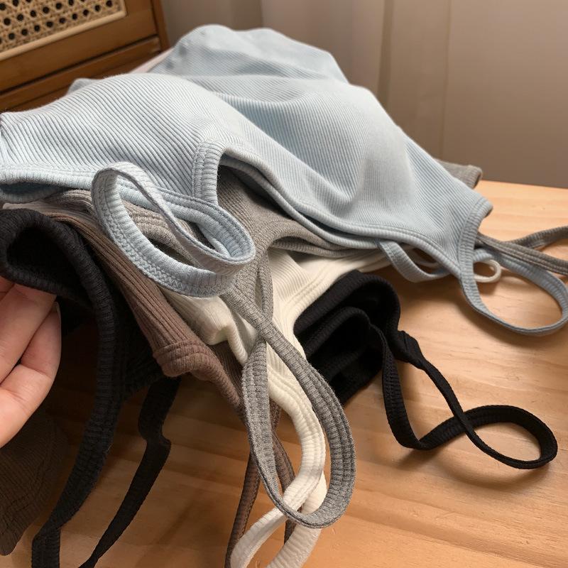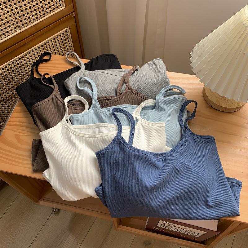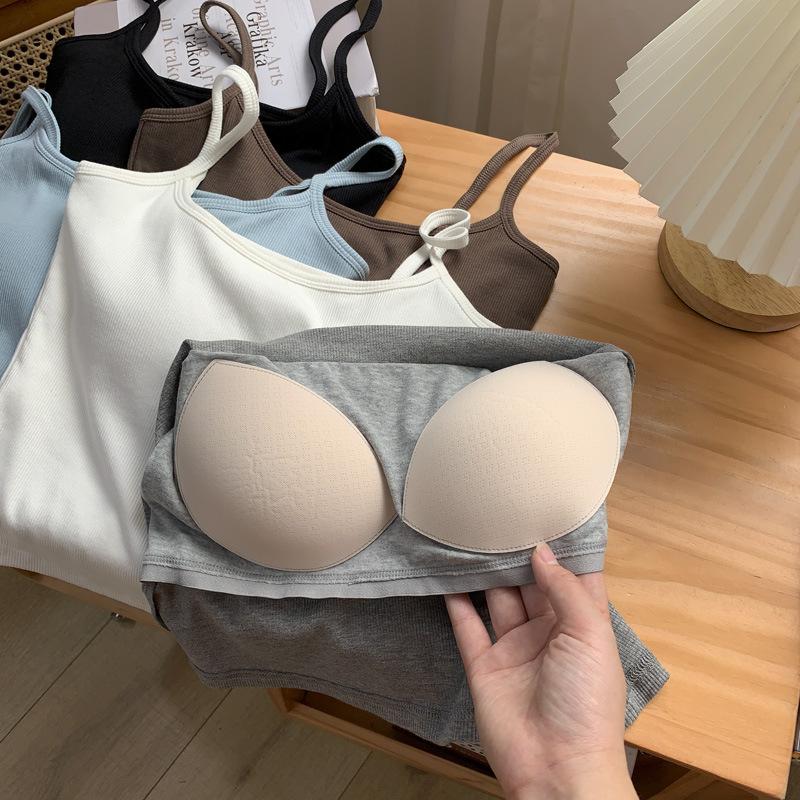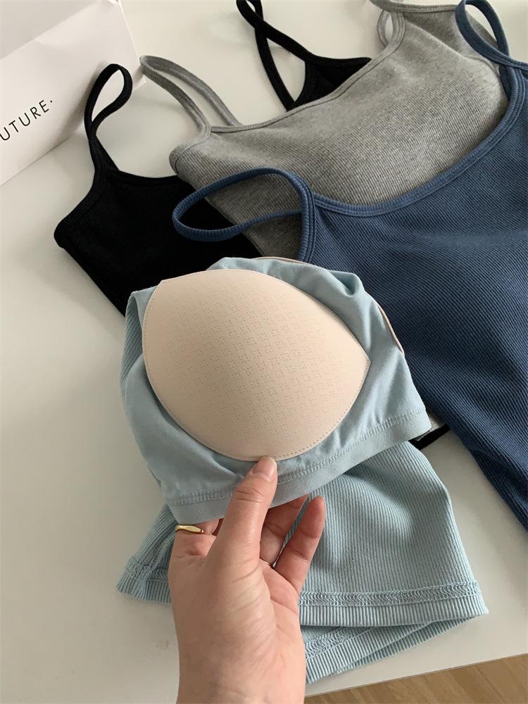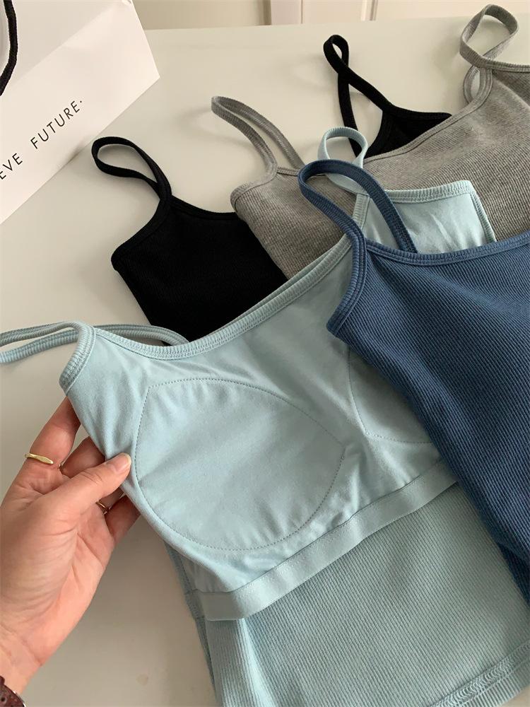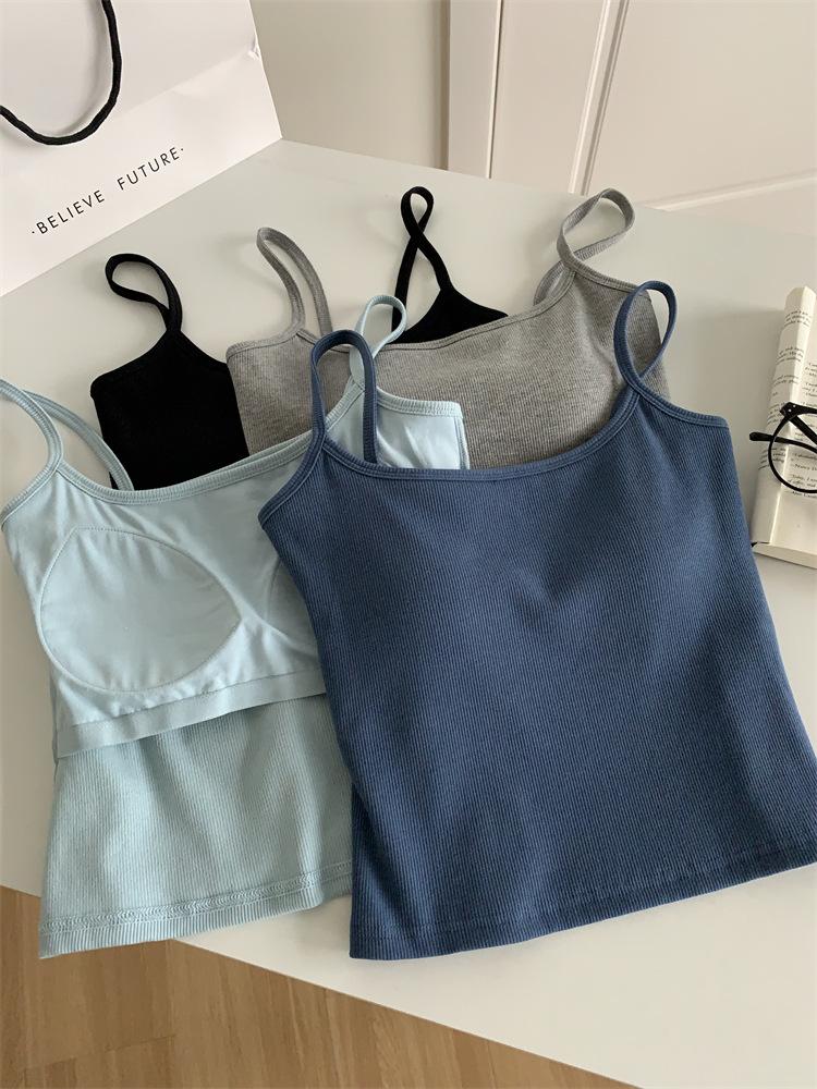 Top corto de algodón elástico con base interior, sin mangas, con tirantes y almohadilla para el pecho, para mujer, ajustado hasta el ombligo.