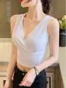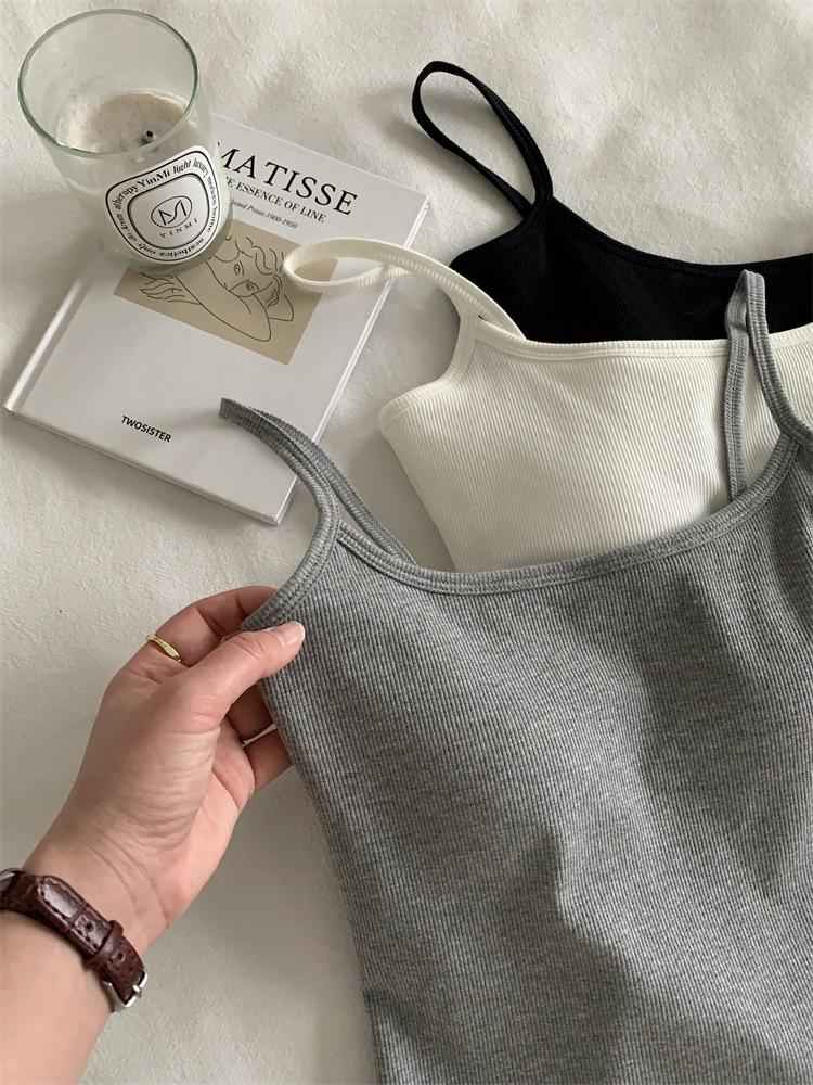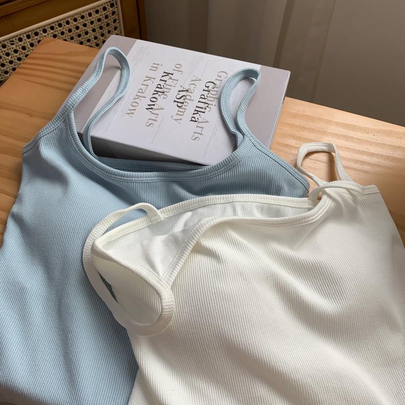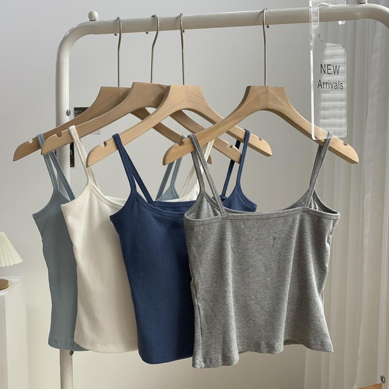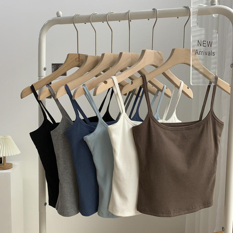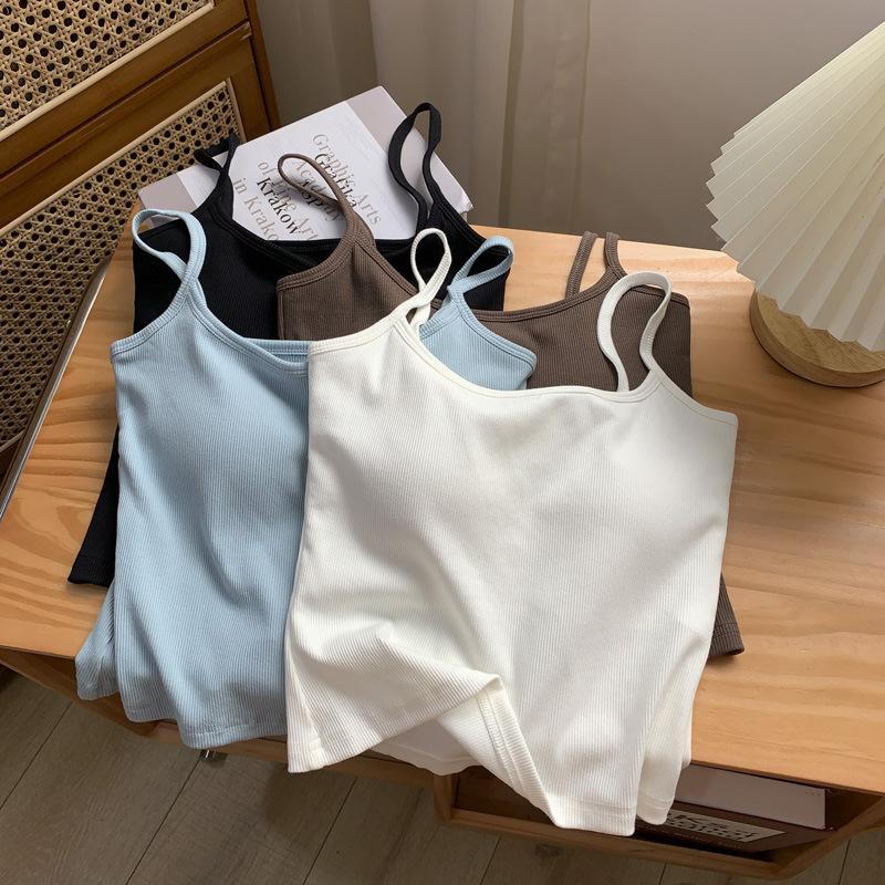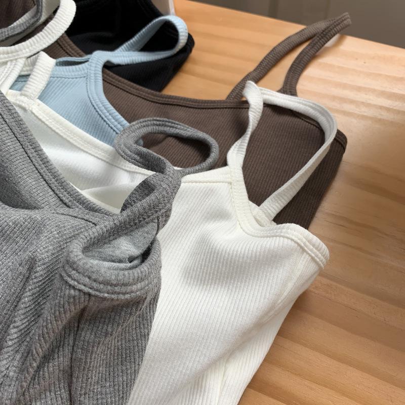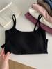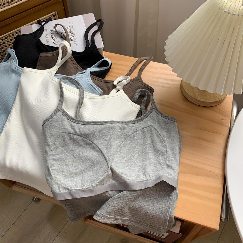 Top corto de algodón elástico con base interior, sin mangas, con tirantes y almohadilla para el pecho, para mujer, ajustado hasta el ombligo.