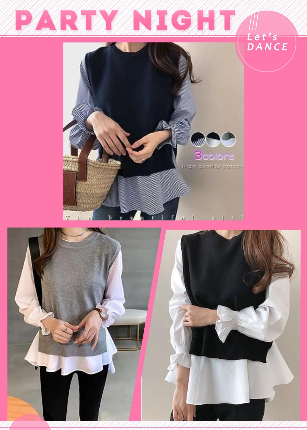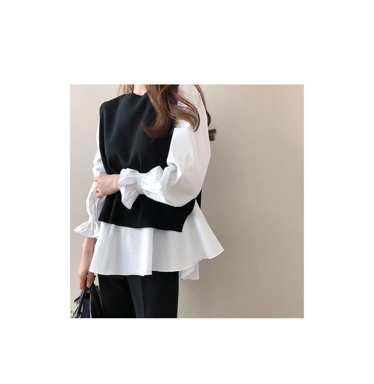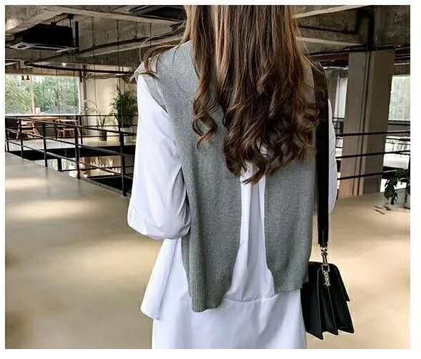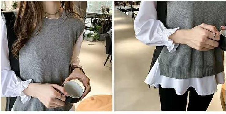 Ventas Directas de Fábrica 2025 Nuevo Traje de Dos Piezas para Mujer de Talla Grande Estilo Coreano Otoño e Invierno Camisa de Manga Larga y Chaleco Tejido